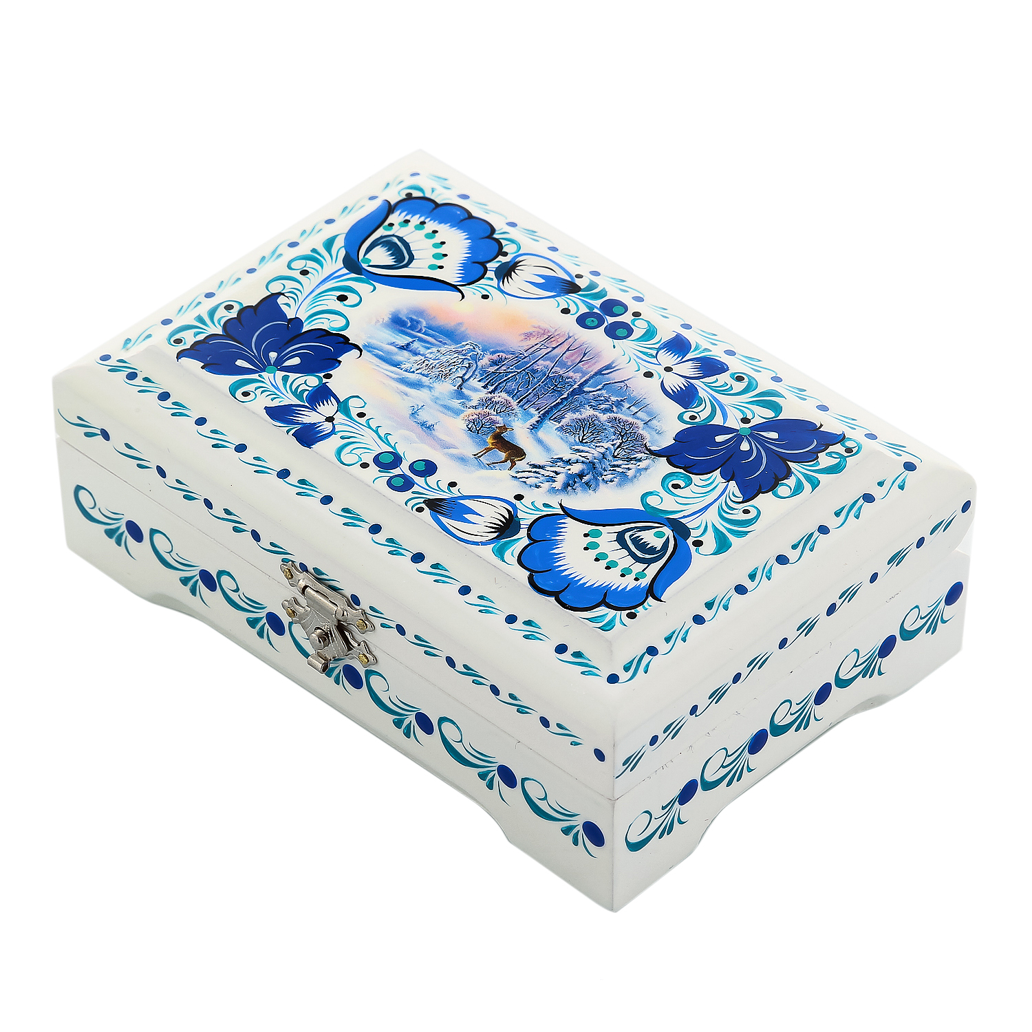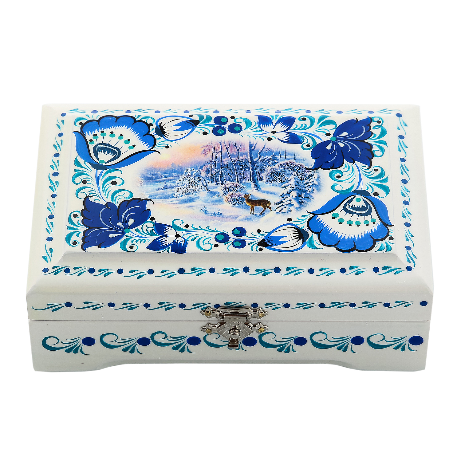 00288601-сюжет Хохлома Шкатулка прямоугольная"Зима" 12*8 см Р25