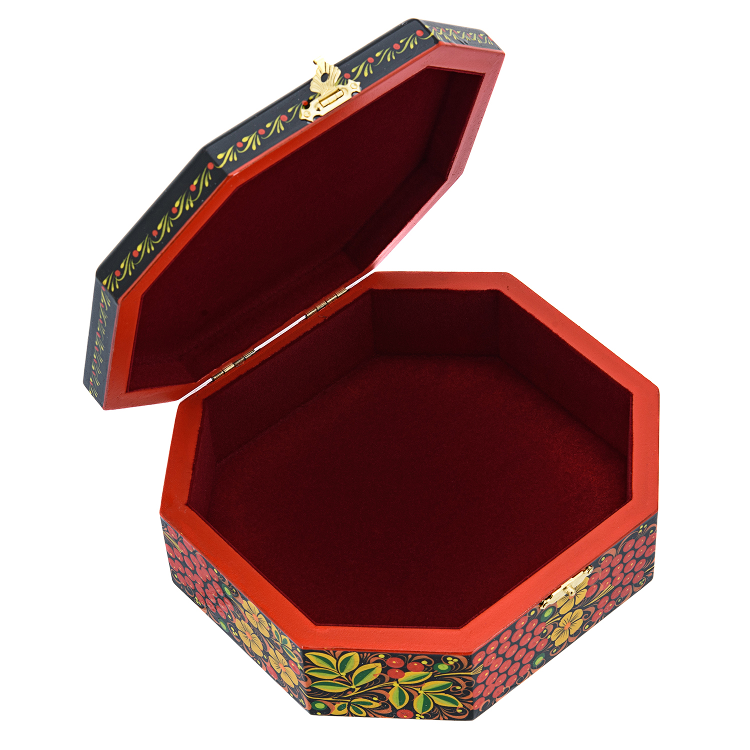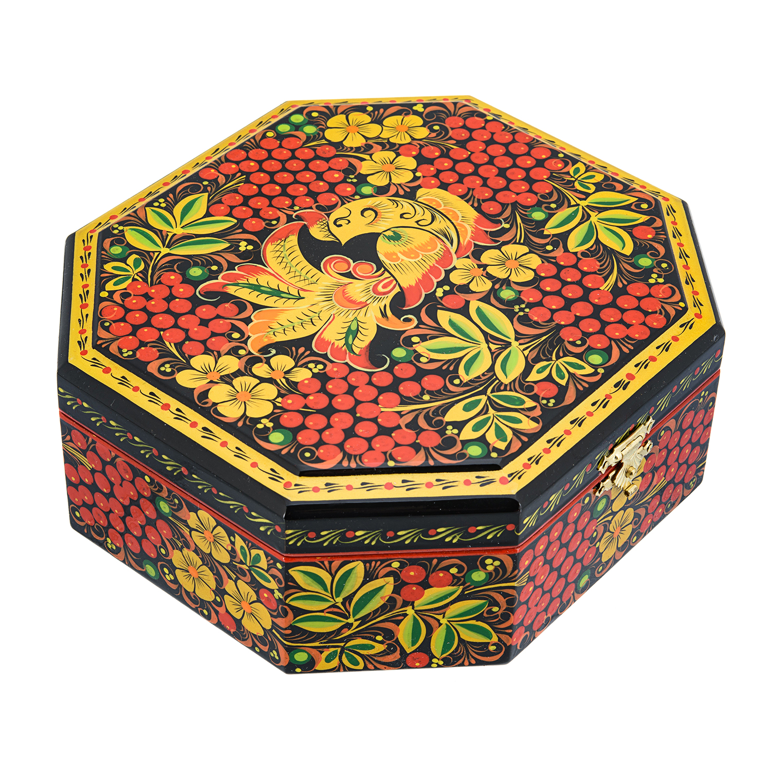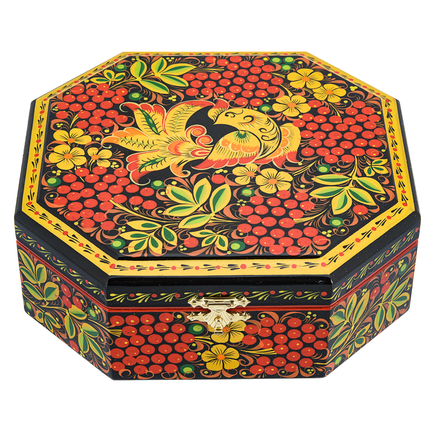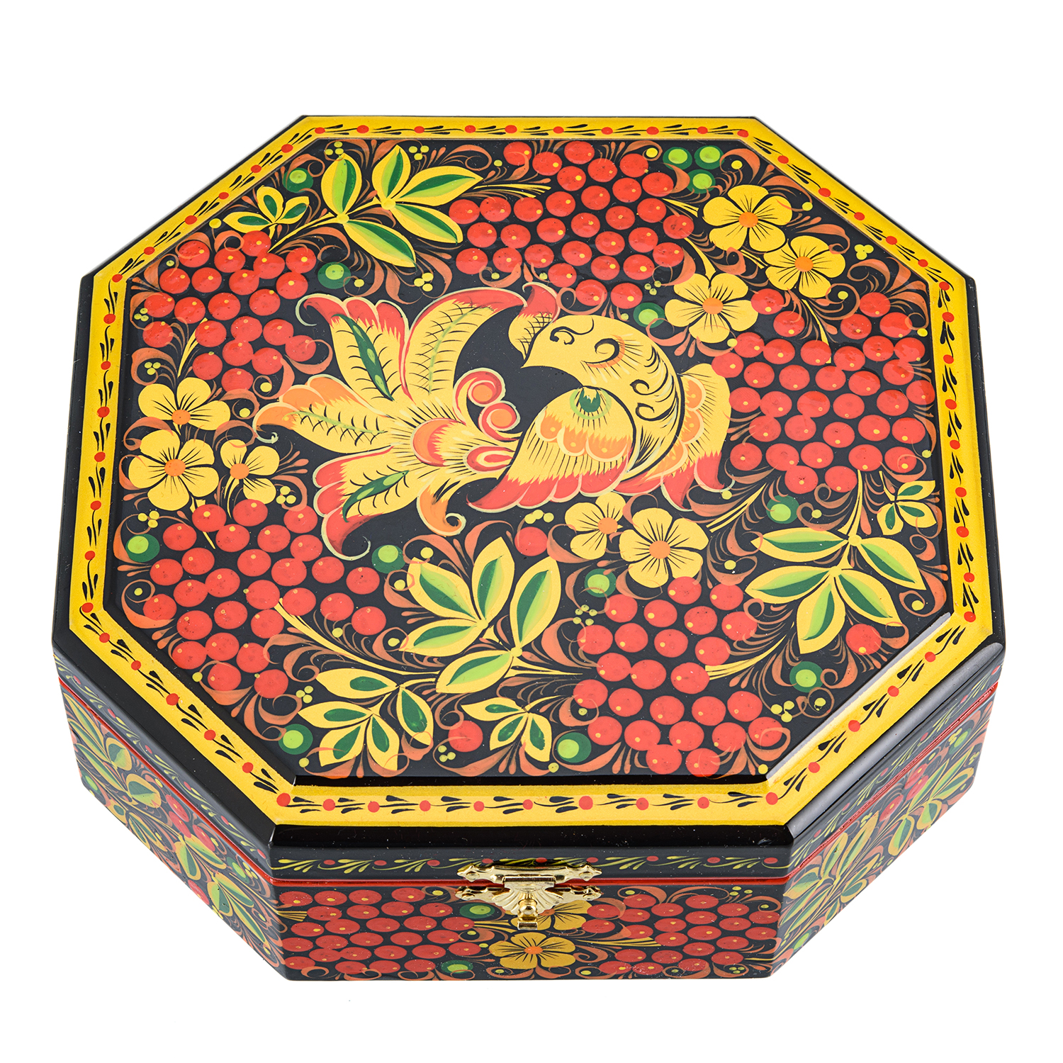 67904/17*16-кр Хохлома Шкатулка ВОСЬМИУГОЛЬН., рябина+птица Р 30 Н 0549