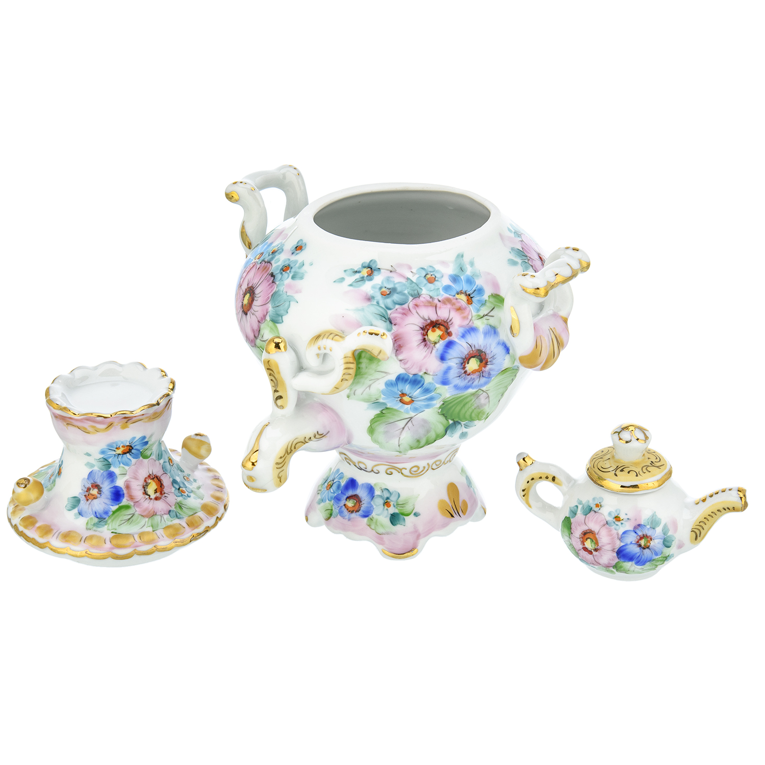 Сувенирный самовар-шкатулка "Цветы". Гжель в цвете и золоте