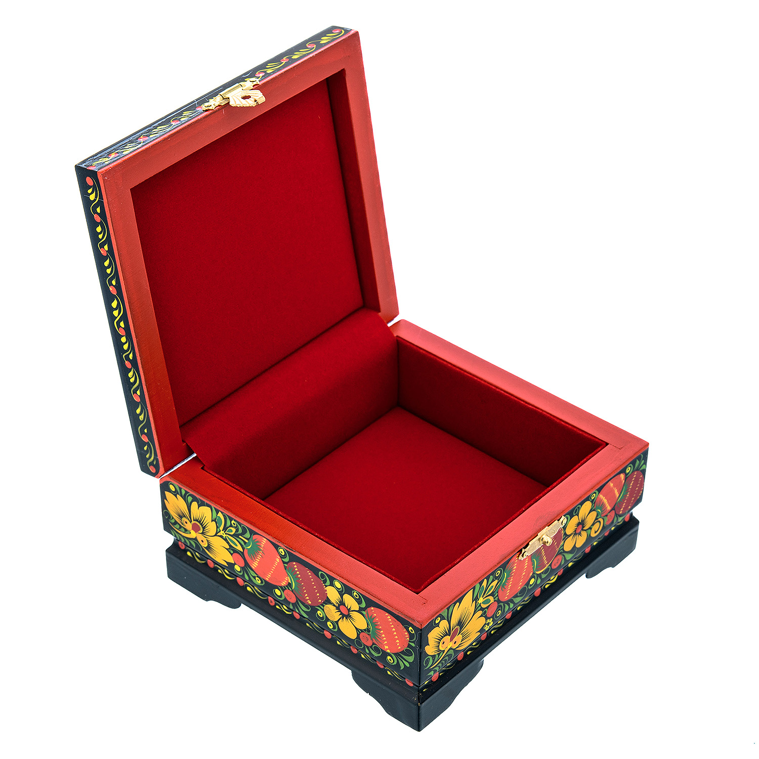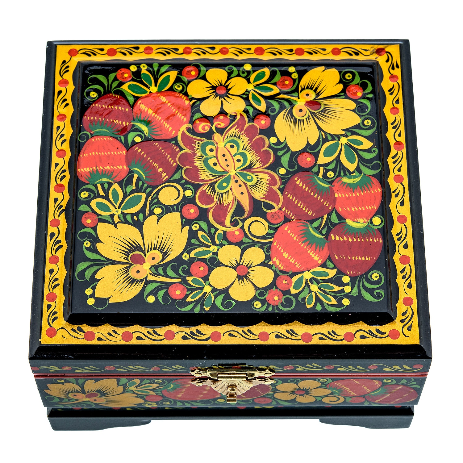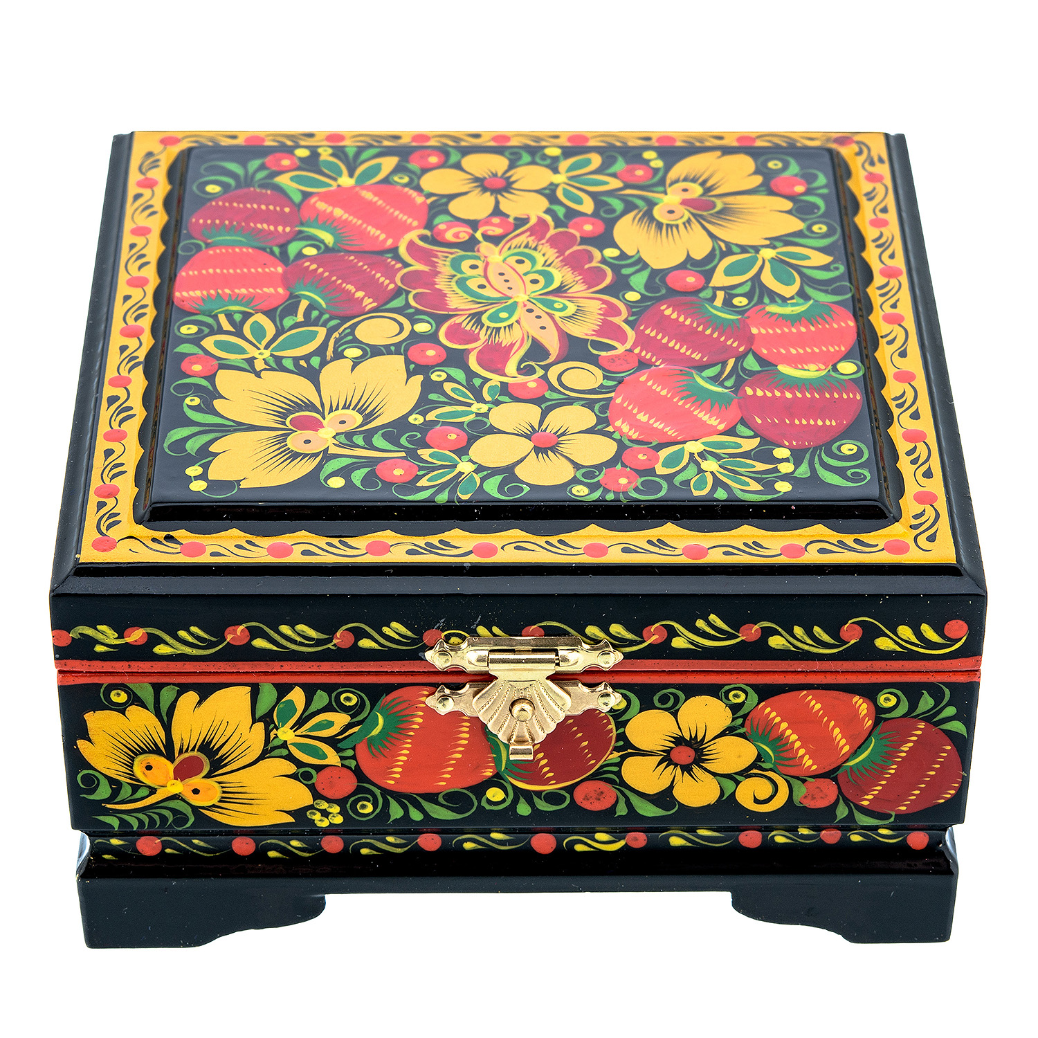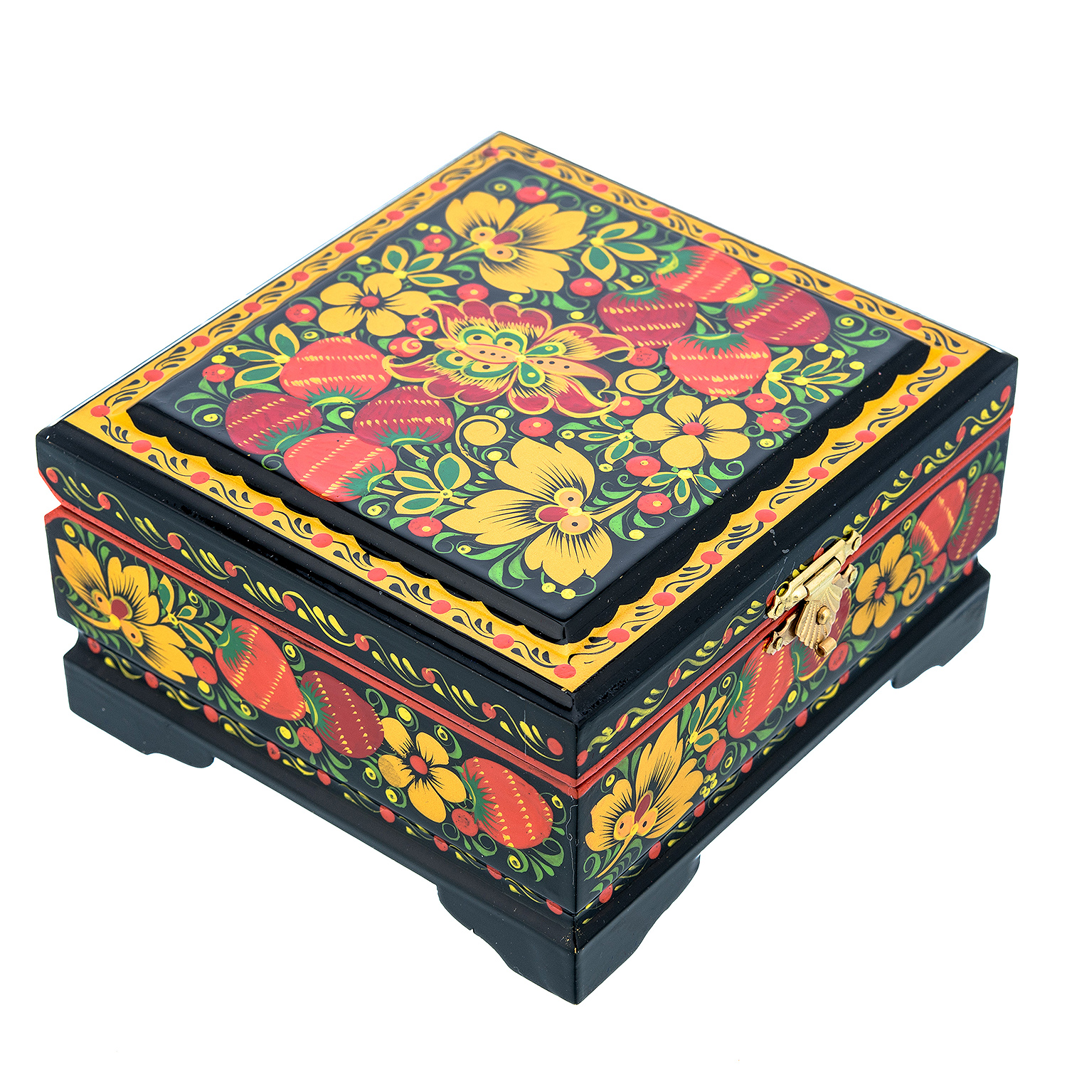 00205773/12*11,5см Хохлома Шкатулка Хохлома "БАБОЧКА.КЛУБНИКА" 12*11,5см Р18
