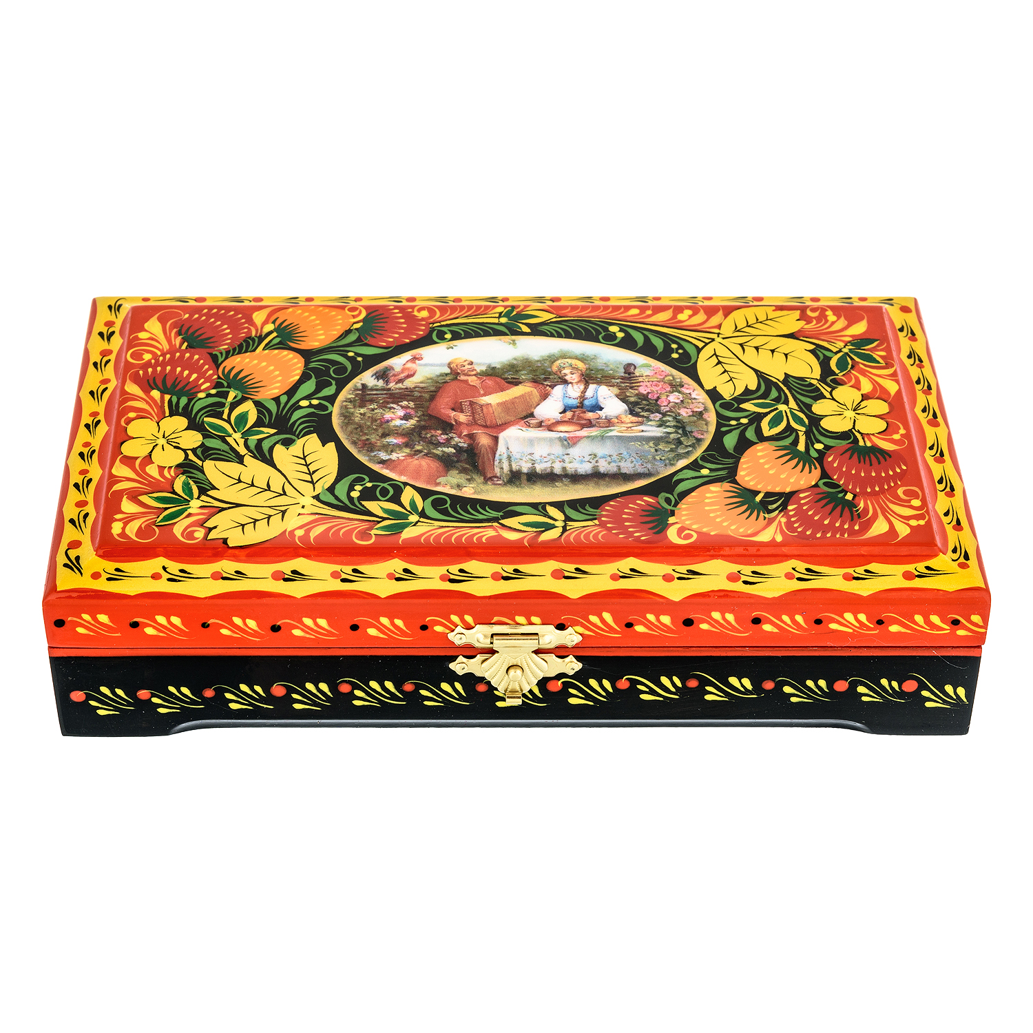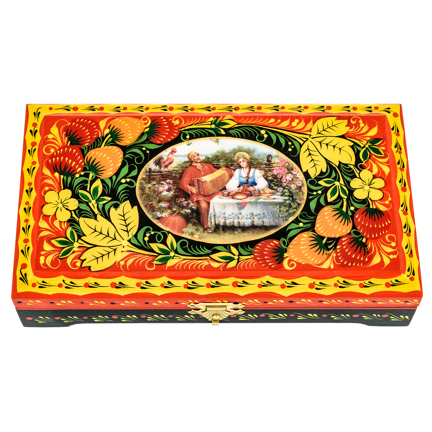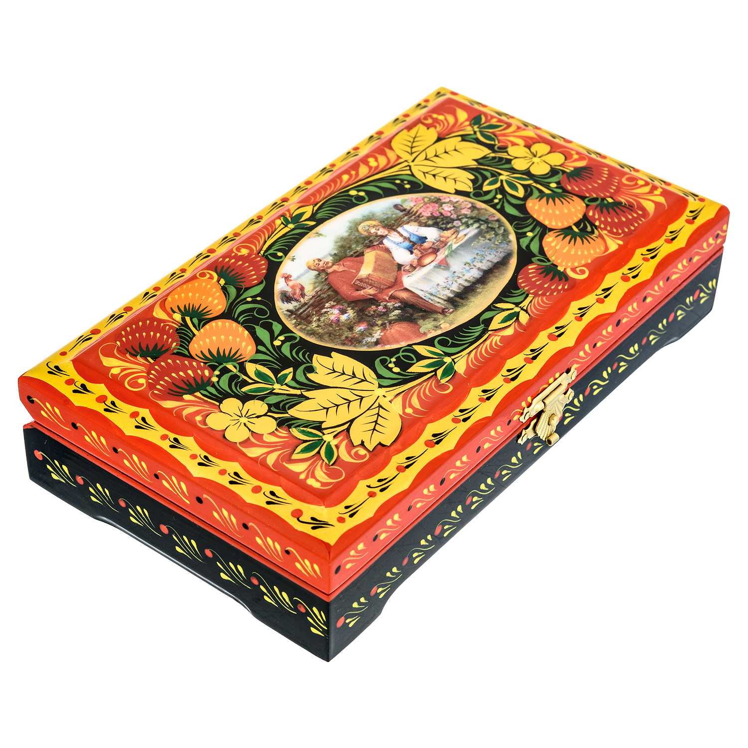 Шкатулка с росписью "Летний отдых". Хохлома