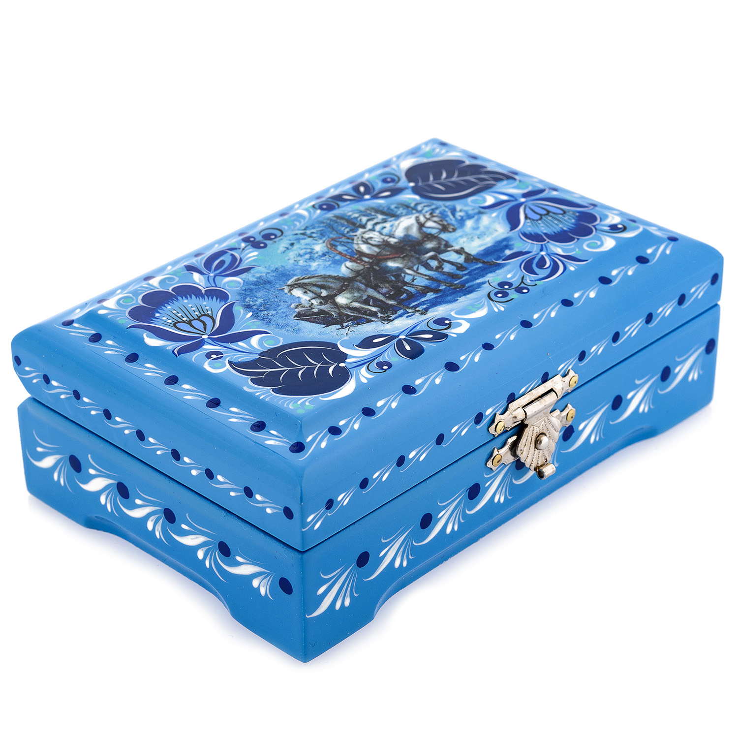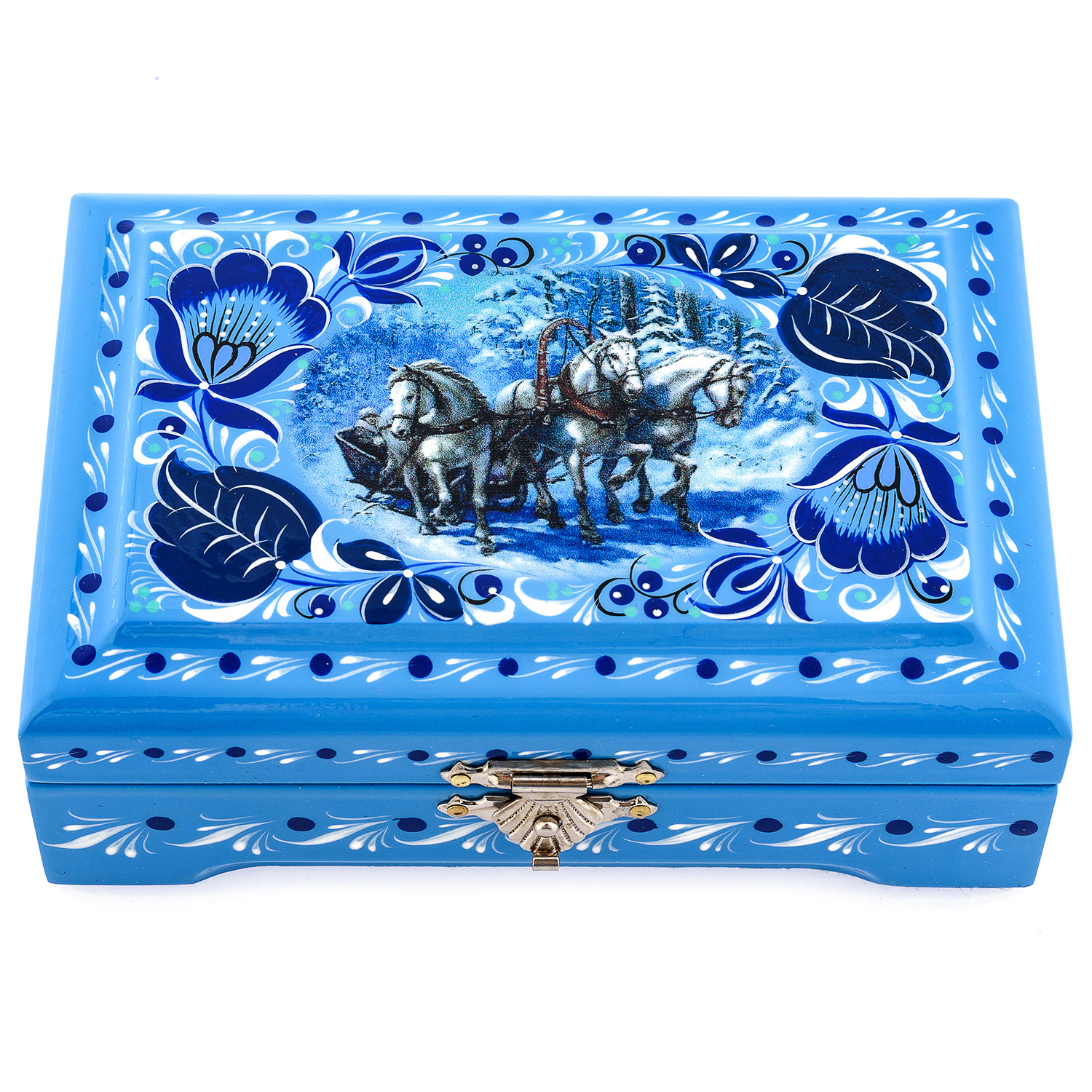 0020576/12*8см Хохлома Шкатулка "ЗИМА/ТРОЙКА"  Р 25