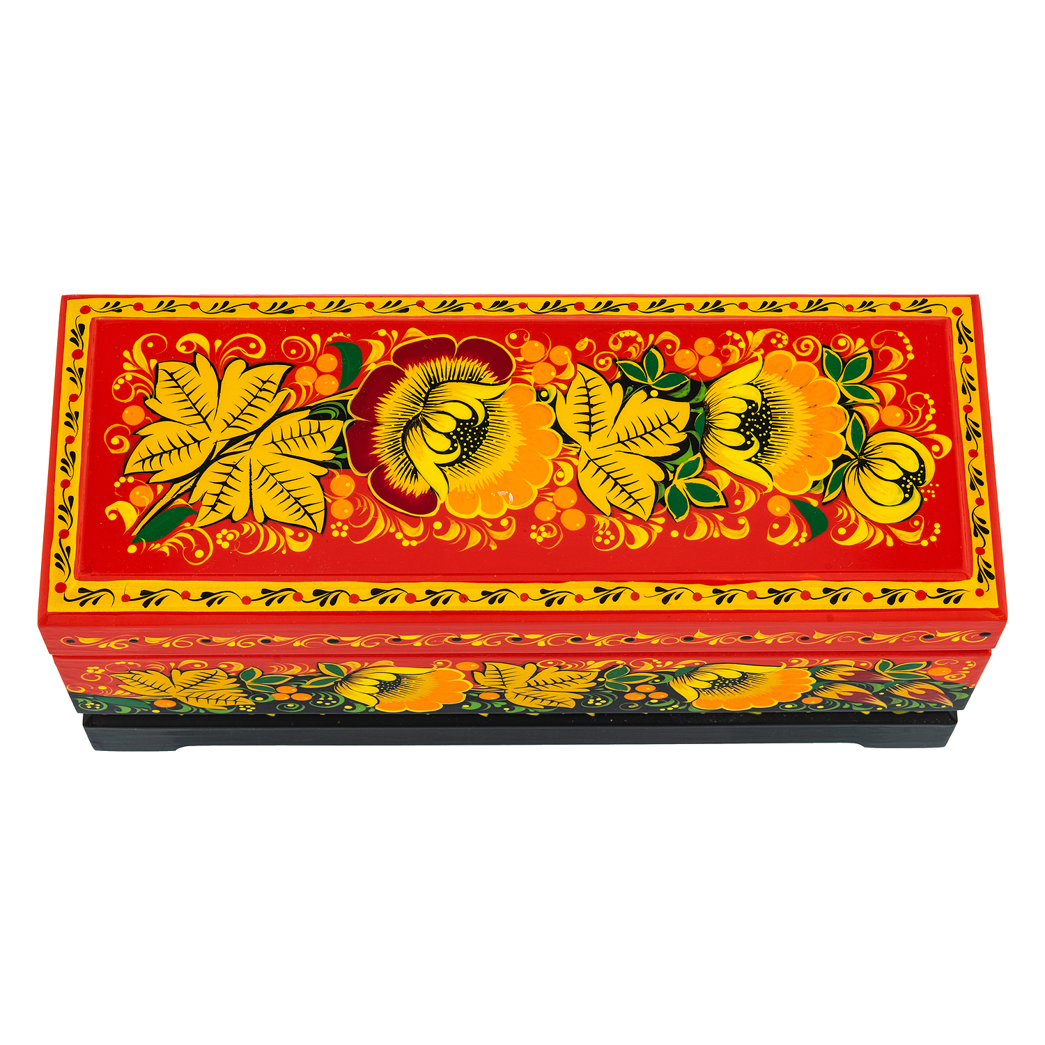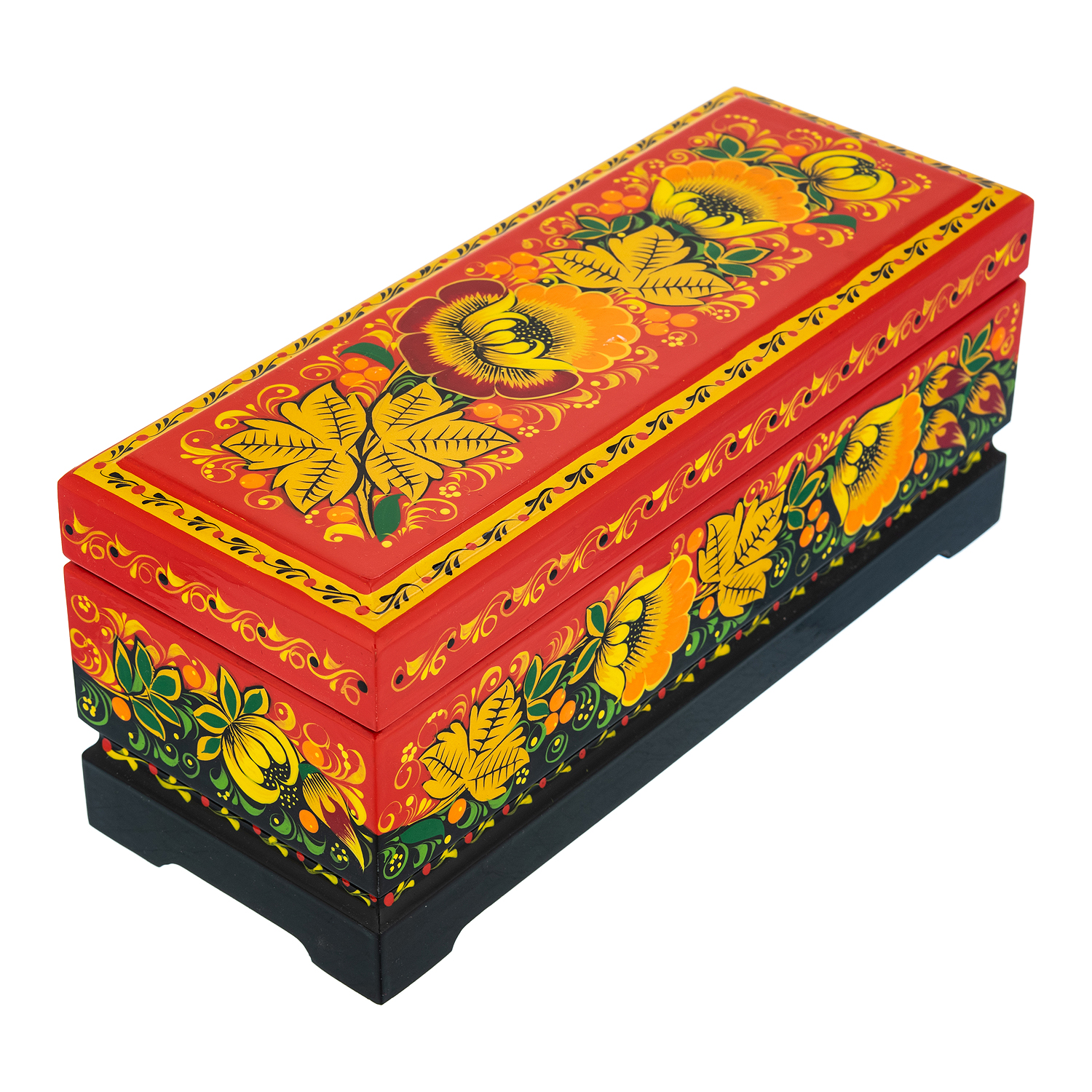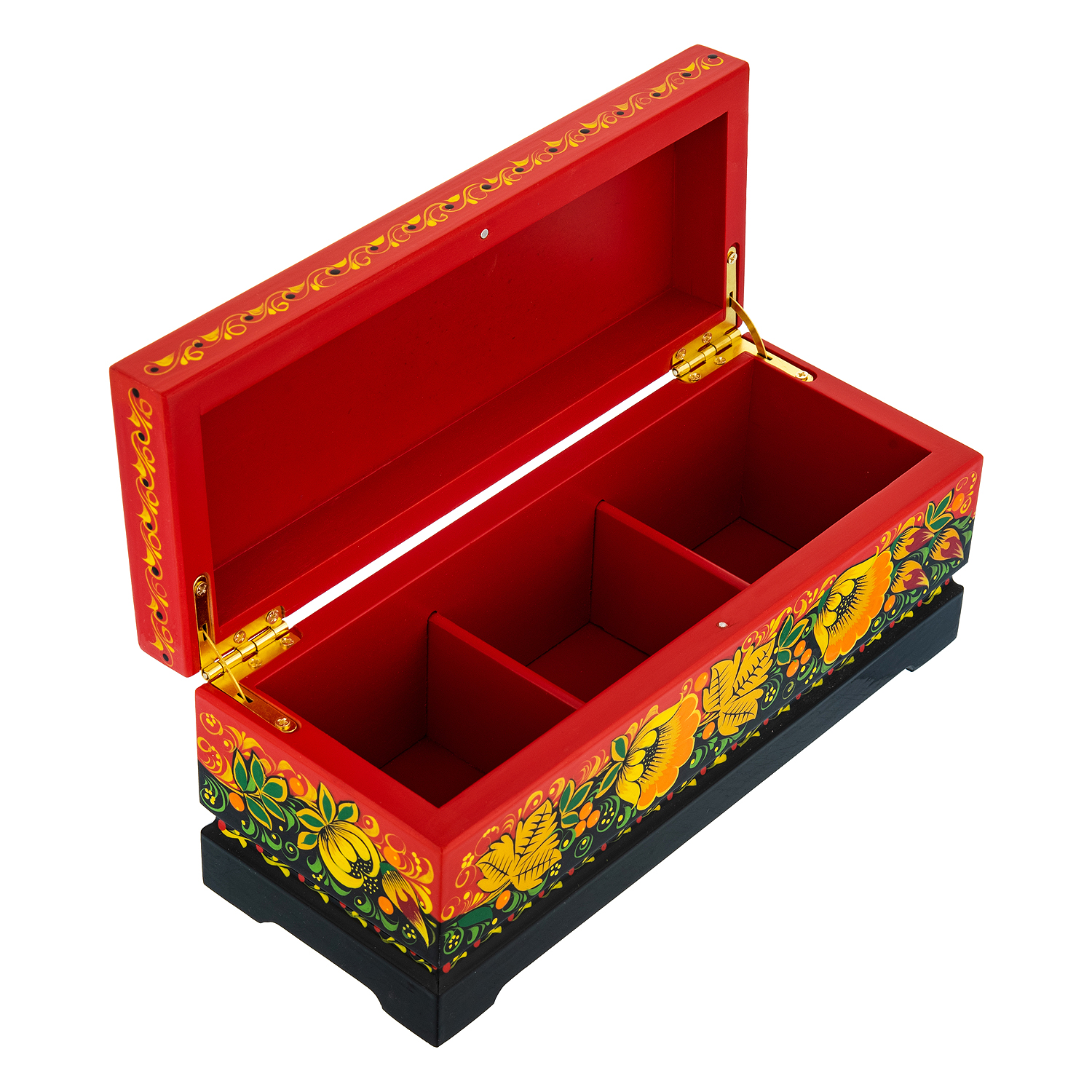 0078408/23*10см Хохлома Шкатулка для чая "ЦВЕТЫ" двойн фон,,Р96