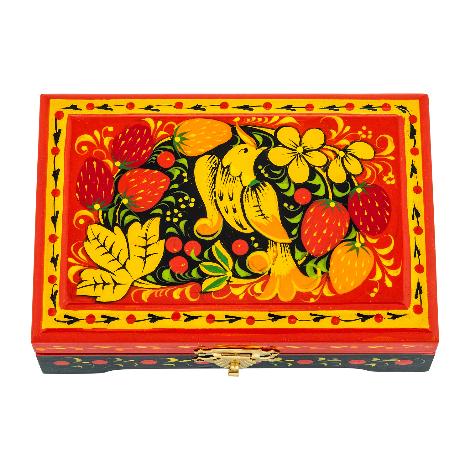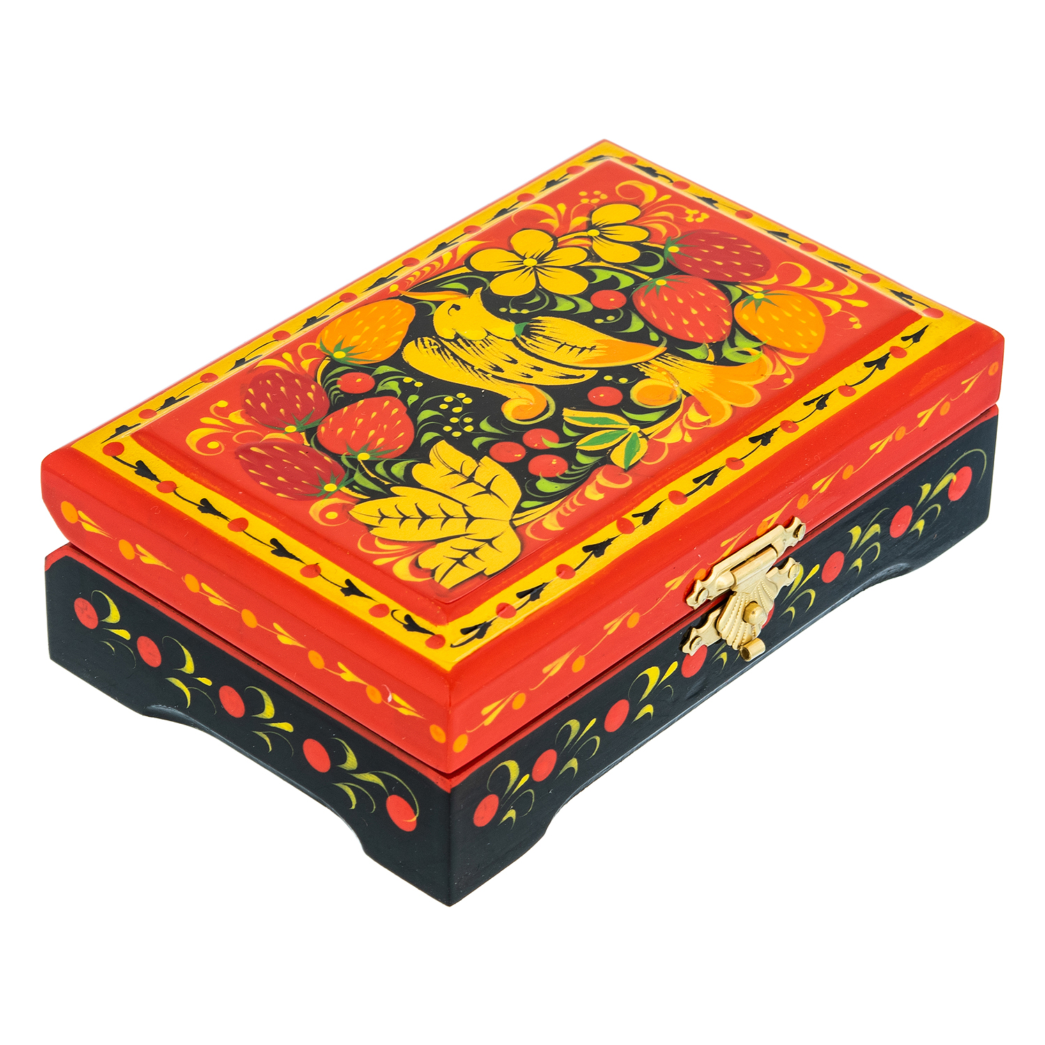 310143/12*8см Хохлома Шкатулка прямоугольнаяПТИЦА/КЛУБНИКА12*8*3 см  Н0004