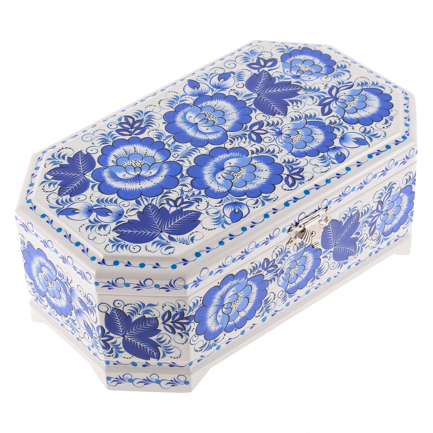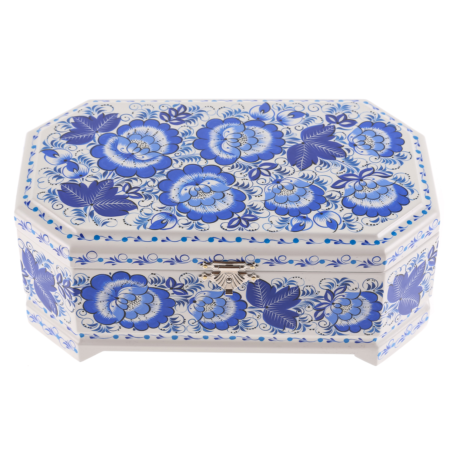 0074462/23*14см Хохлома Шкатулка 1 ОТДЕЛЕНИЕ "ЦВЕТЫ"на белом Р6
