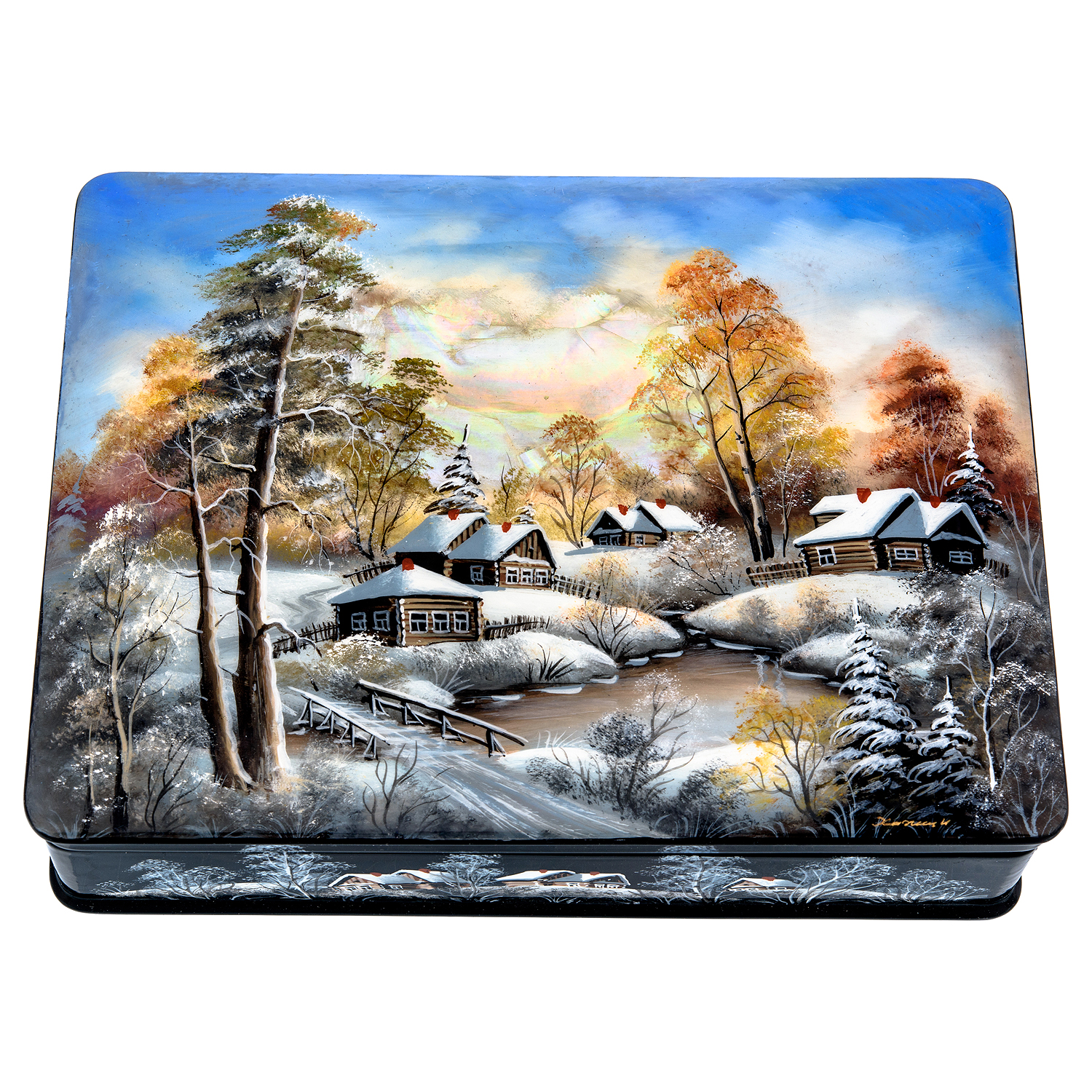 Шкатулка с художественной росписью "Деревенский пейзаж"