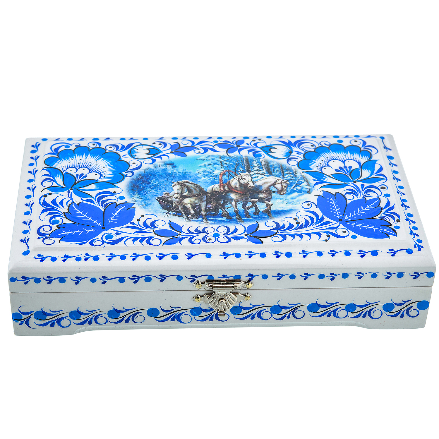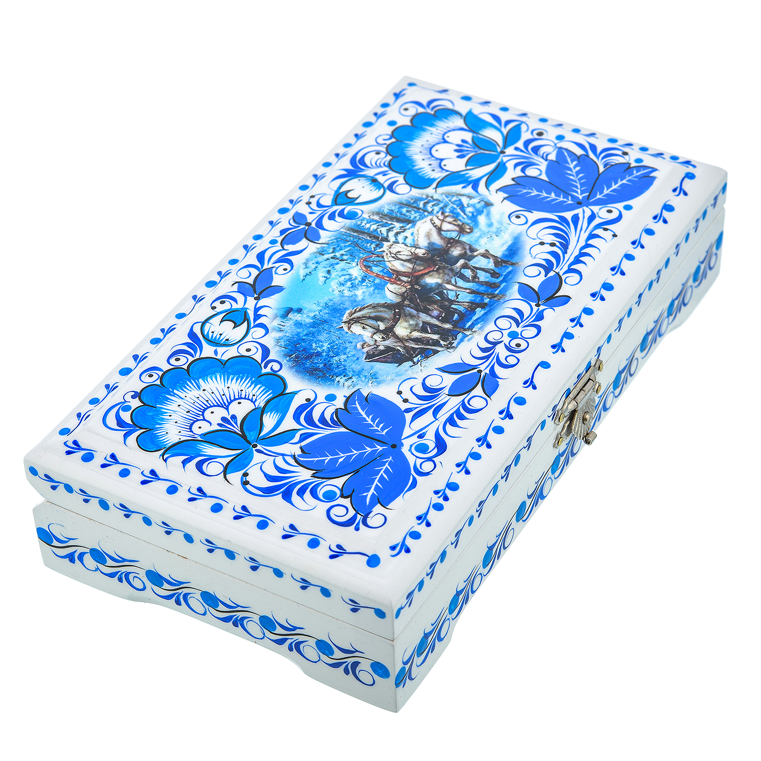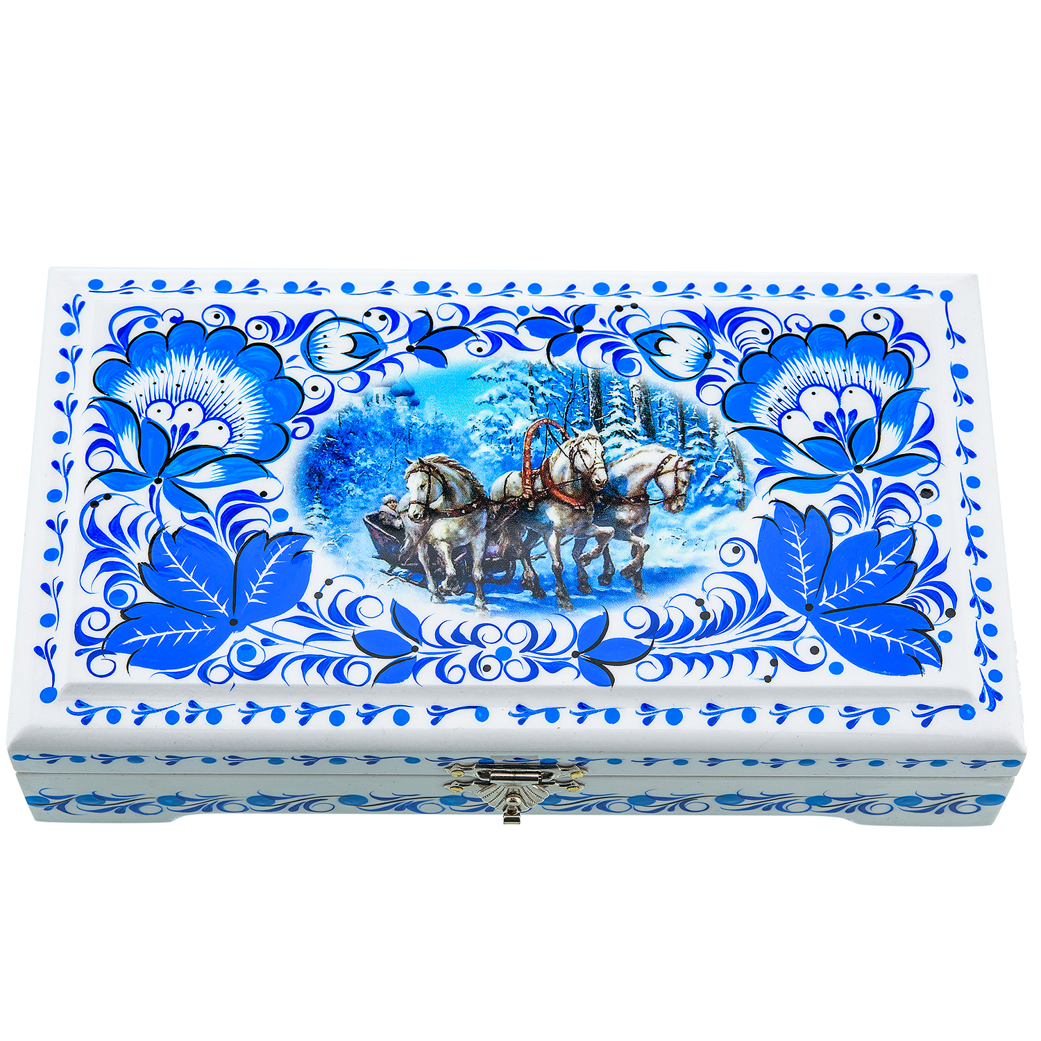 0017494/18*10 Хохлома Шкатулка под купюры "Зимняя тройка" белый фон сюжет