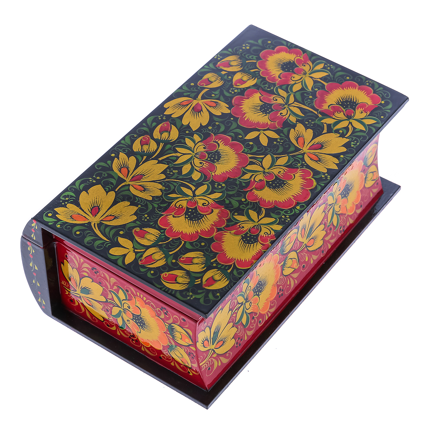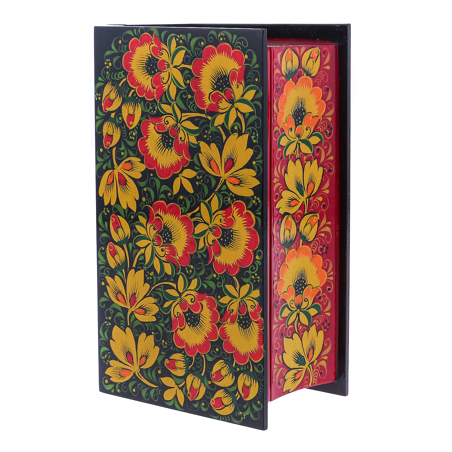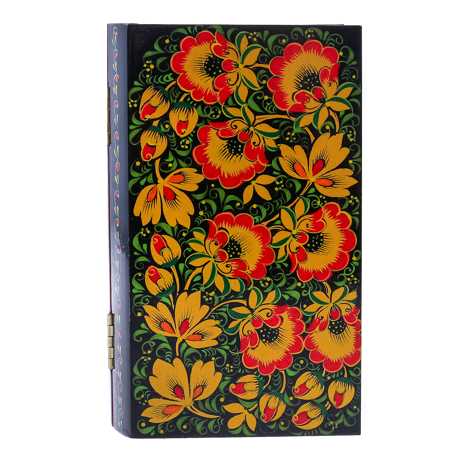 0072739 Хохлома Шкатулка - КНИЖКА Р57 17,5*11 см цветы