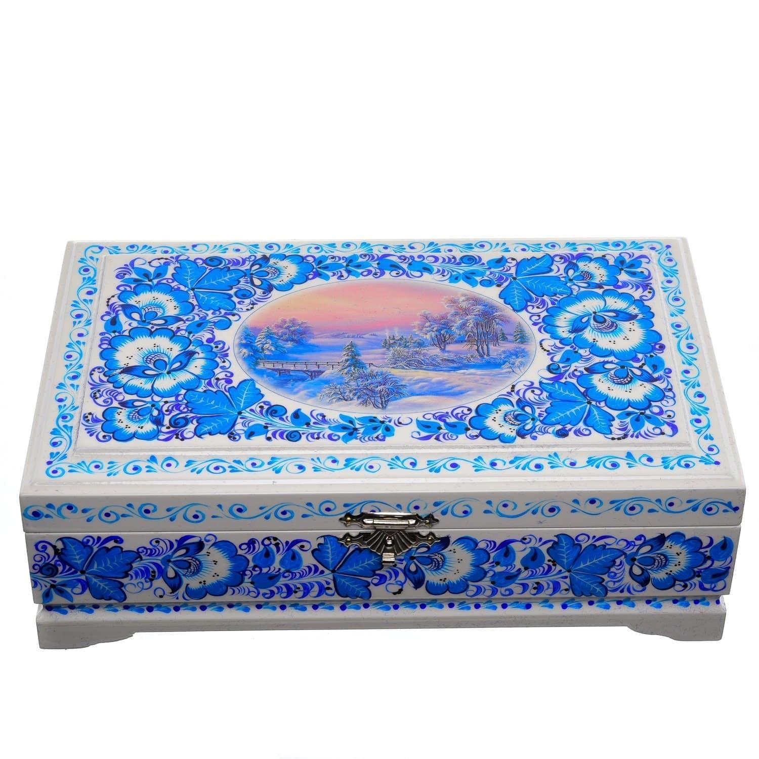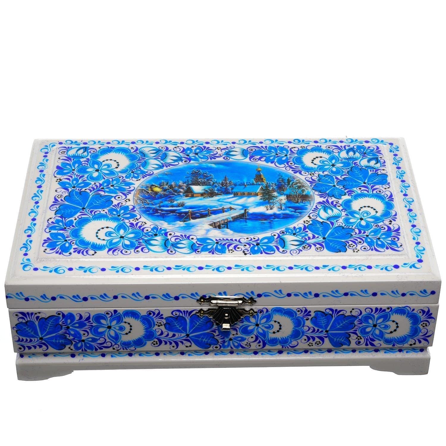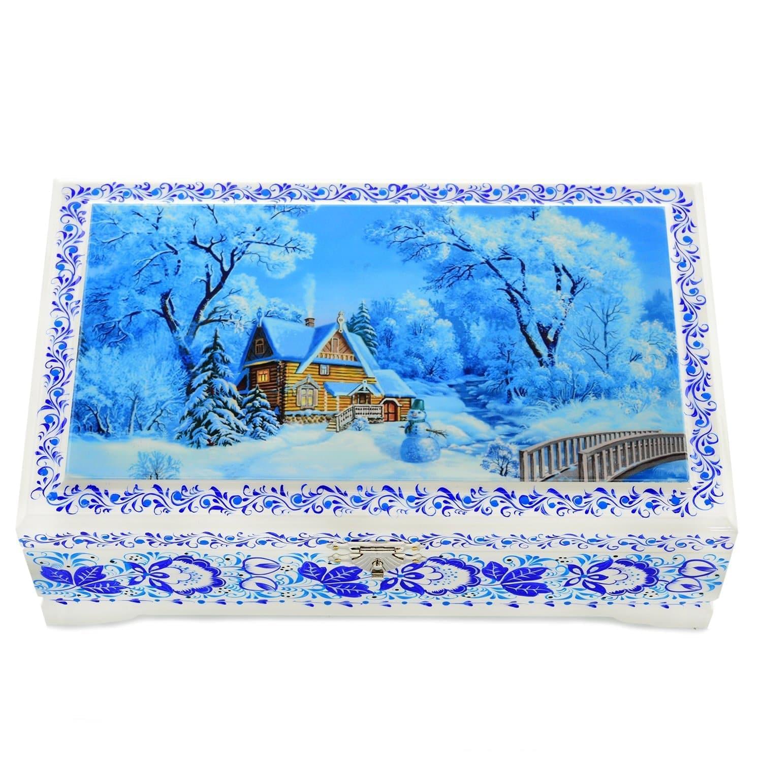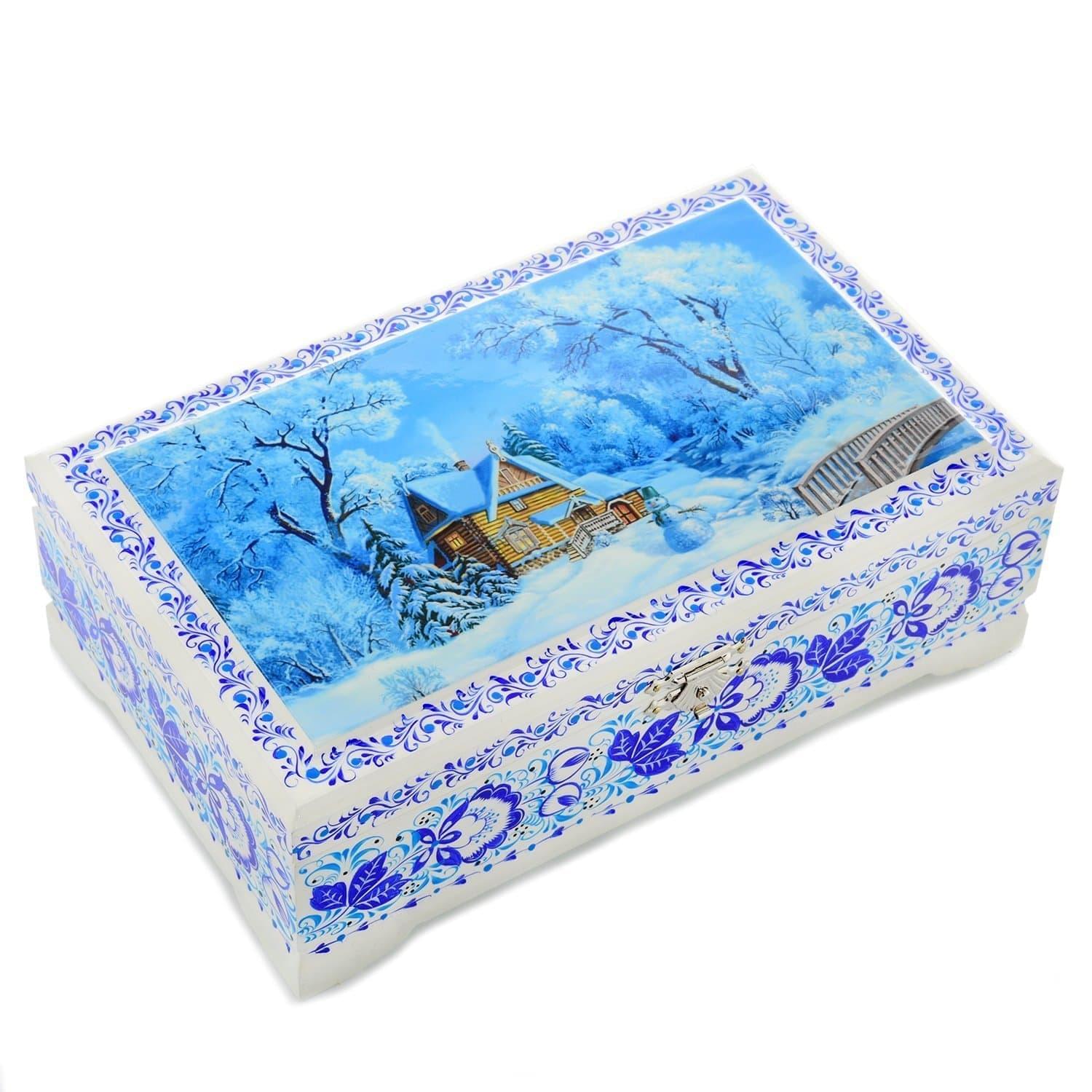 0058306/23*14см-ЗИМА Хохлома Шкатулка 4 ОТДЕЛЕНИЯ "ЗИМА ПЕЙЗАЖ" Р7  Н 0515 ....