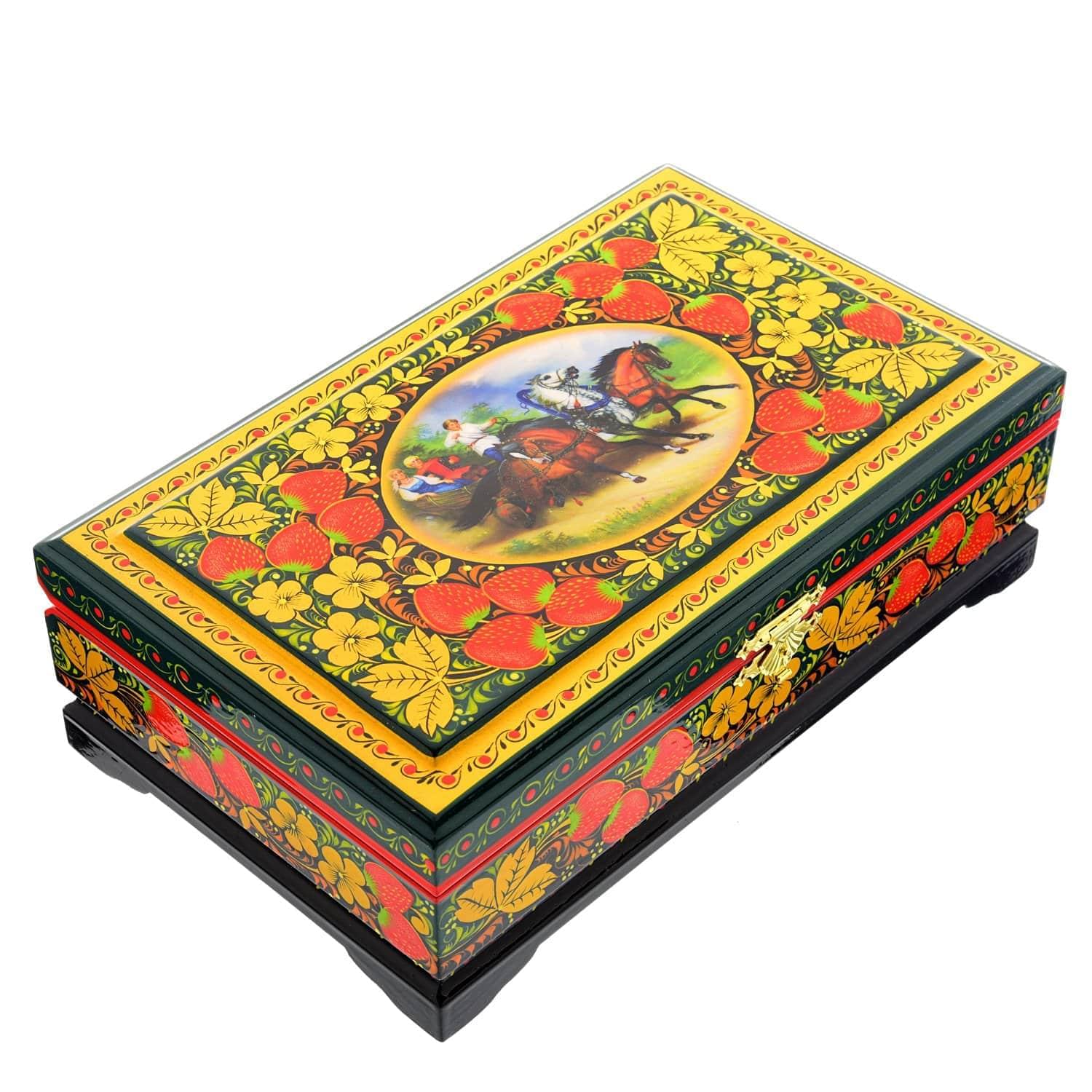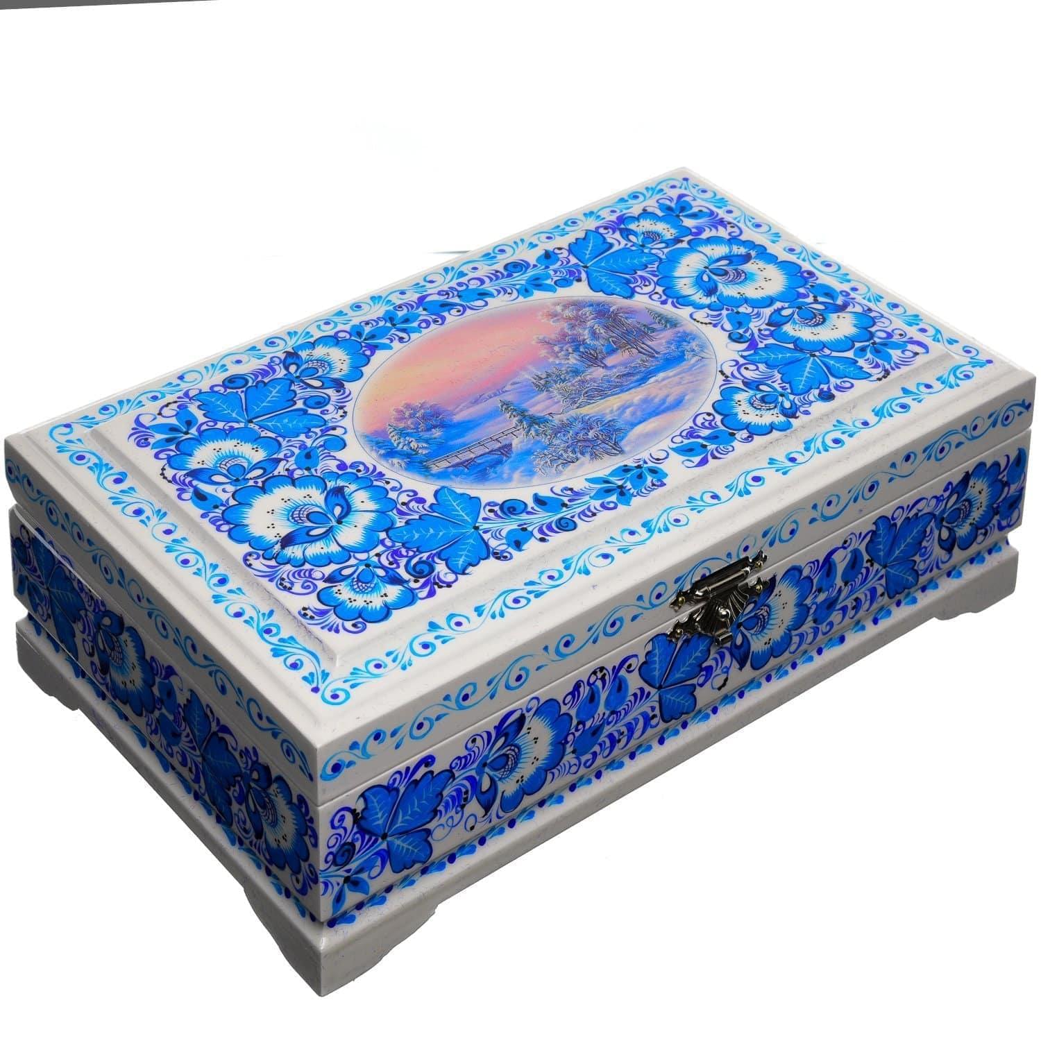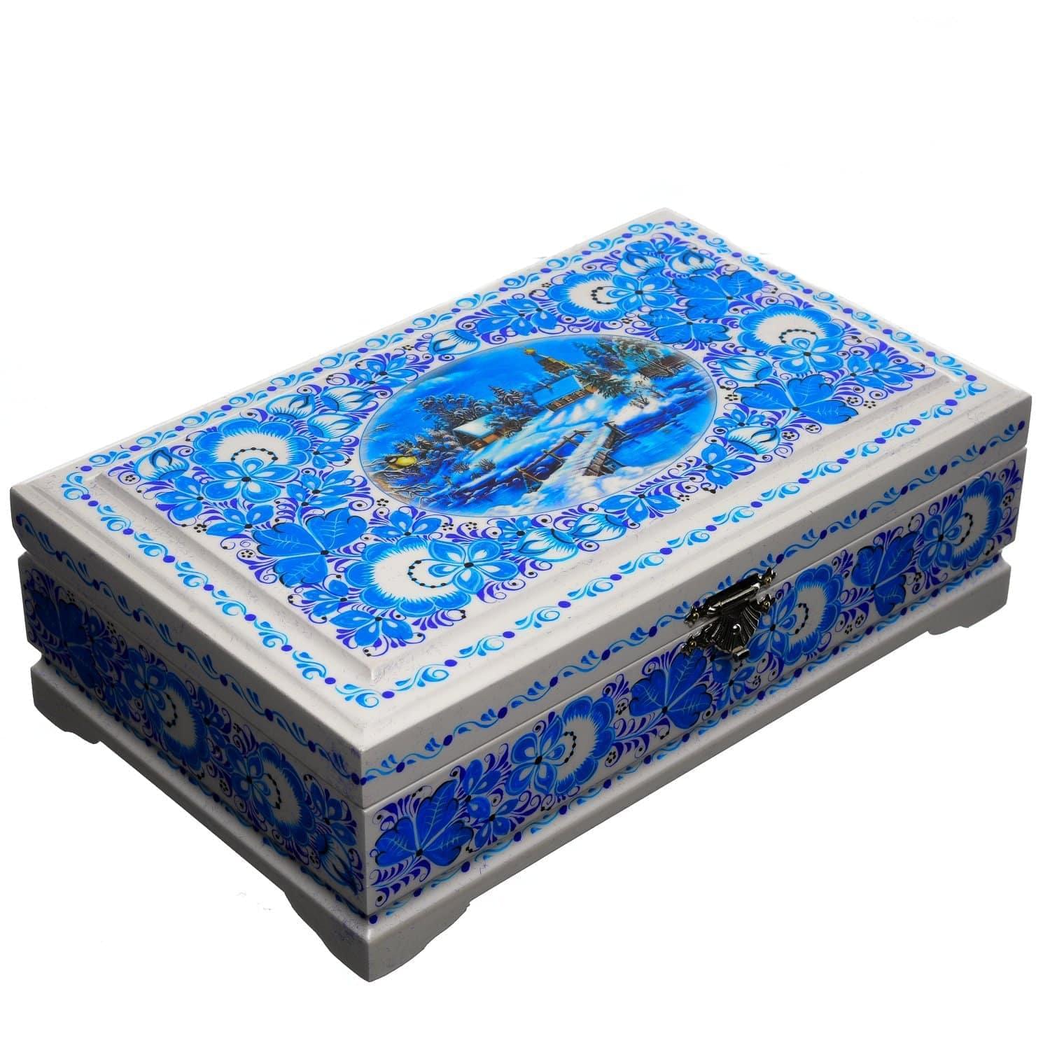 0058306/23*14см-ЗИМА Хохлома Шкатулка 4 ОТДЕЛЕНИЯ "ЗИМА ПЕЙЗАЖ" Р7  Н 0515 ....