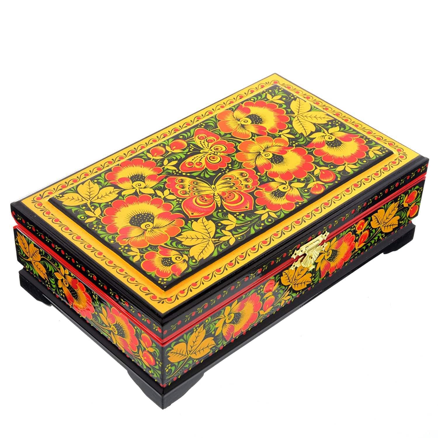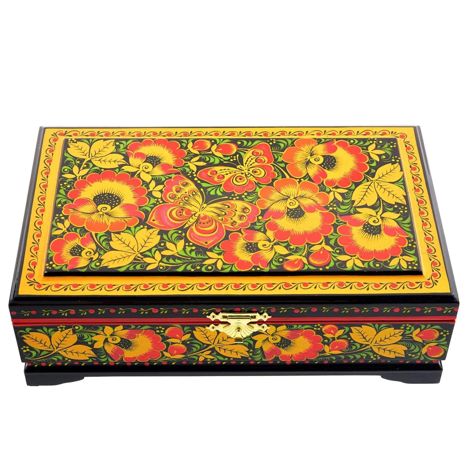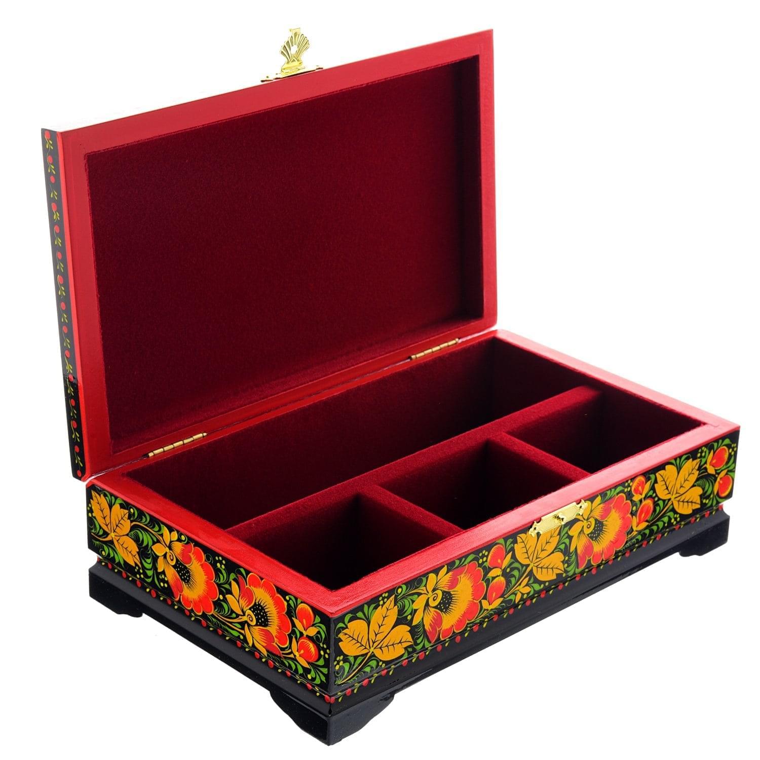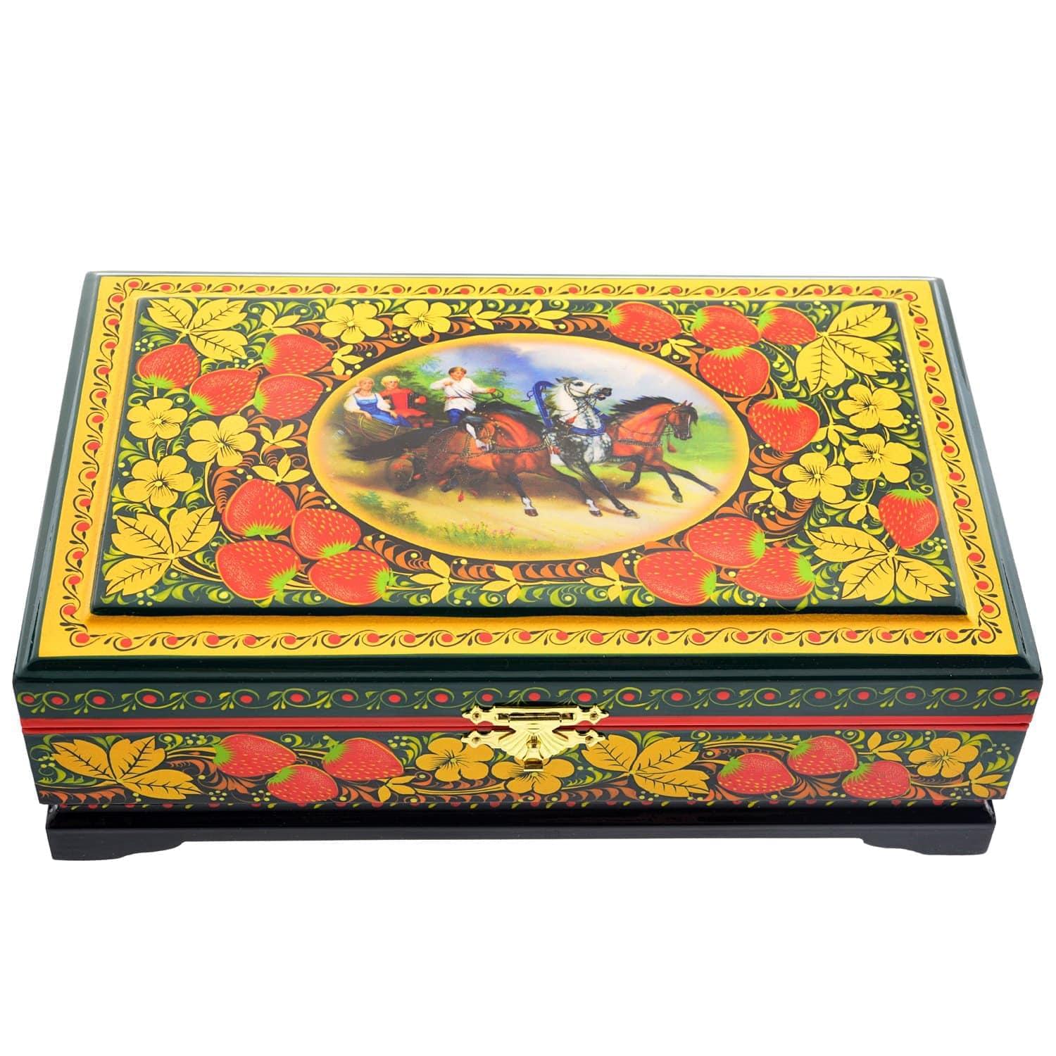 0058306/23*14см-ЗИМА Хохлома Шкатулка 4 ОТДЕЛЕНИЯ "ЗИМА ПЕЙЗАЖ" Р7  Н 0515 ....
