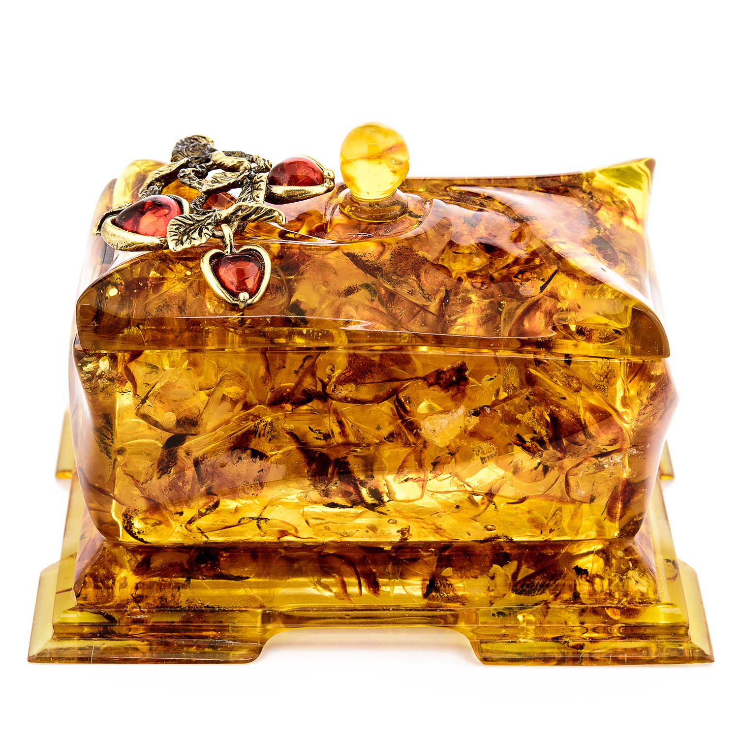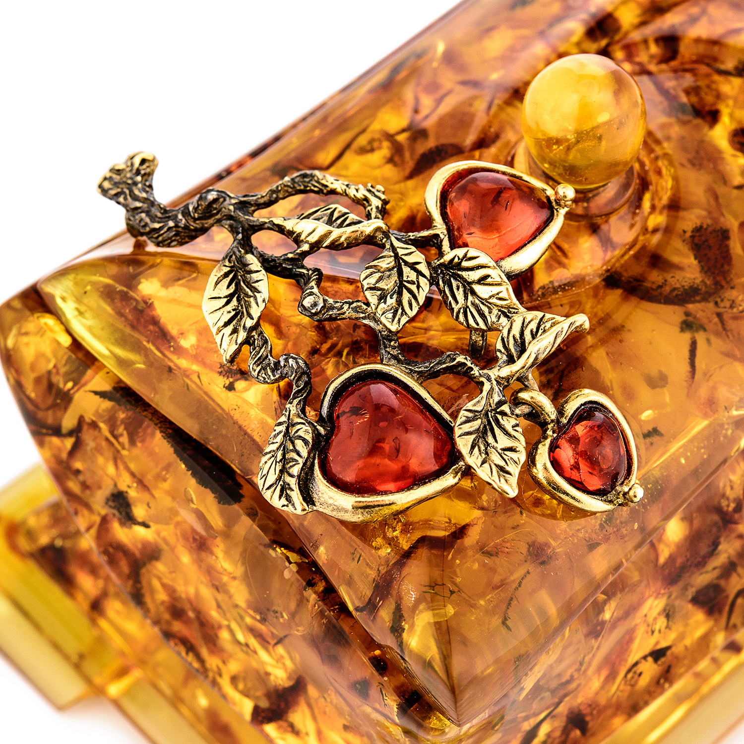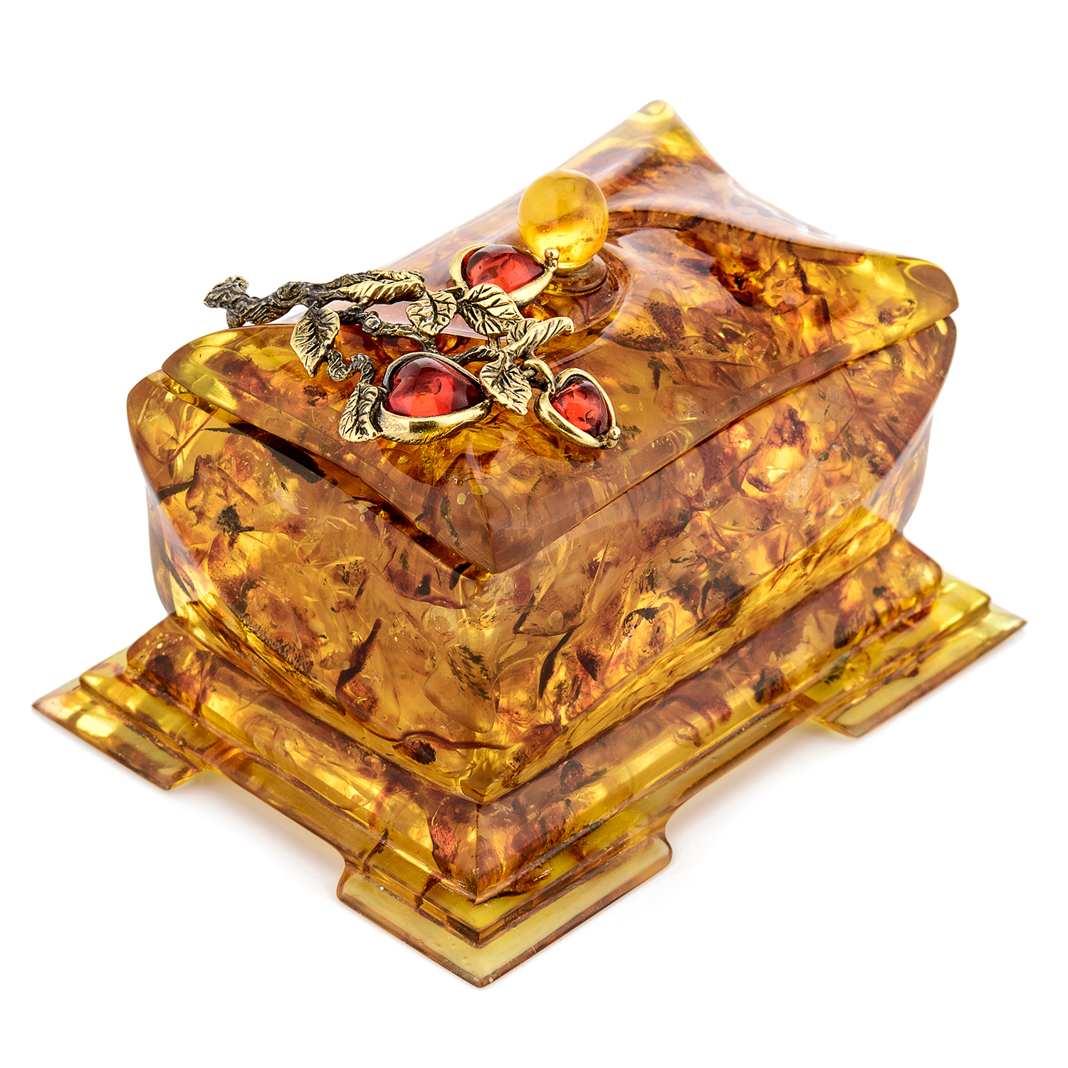 Шкатулка из янтаря прямоугольная "Яблочки на ветке"