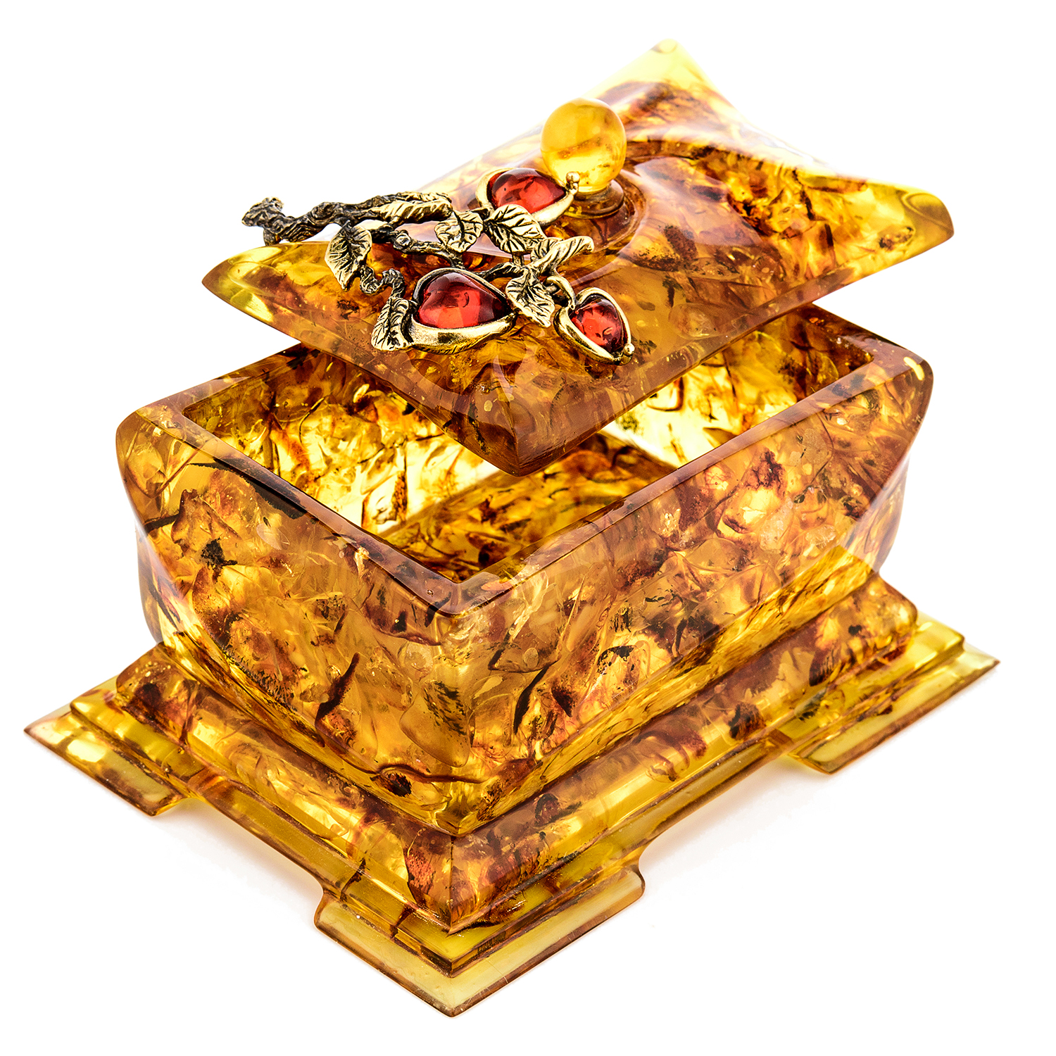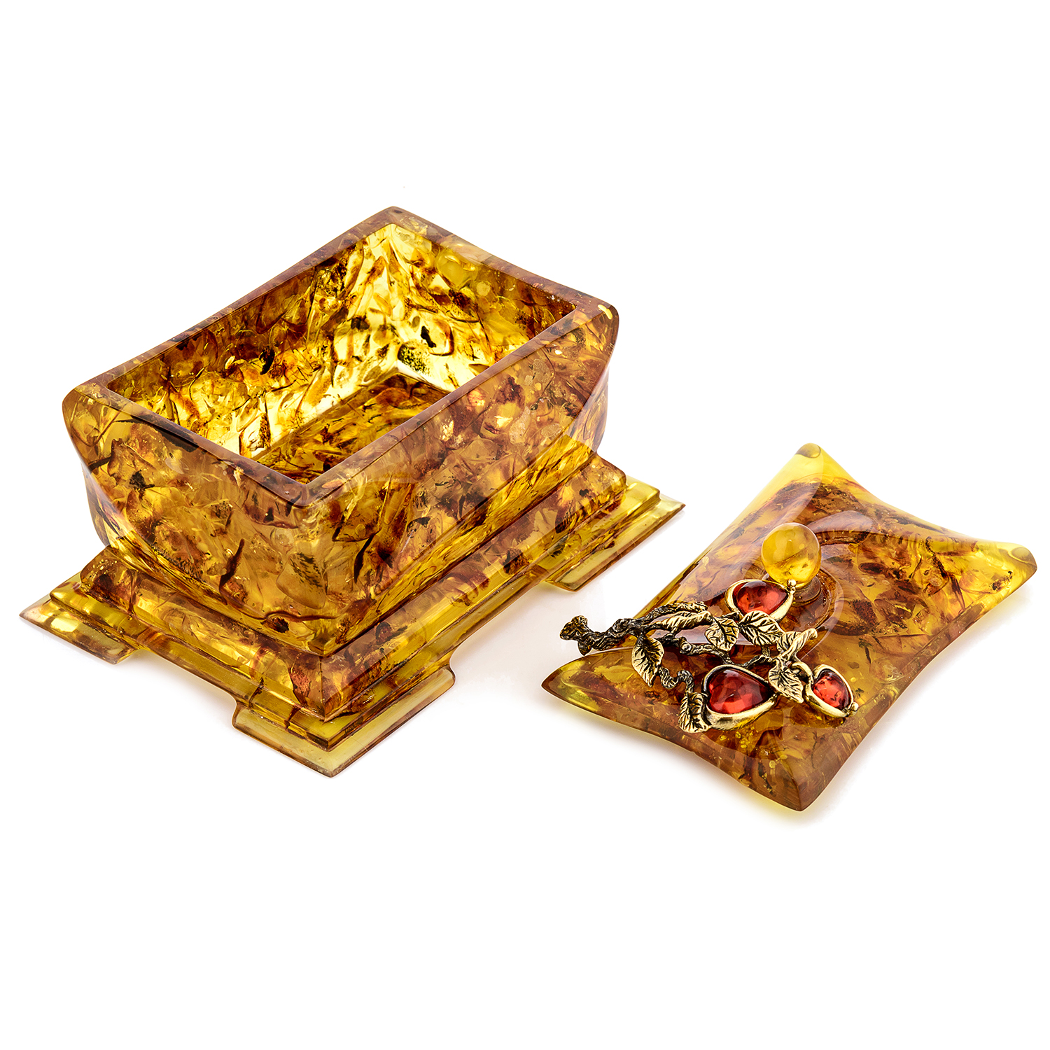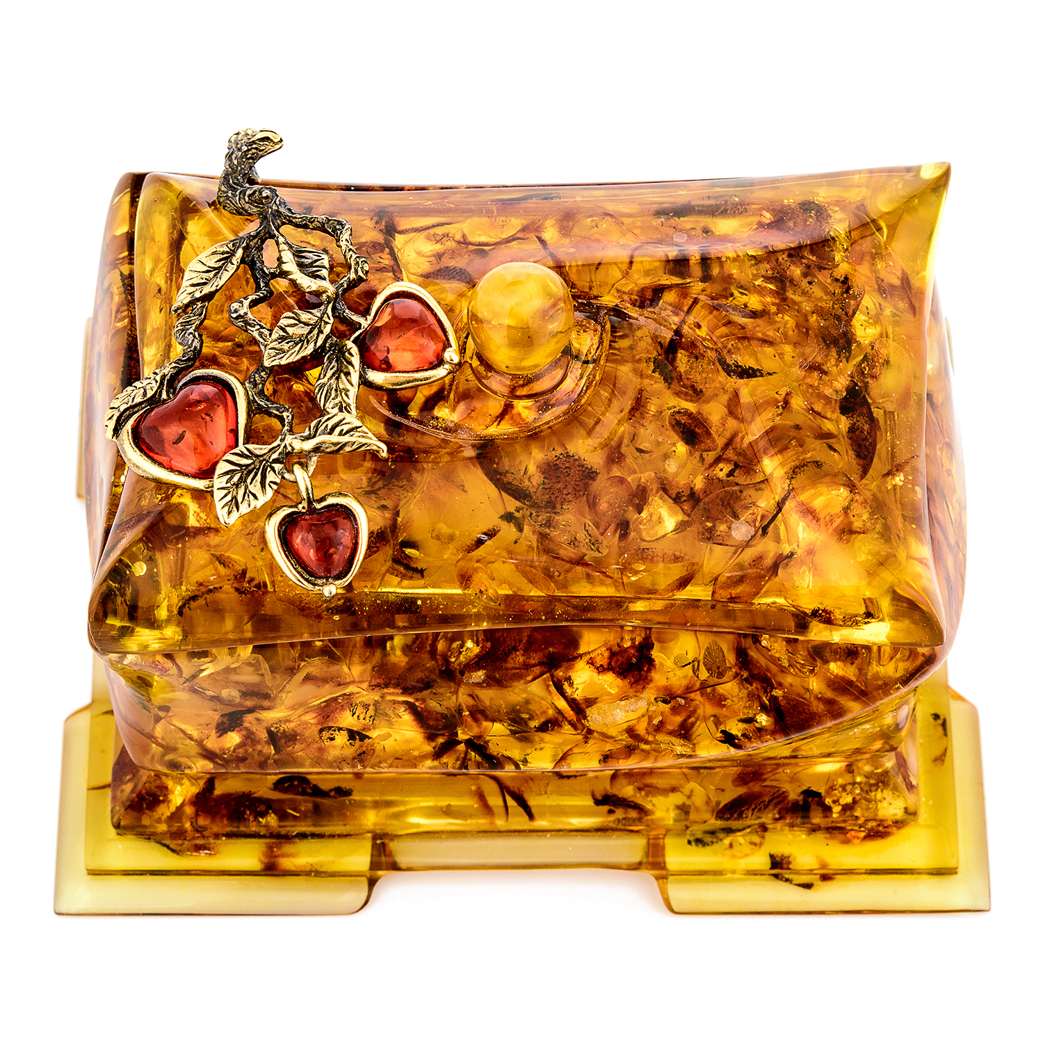 Шкатулка из янтаря прямоугольная "Яблочки на ветке"