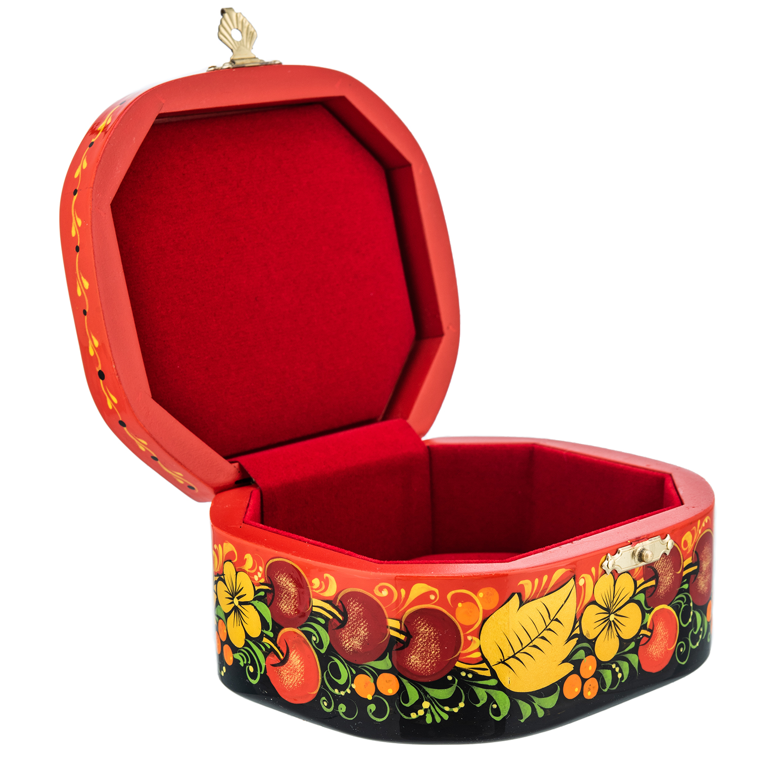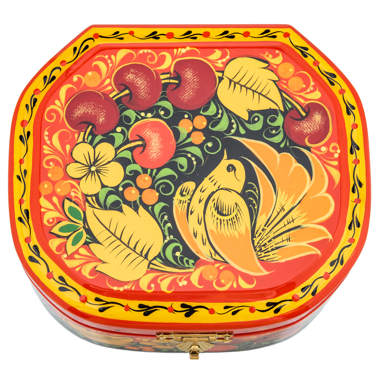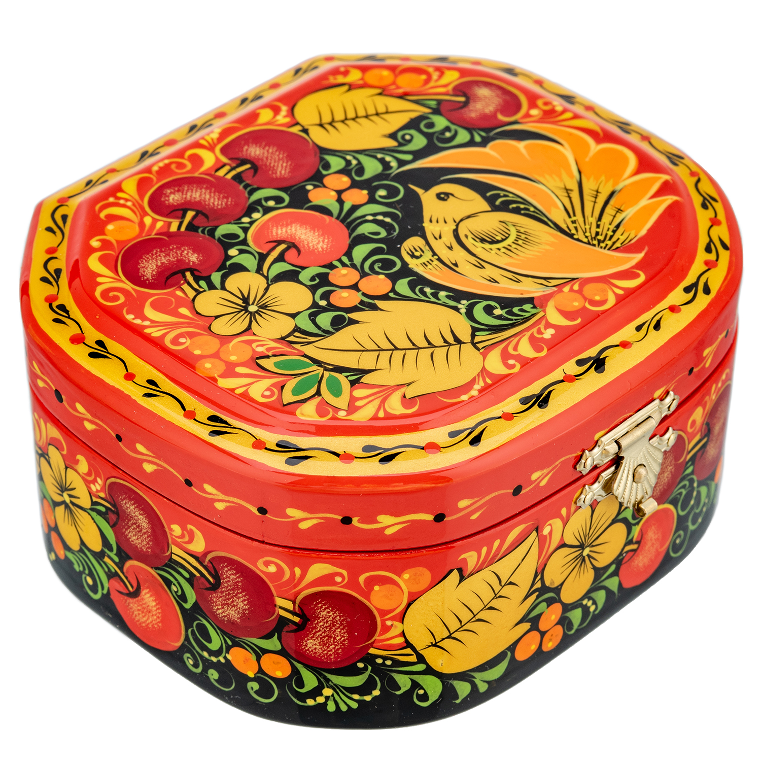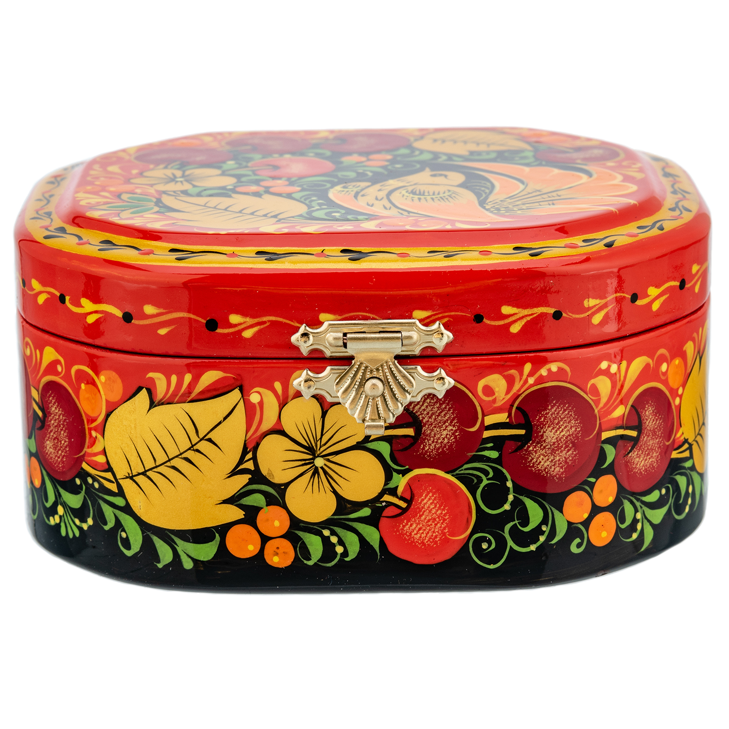 0074840/12*10см-овал Хохлома Шкатулка "ПТИЦА/ВИШНЯ" Р 31