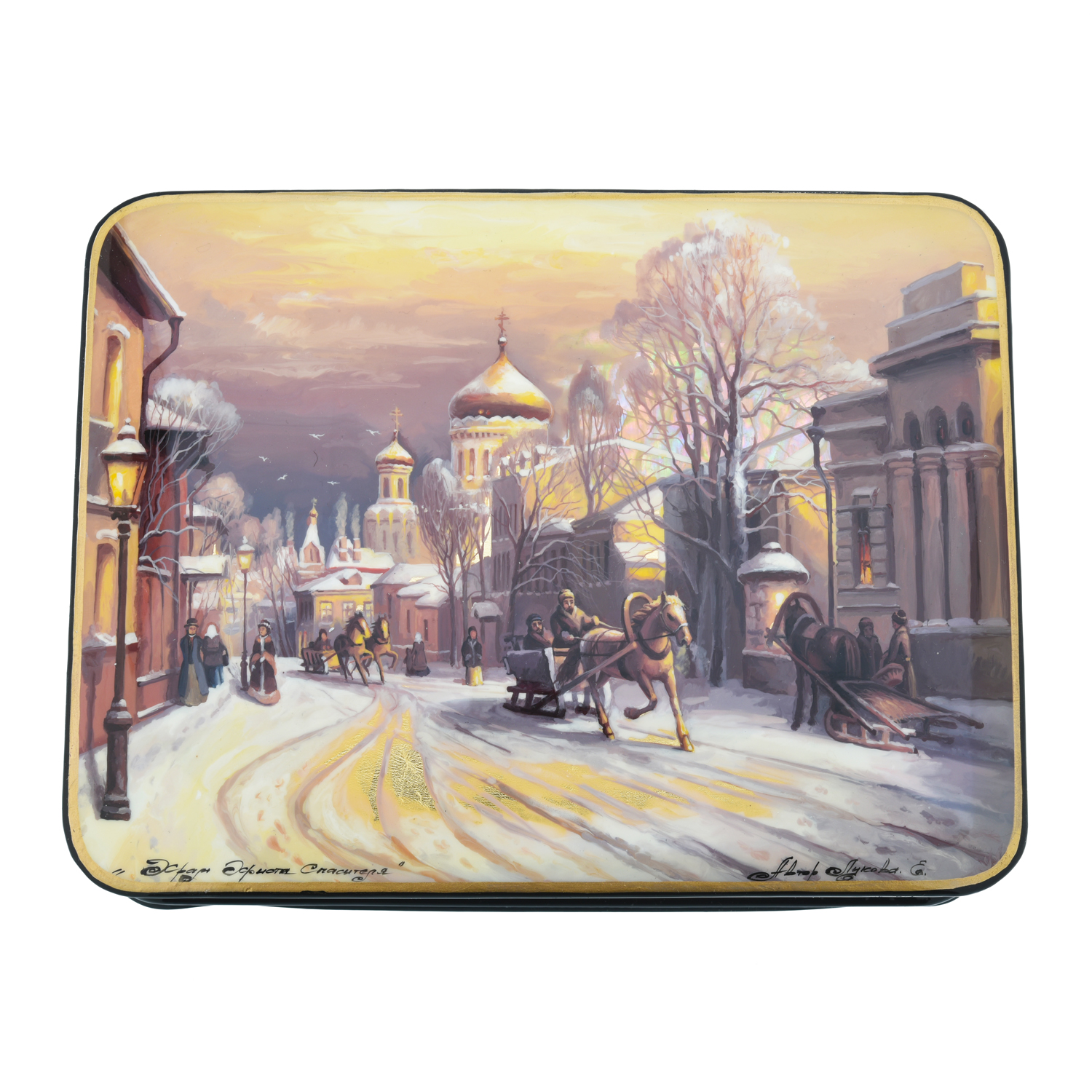 Шкатулка с художественной росписью "Храм Христа Спасителя".Материалы: папье-маше, краски, лак.