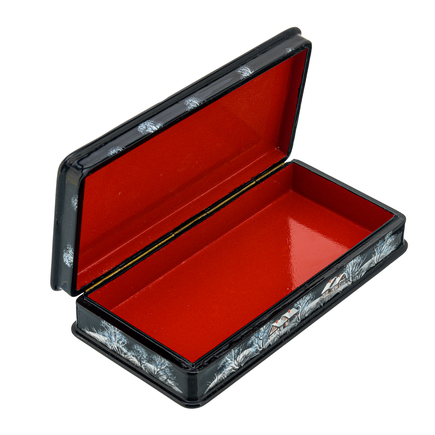 Шкатулка с художественной росписью "Зима в деревне".