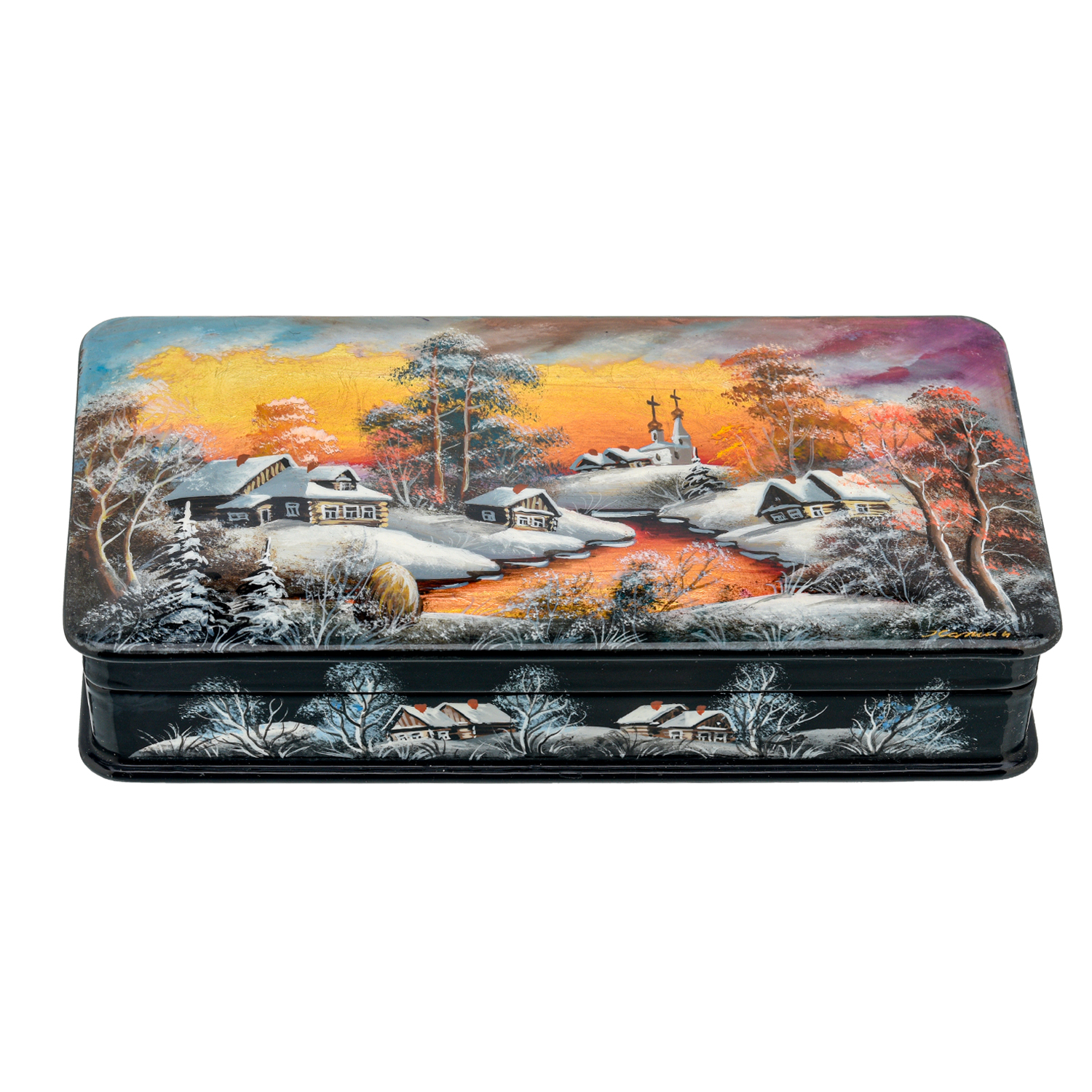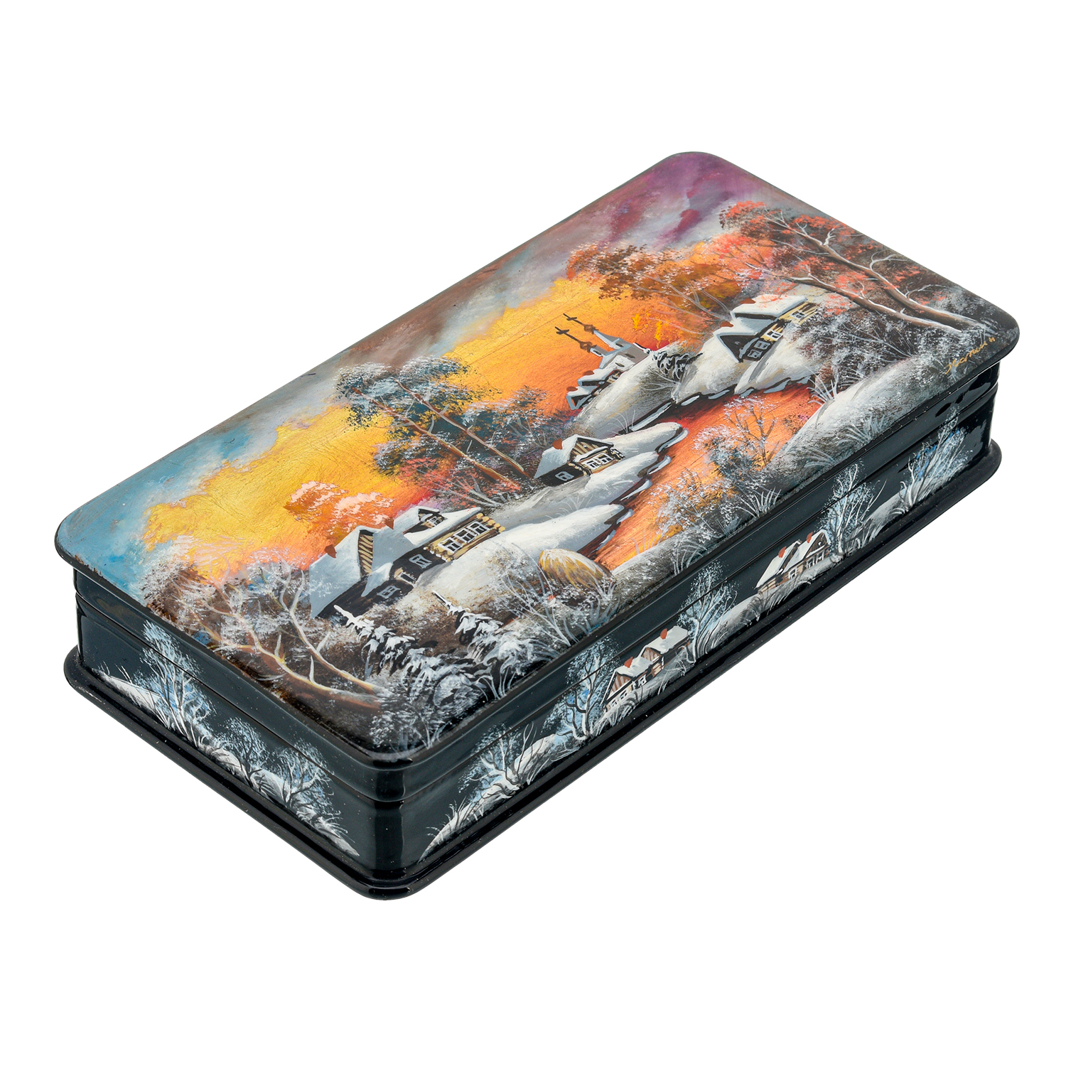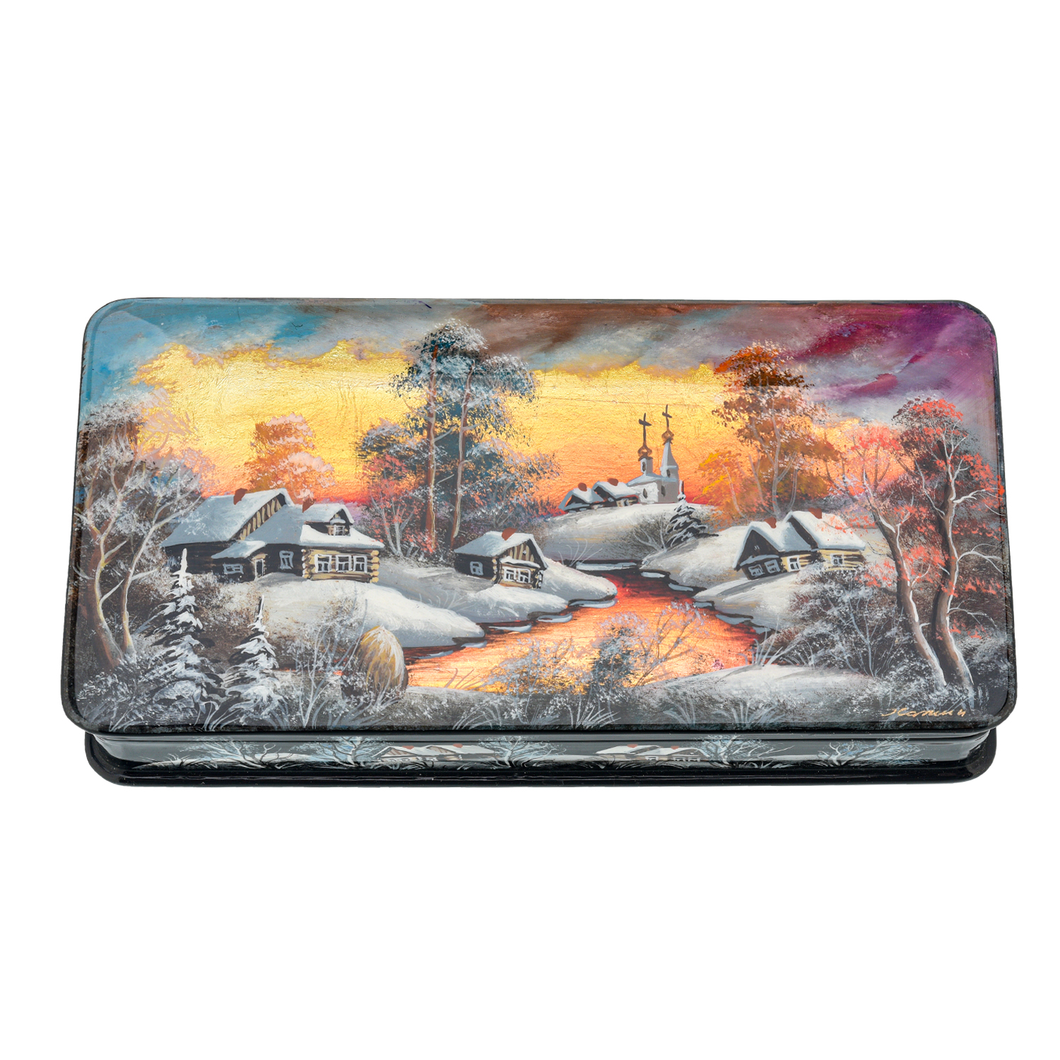 Шкатулка с художественной росписью "Зима в деревне"