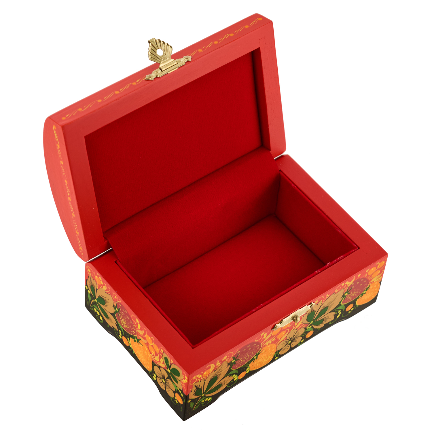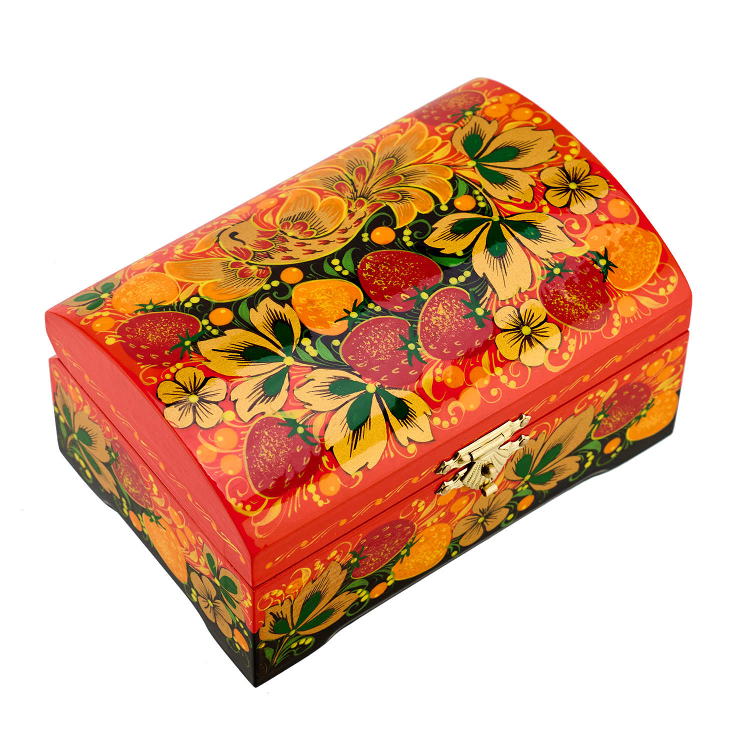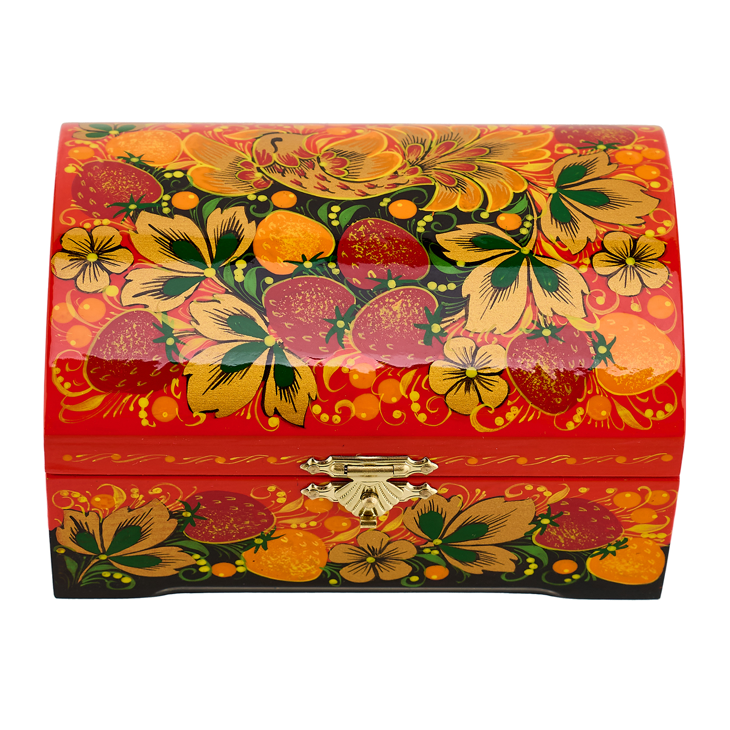 Шкатулка-сундучок "Птица и клубника". Хохлома.