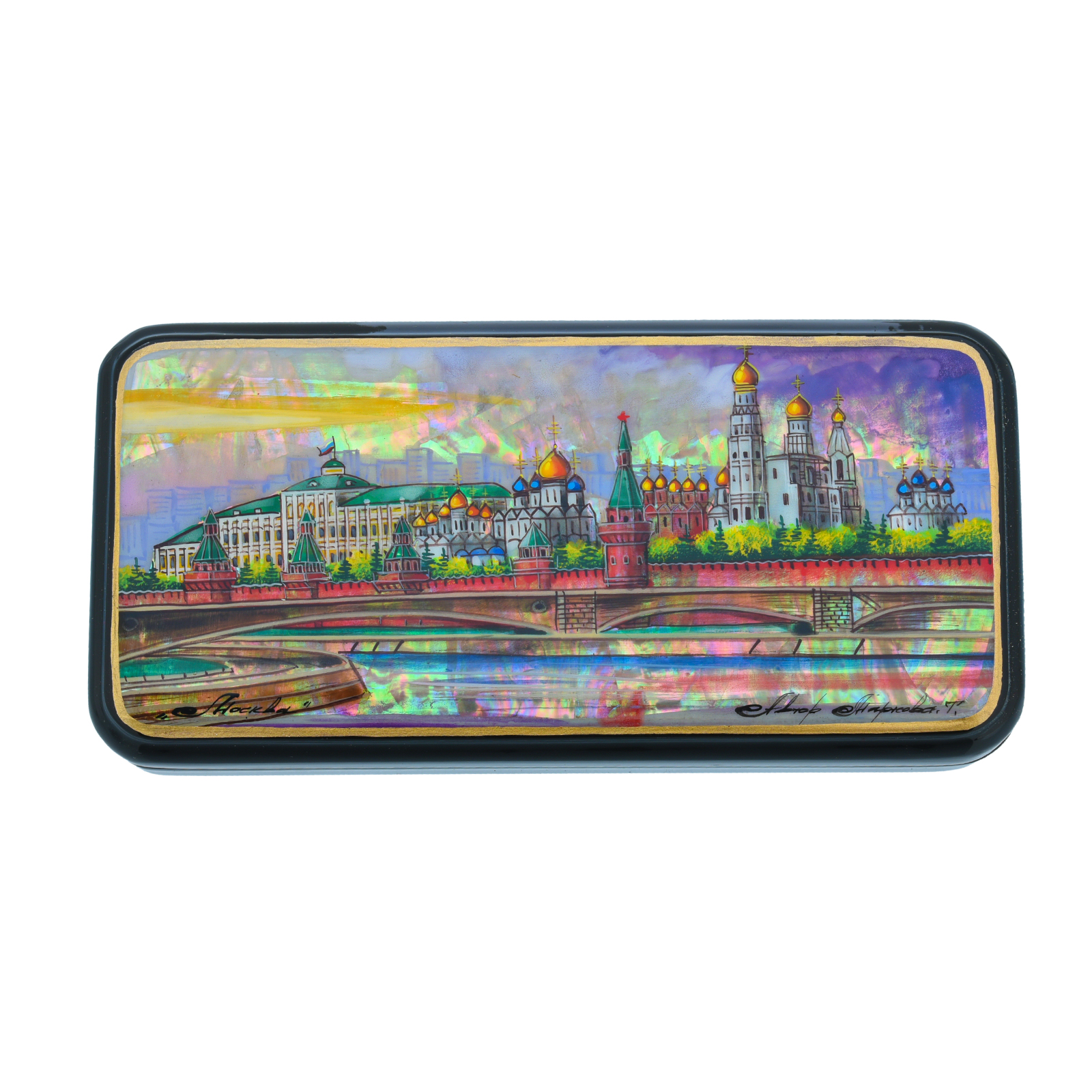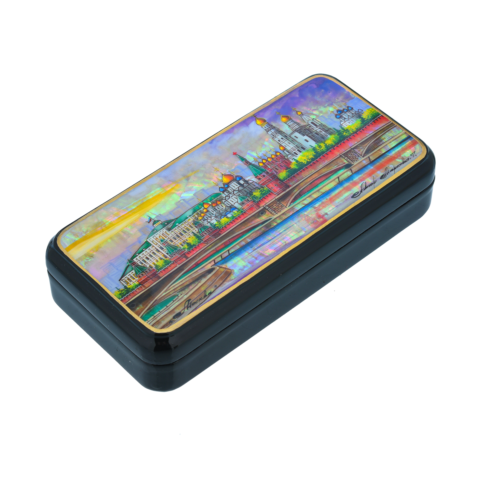 Шкатулка с художественной росписью "Москва".Материалы: папье-маше, краски, перламутр, лак.