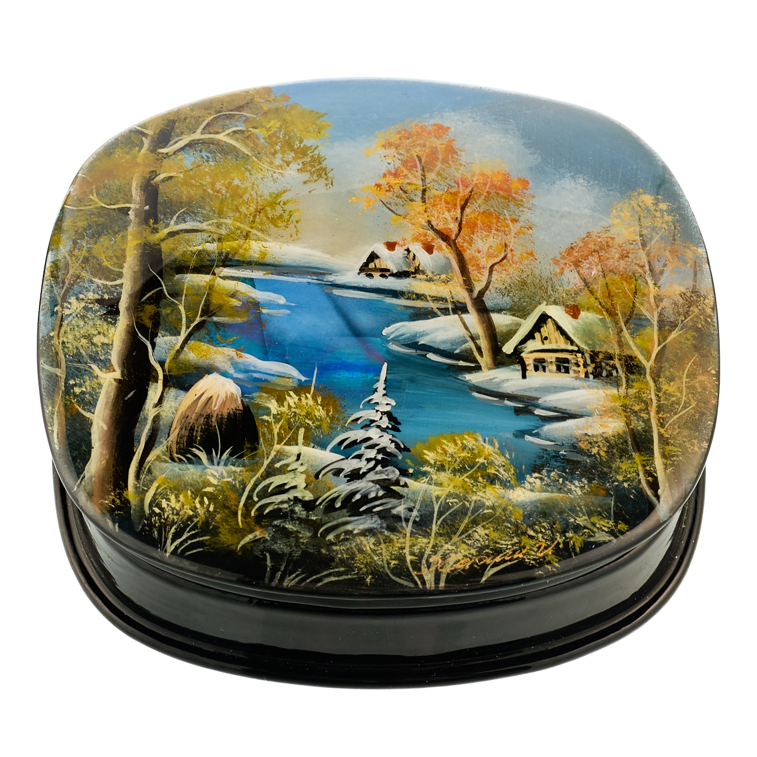 Шкатулка с художественной росписью "Зима в деревне"