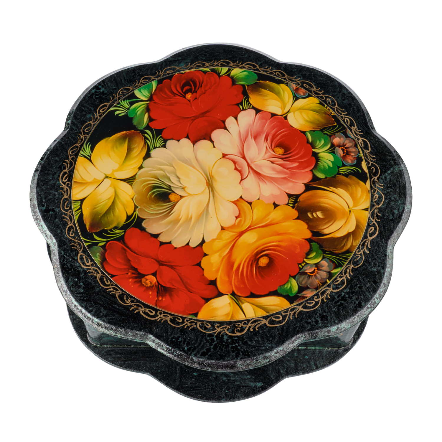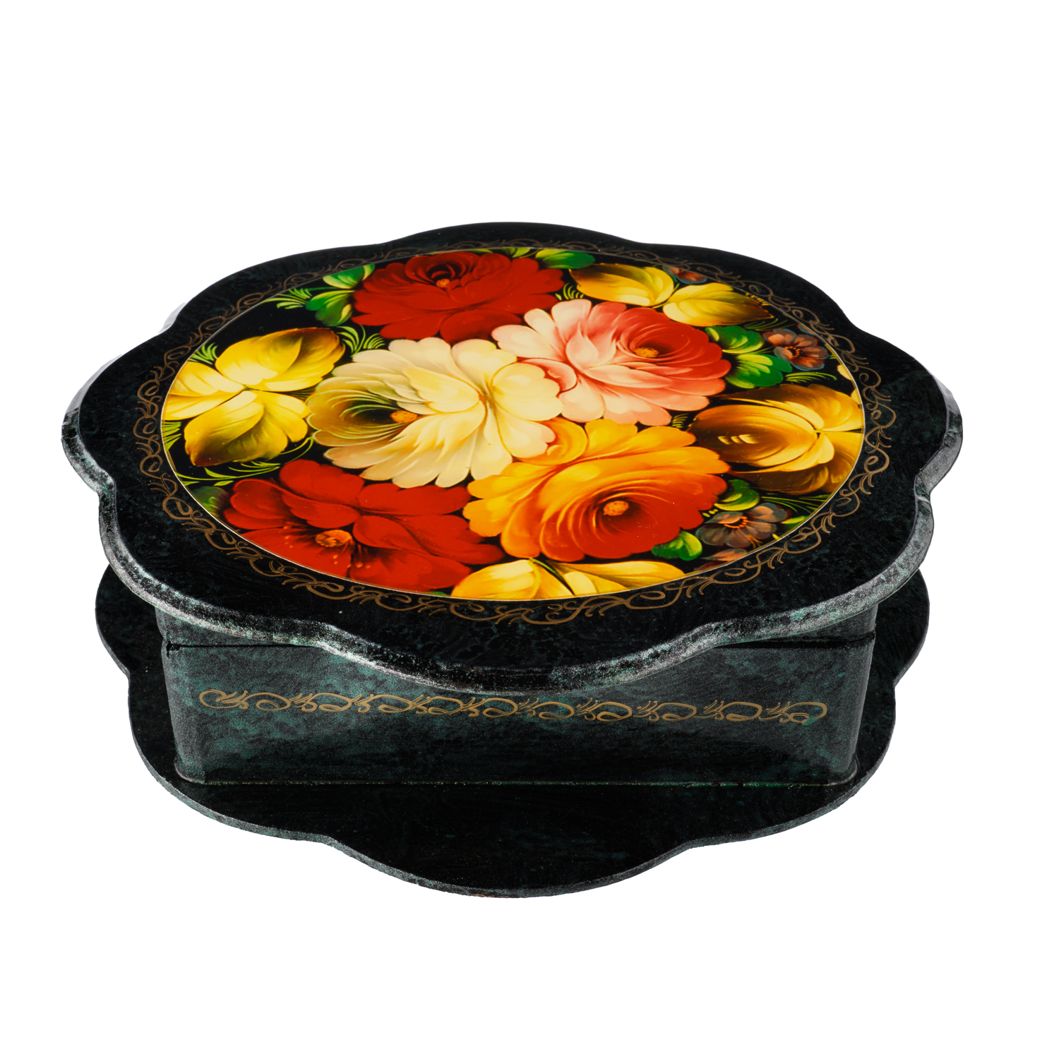 Шкатулка "Цветочные мотивы" с подарком внутри - платком случайной расцветки.Материл: папье-маше.
