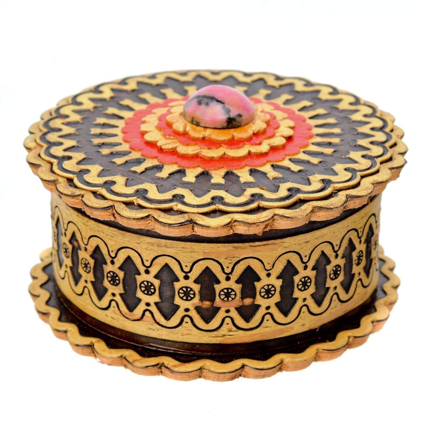 Деревянная шкатулка из бересты круглая с родонитом