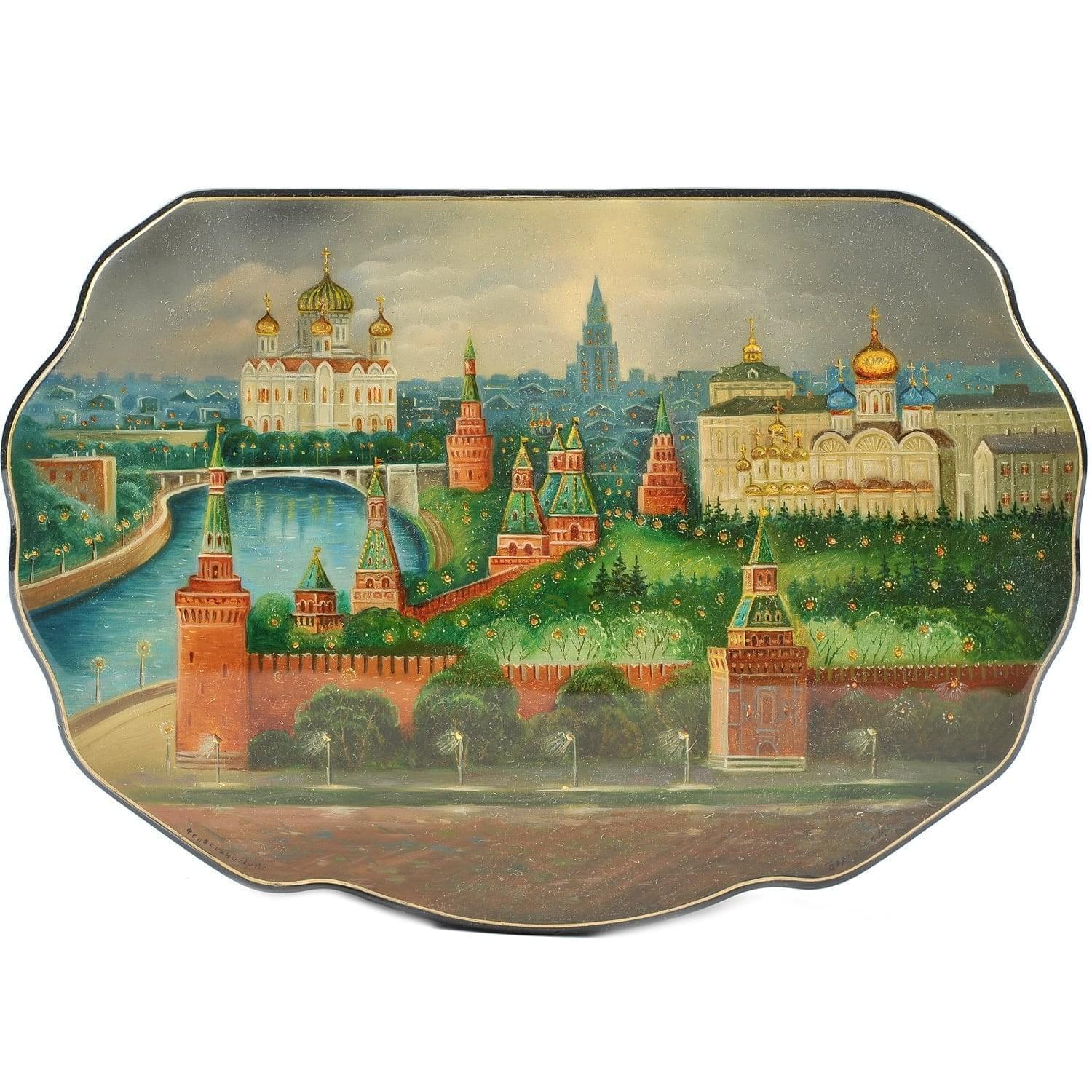 Шкатулка с лаковой миниатюрой "Вечерняя Москва"