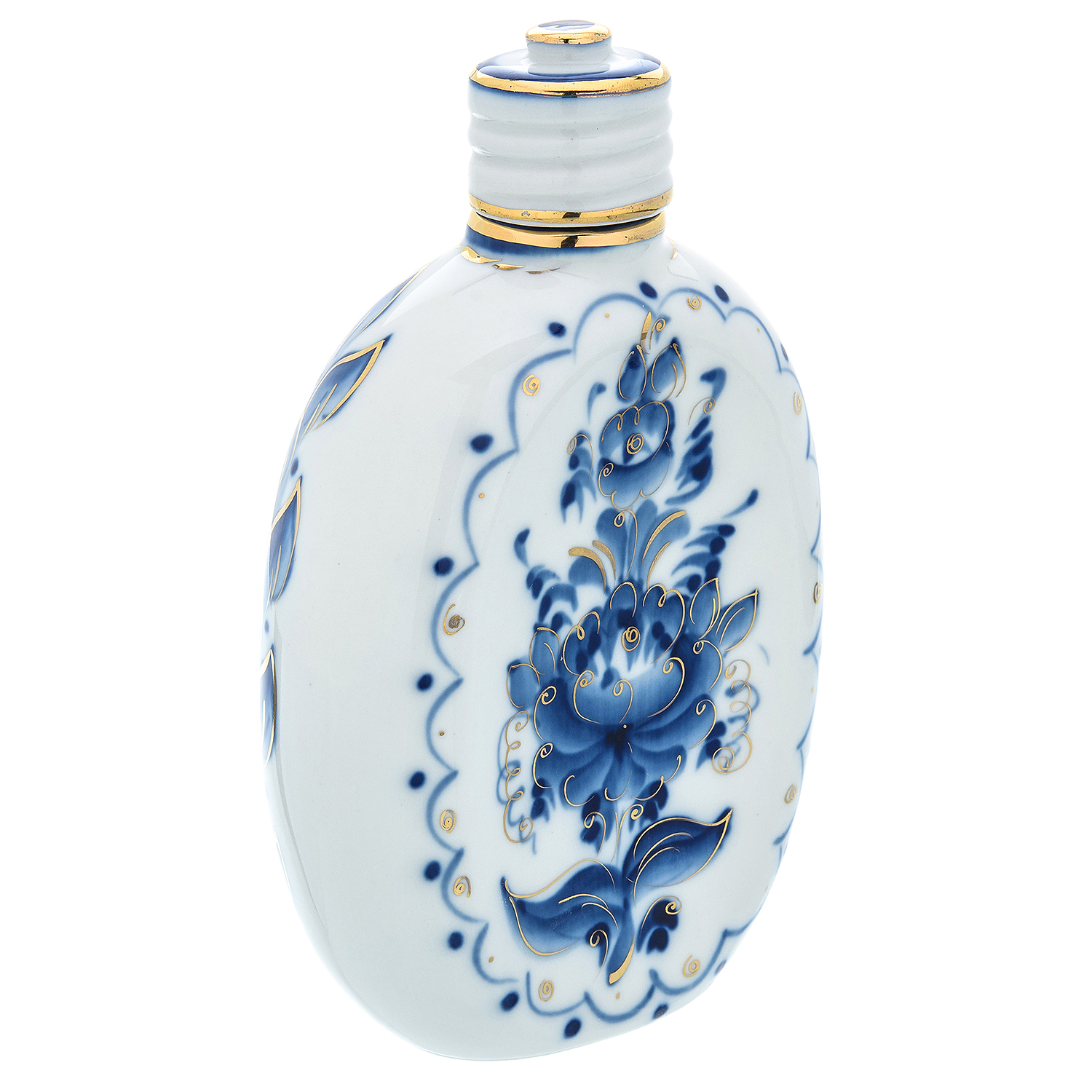 Фарфоровый штоф-фляжка 0,5 л "Пограничники". Гжель в цвете и золоте