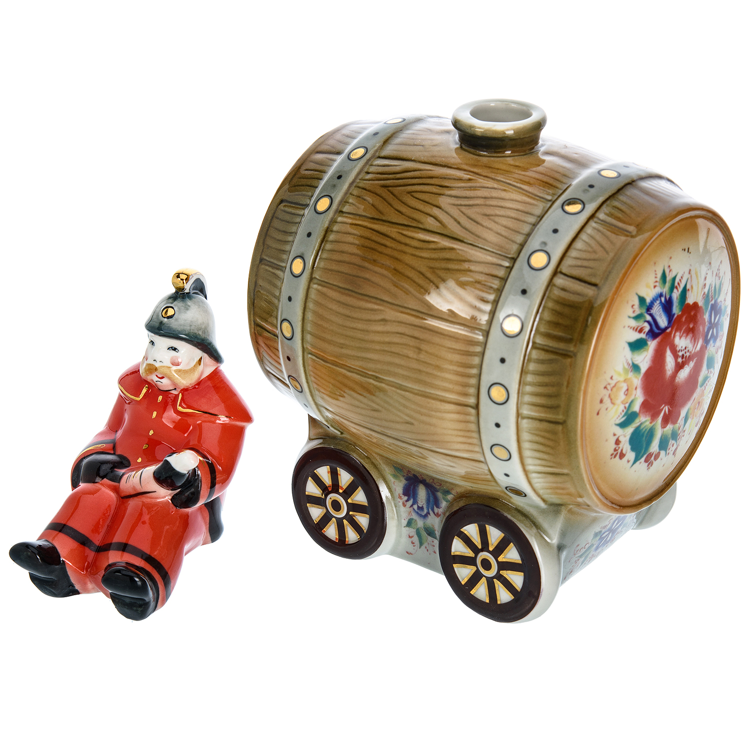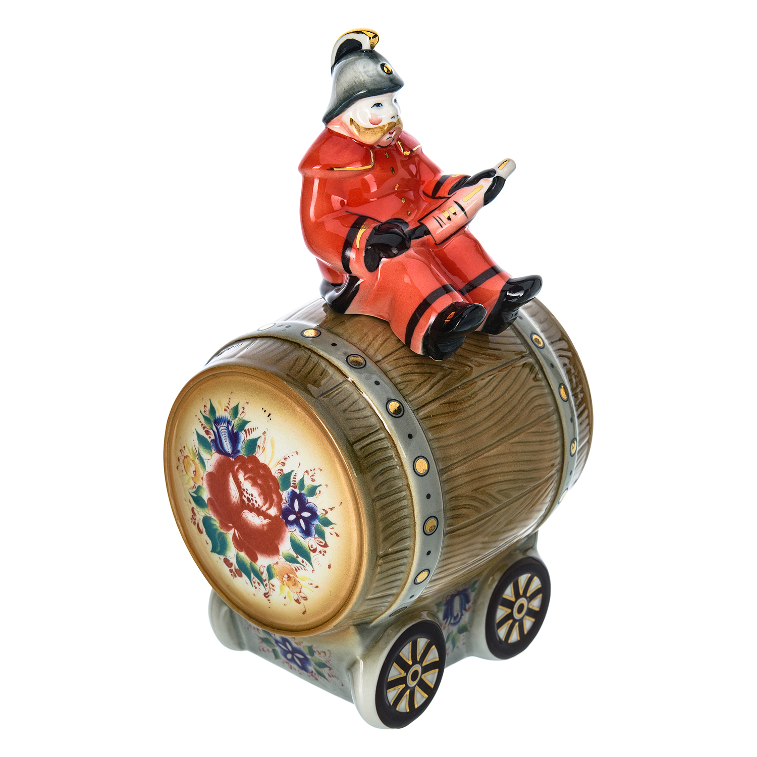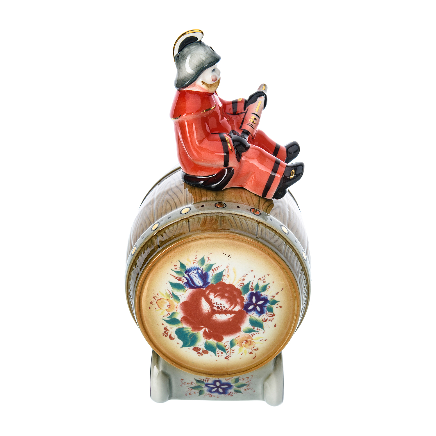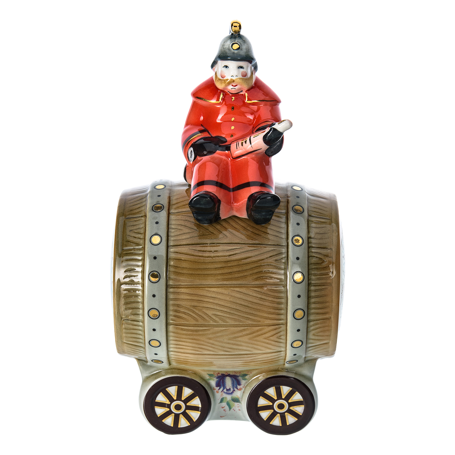 Штоф фарфоровый 700 мл "Пожарный на бочке". Гжель в цвете