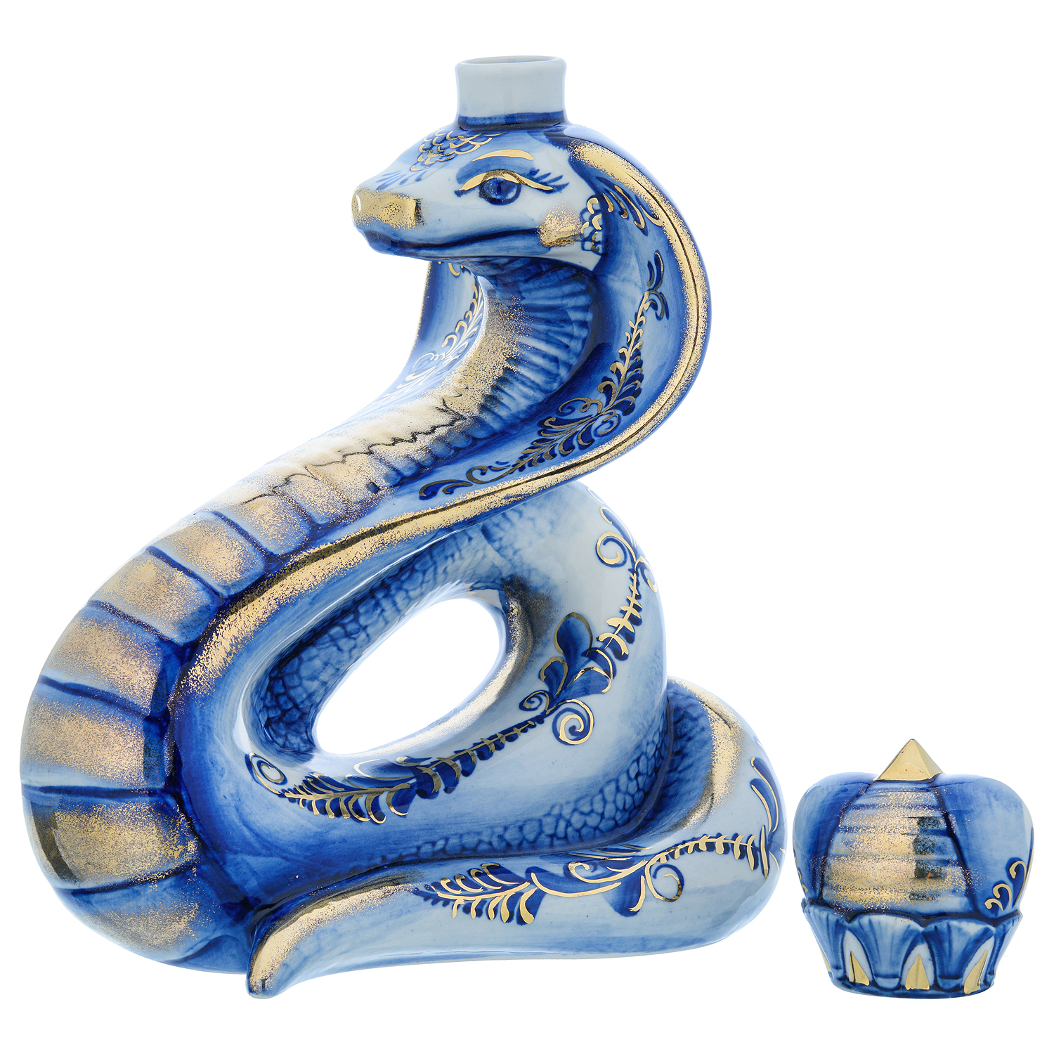 Змея Символ 2025 года. Штоф 0,5 л "Кобра". Гжель в золоте