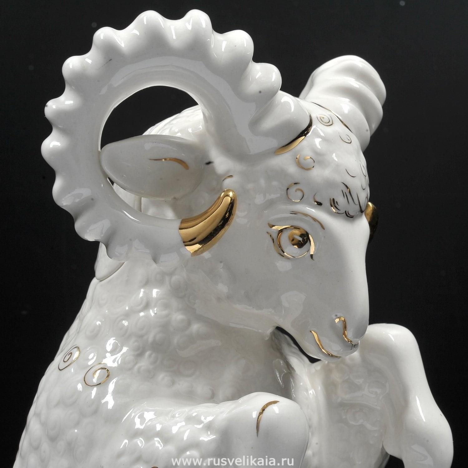 0019556-1л Фарфор ШТОФ "Баран/овца" белый с зол. в комплекте (5021) ....