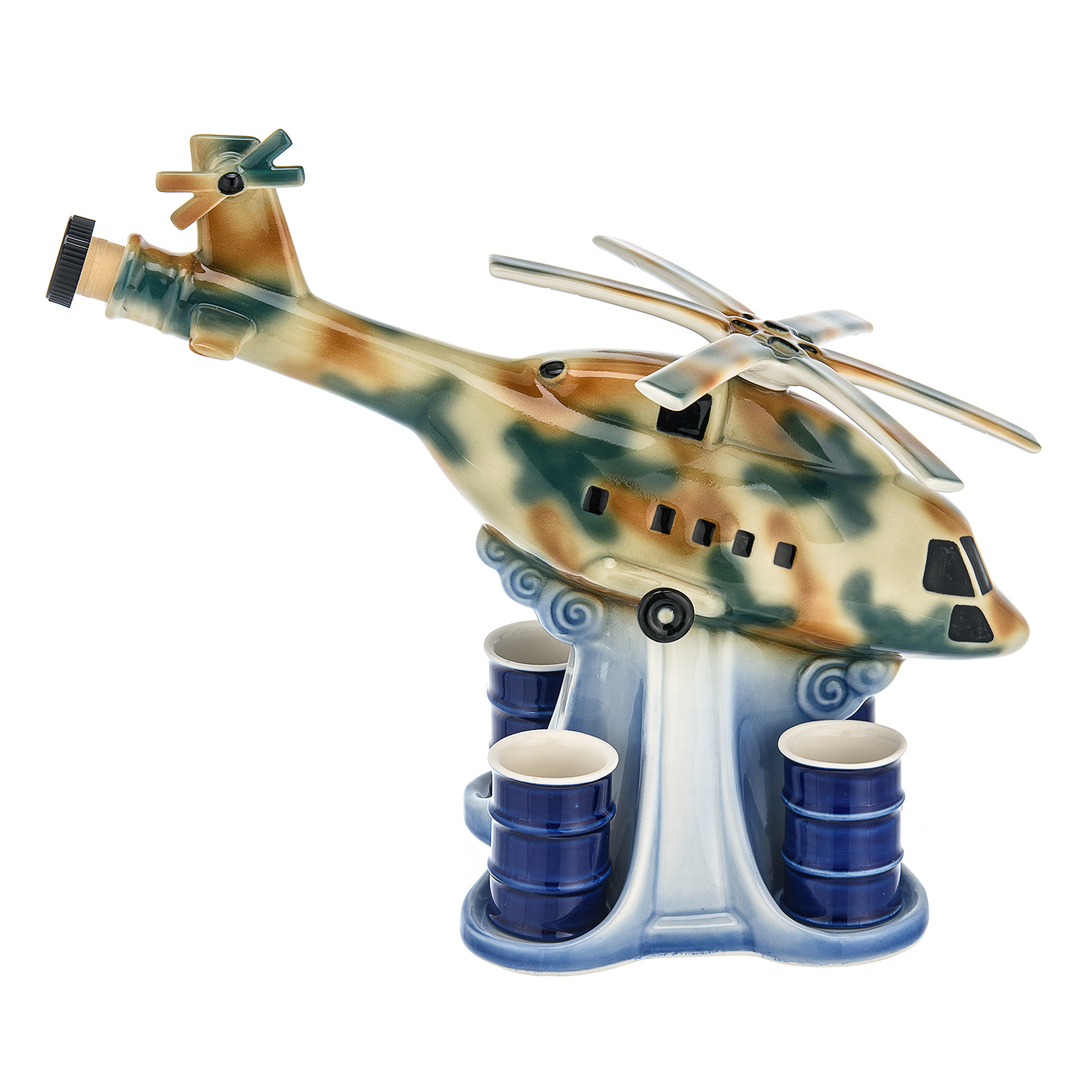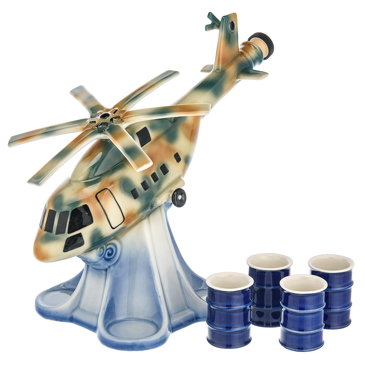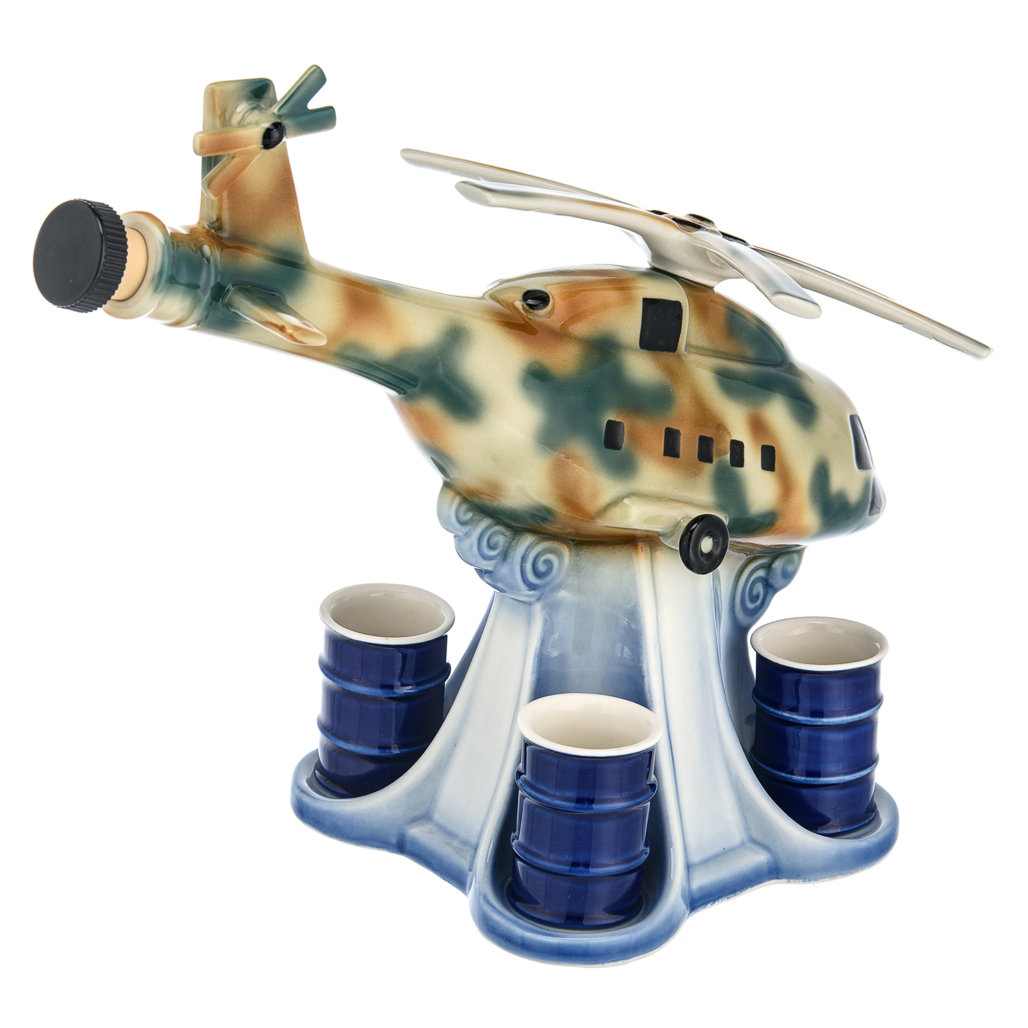 Штоф фарфоровый 500 мл "Вертолет" со стопками. Гжель