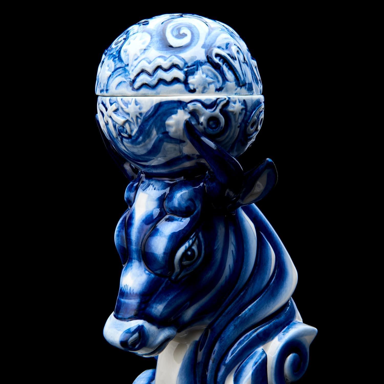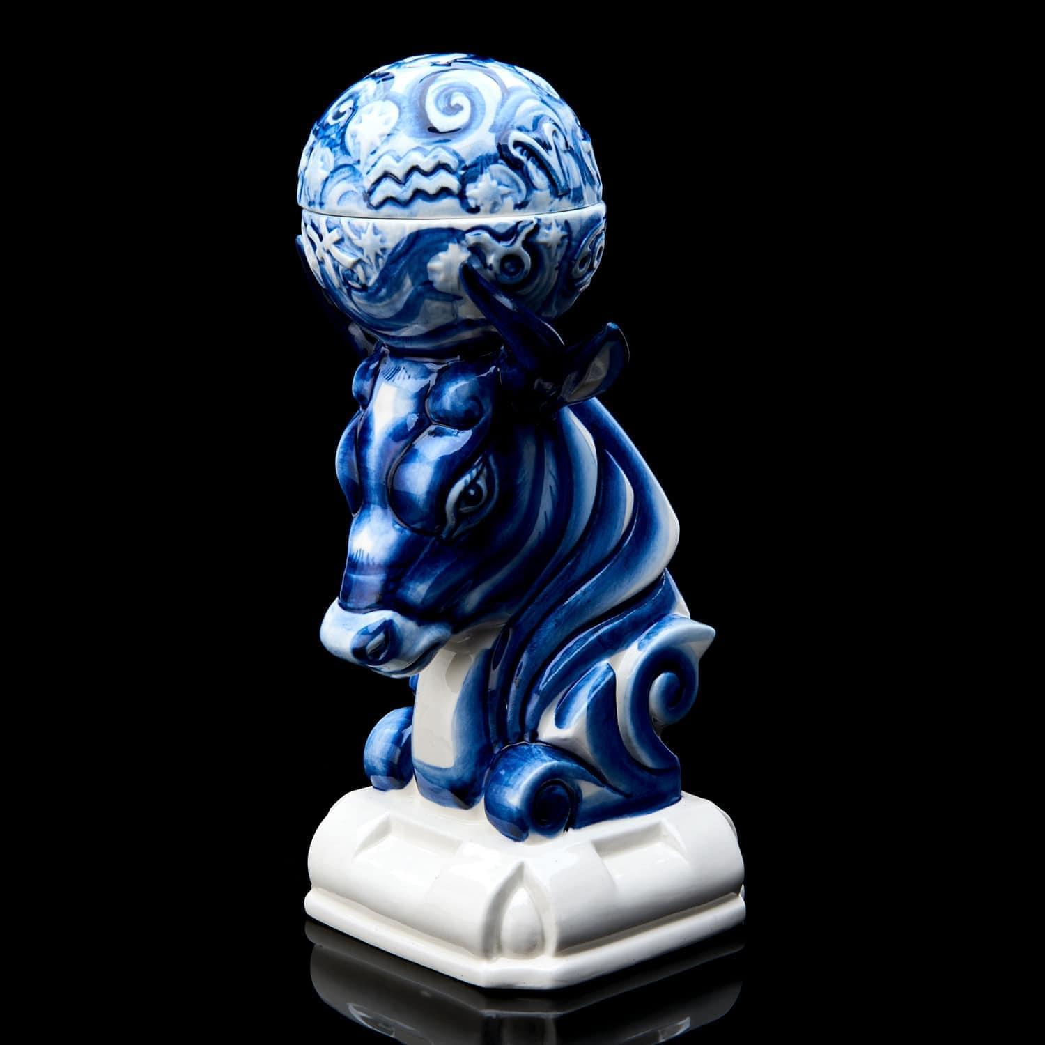 0053804-0,5л /КОБАЛЬТ Фарфор ШТОФ "Бык-ЗОДИАК" КОБАЛЬТ .