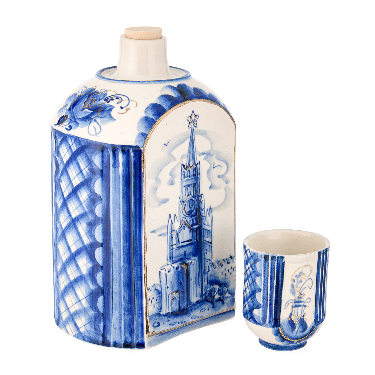0011927-0,7л Фарфор ШТОФ "Праздничный" кобальт в золоте (в комплекте) 0,7л (912)