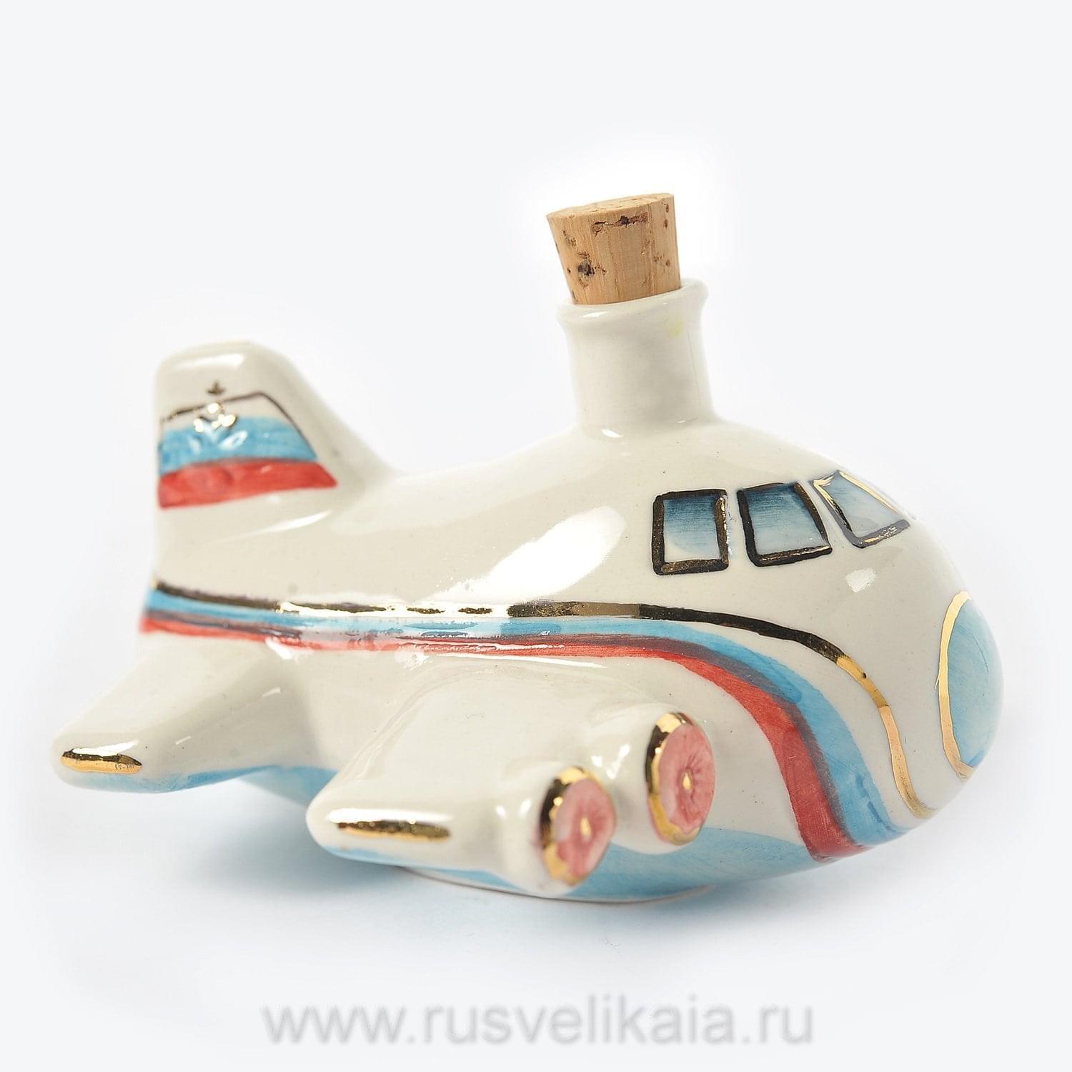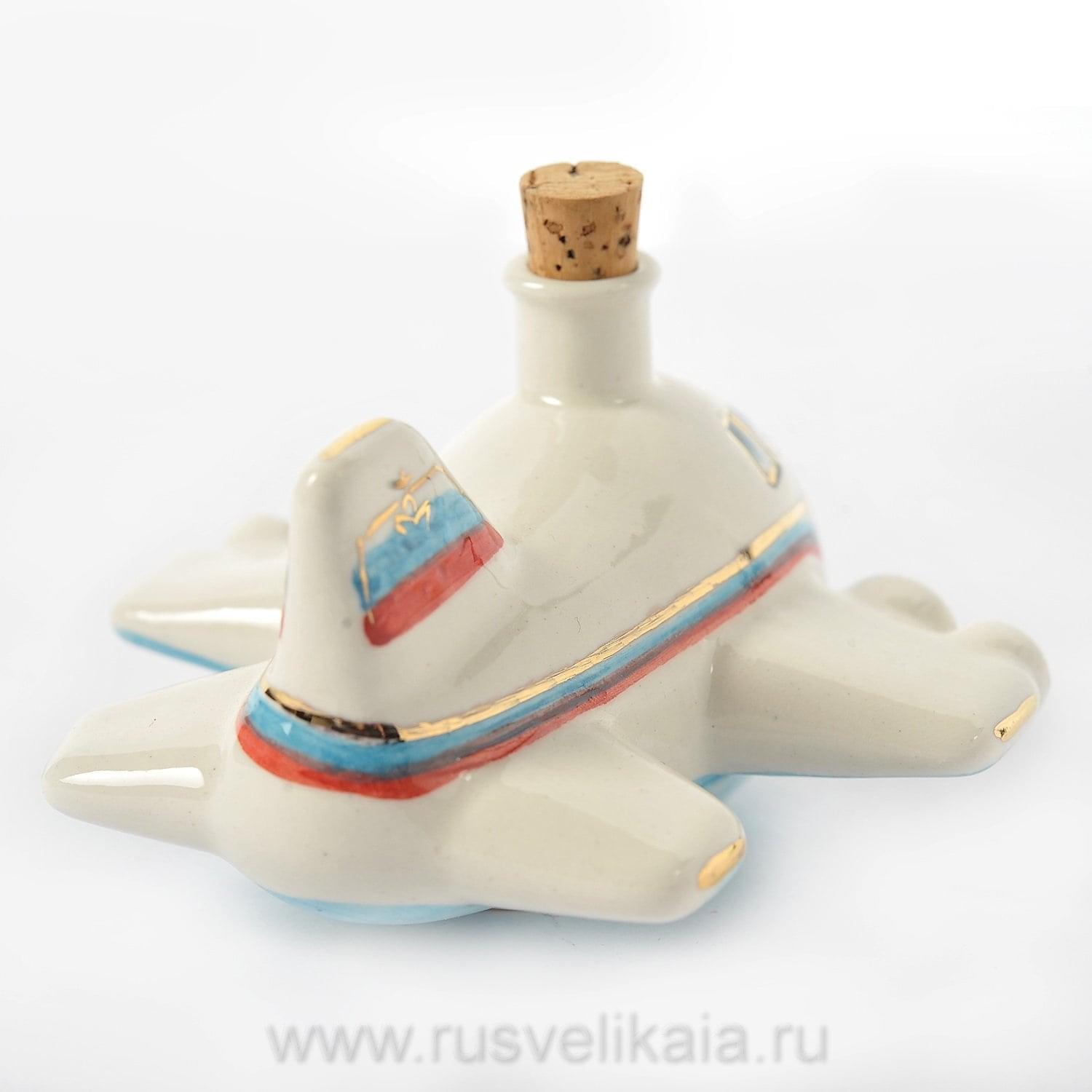 0016037-0,05л Фарфор МИНИ-ШТОФ "Игрушка -Самолет"в цвете и золоте 0,05л в комплекте ....