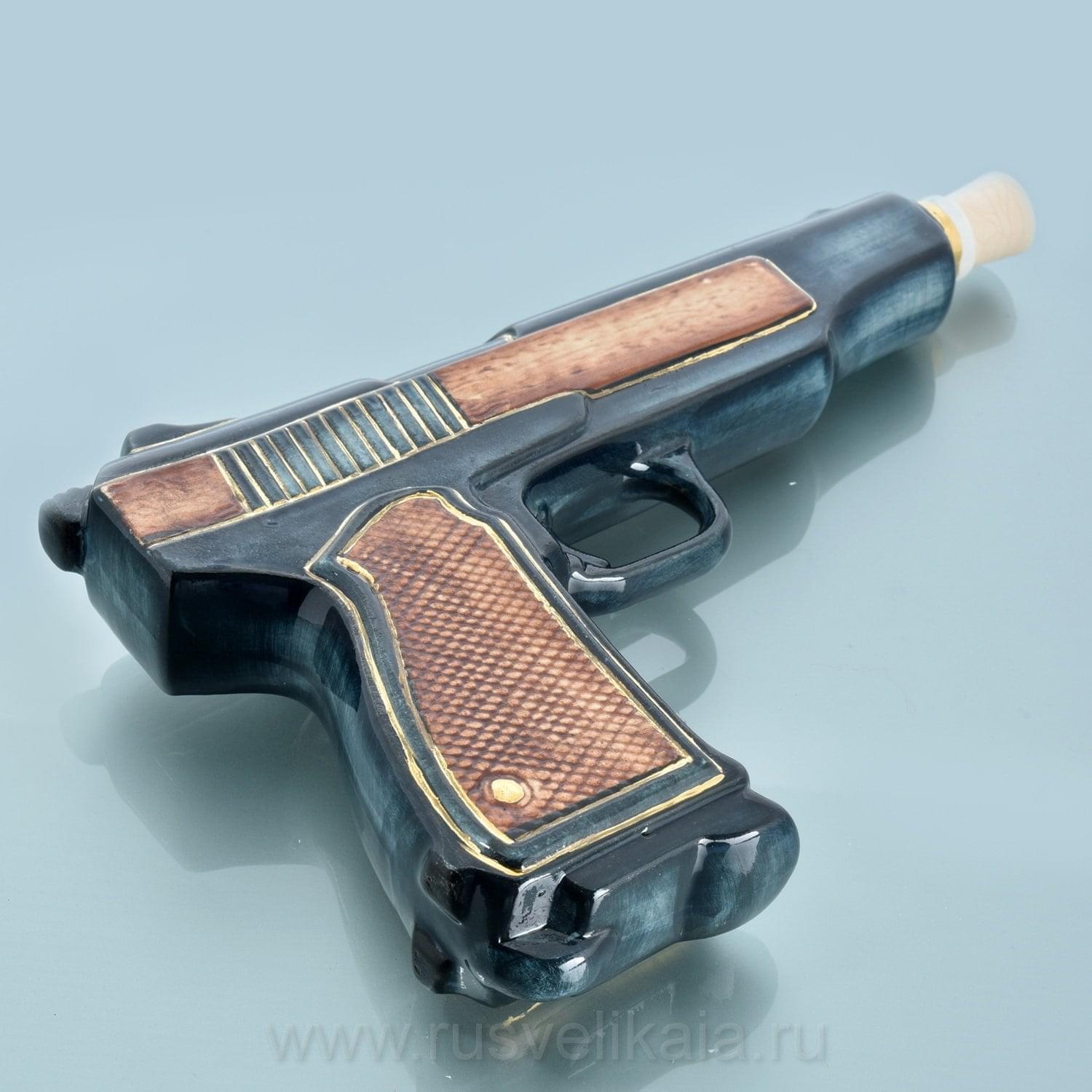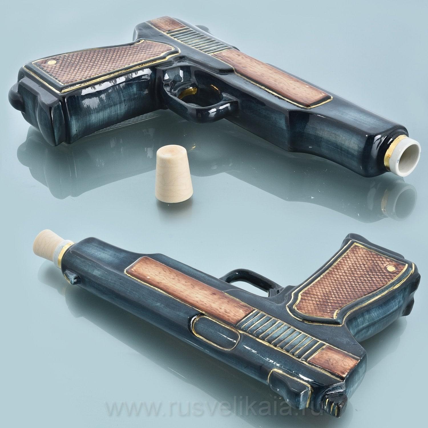 0013011-0,5л-зол  Фарфор ШТОФ "Пистолет" АПС в цвете и золоте 0,5л ....