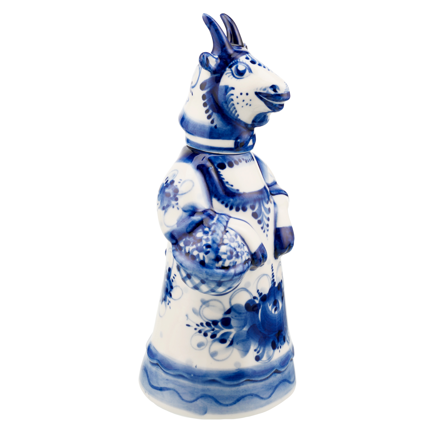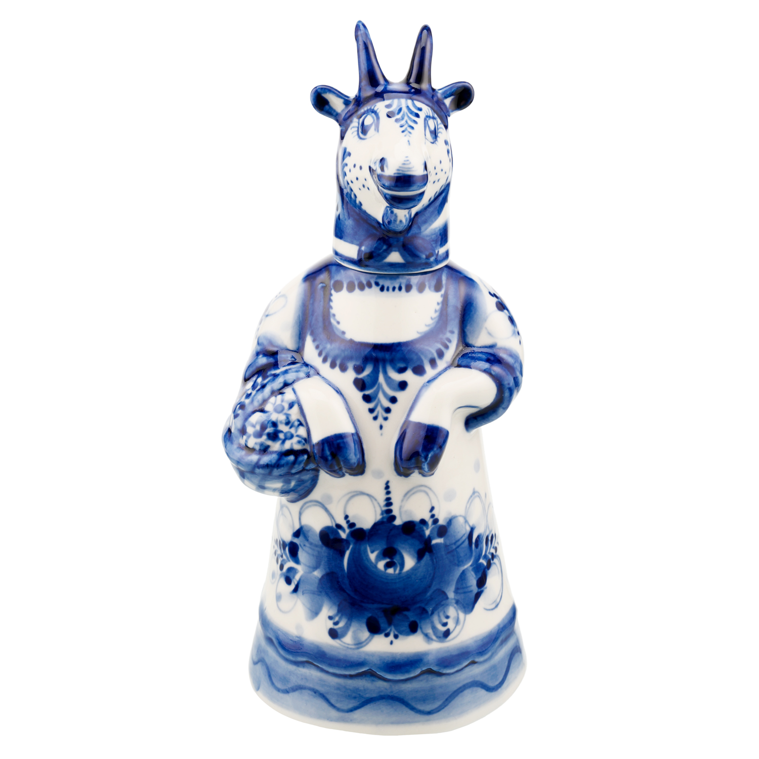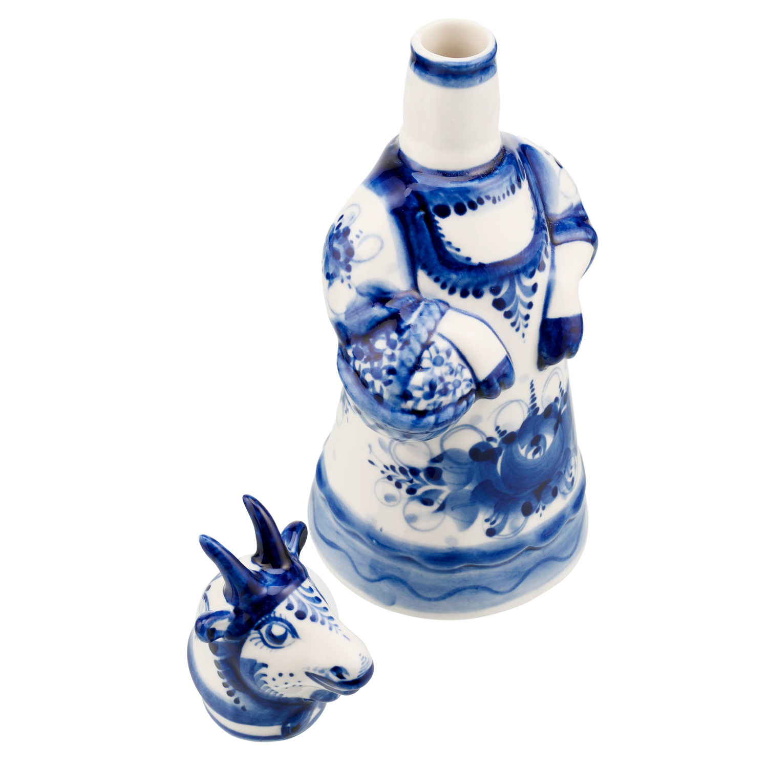 Штоф фарфоровый с росписью "Коза". Гжель