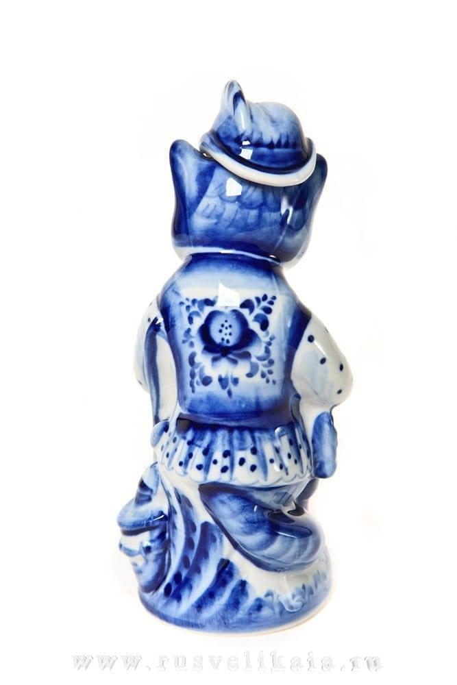 Штоф фарфоровый "Кот-рыболов". Гжель