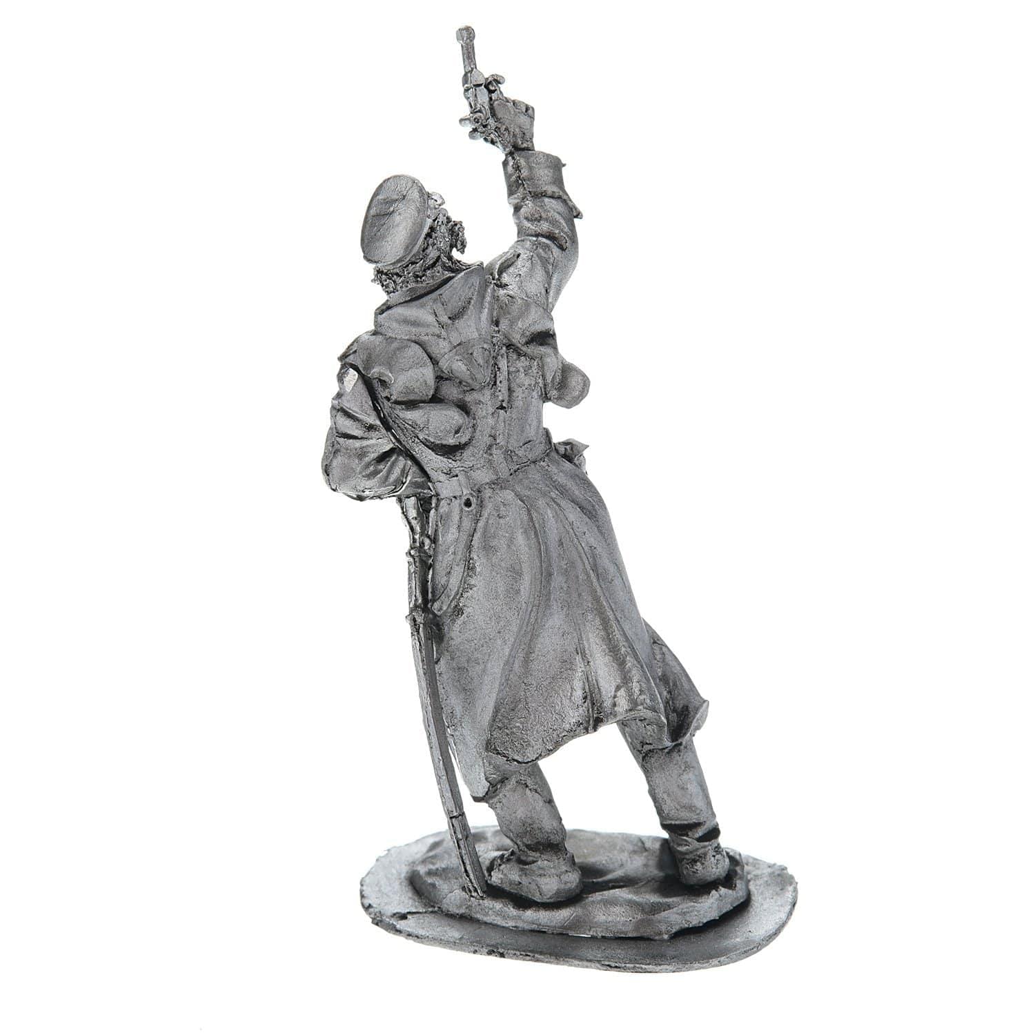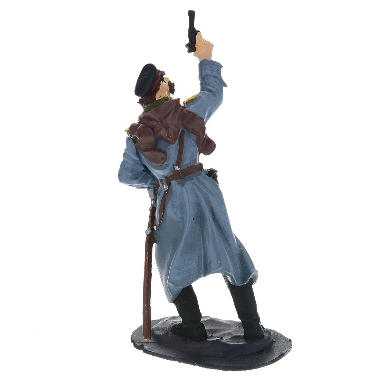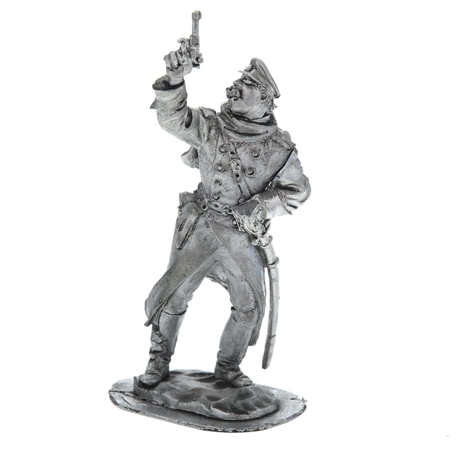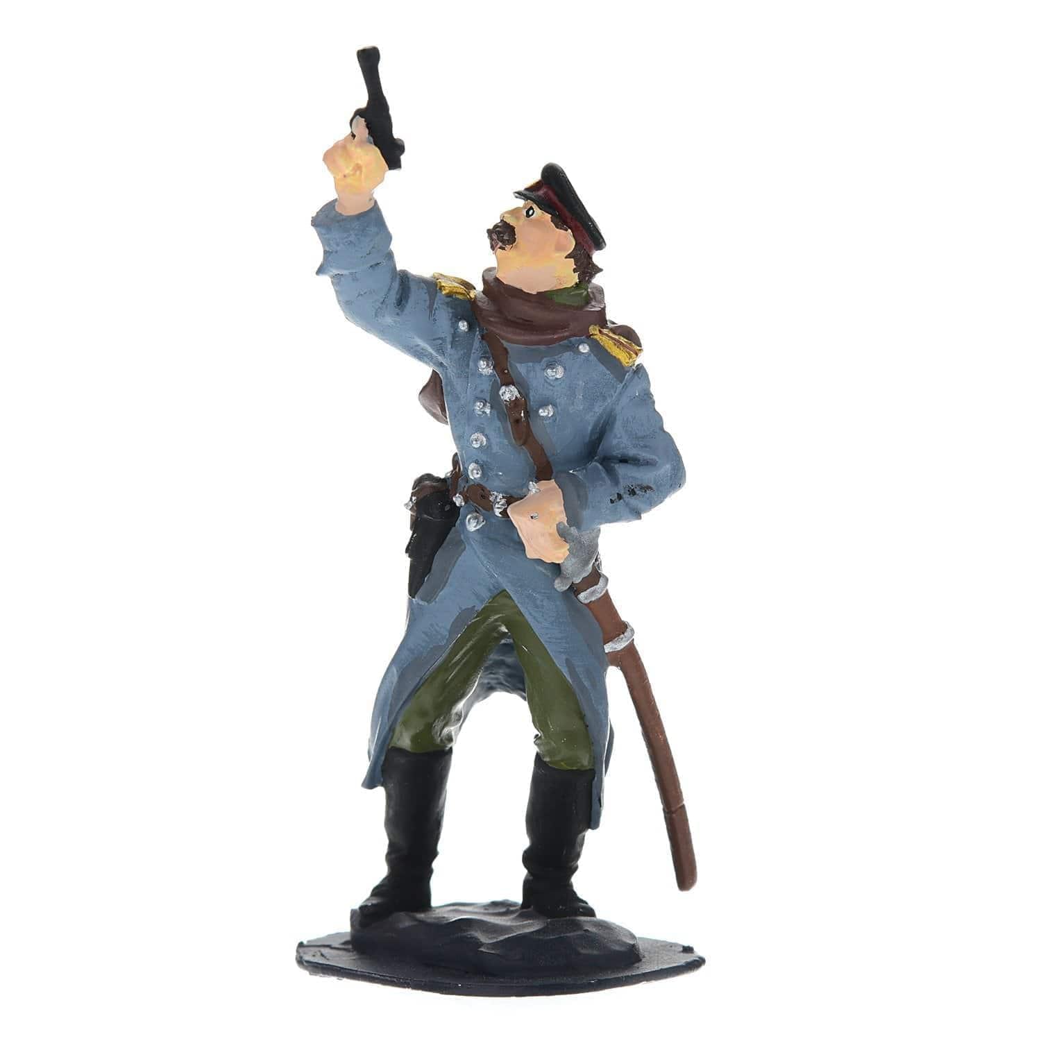 Вашему вниманию - динамичная статуэтка, в которой воплощен воинствующий образ болгарского офицера. С этой оловянной миниатюры Вы можете начать собирать собственную коллекцию оловянных солдатиков, изготовленных российскими художниками по металлу вручную. Она входит в коллекцию миниатюр с образами солдатов, героев и участников Первой и Второй Мировых войн и утолит страсть прирожденного коллекционера, собирателя оловянных миниатюр.Это авторское изделие для интерьера отлито из олова вручную в соответствии с оригинальным авторским эскизом. Оловянная статуэтка офицера в воинской экипировке, стреляющего в воздух, создает тематический акцент в интерьере, будет символом исторической памяти и оригинальным подарком для мужчины.