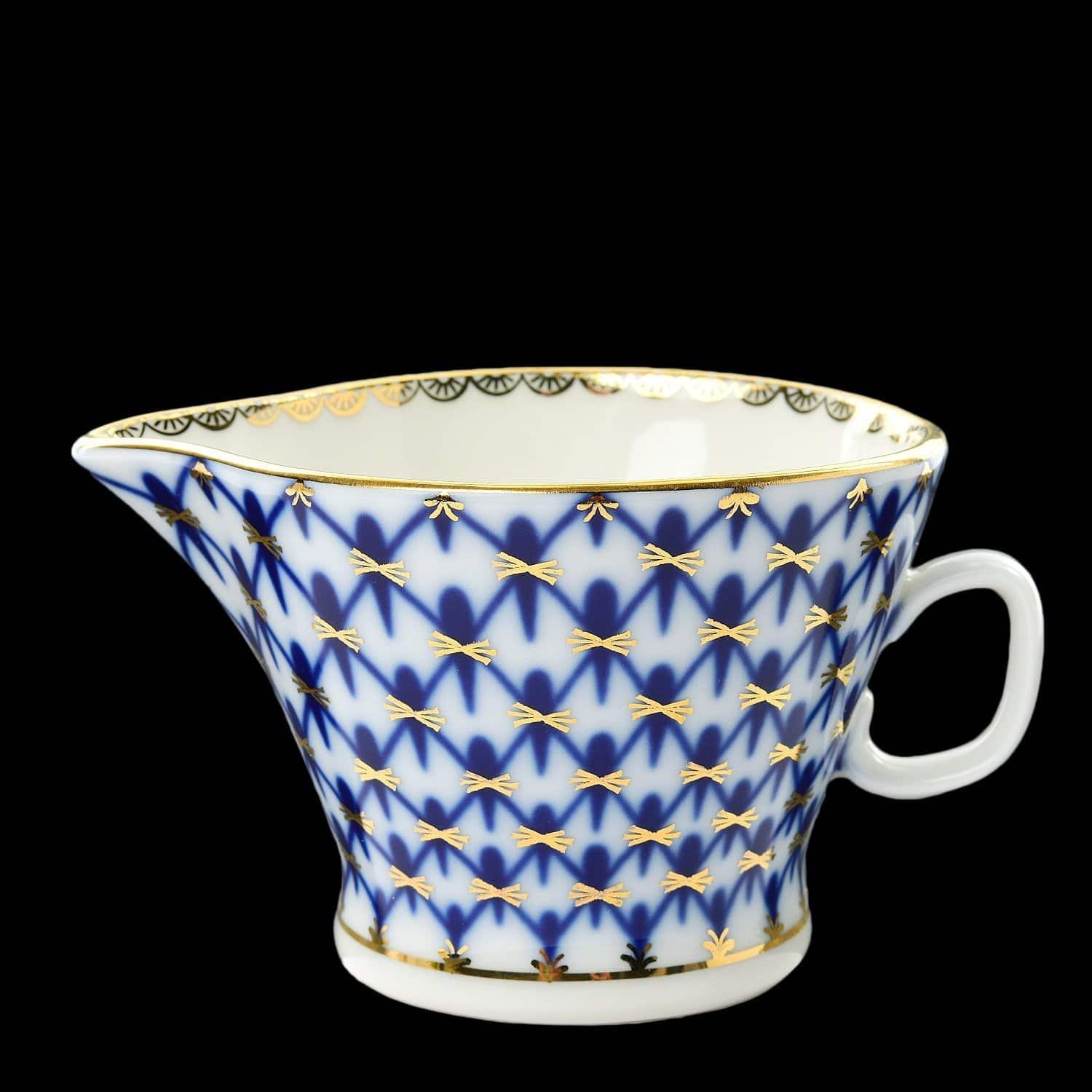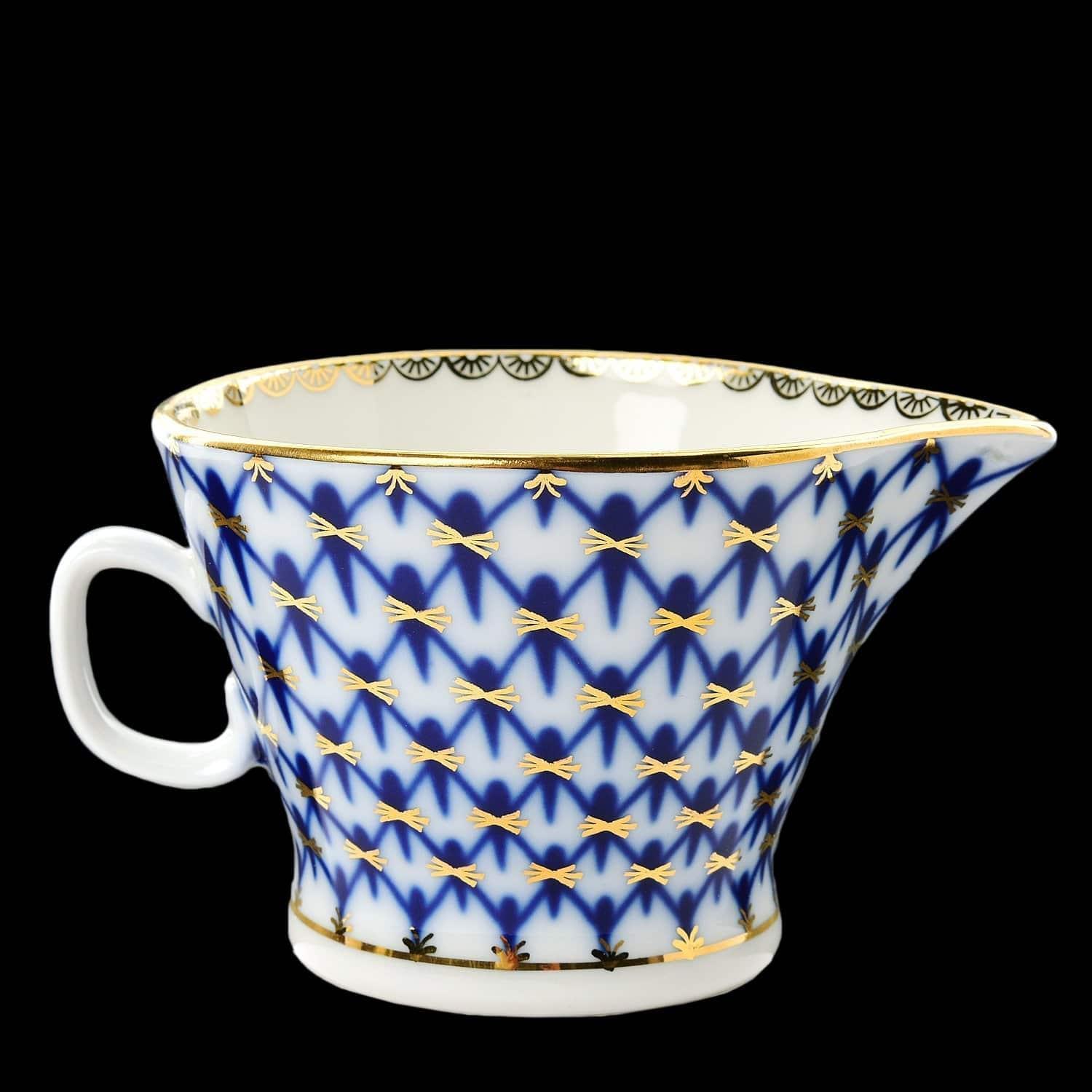 Роспись защищена несколькими прозрачными слоями стеклянной глазури. Эффектная позолота нанесена тонкой кистью в технике надглазурной росписи. Эксклюзивная работа петербургских художников по фарфору, соусник "Кобальтовая сетка" будет интересным подарком для женщины, которая любит окружать себя оригинальными вещами, на общий или личный праздник.