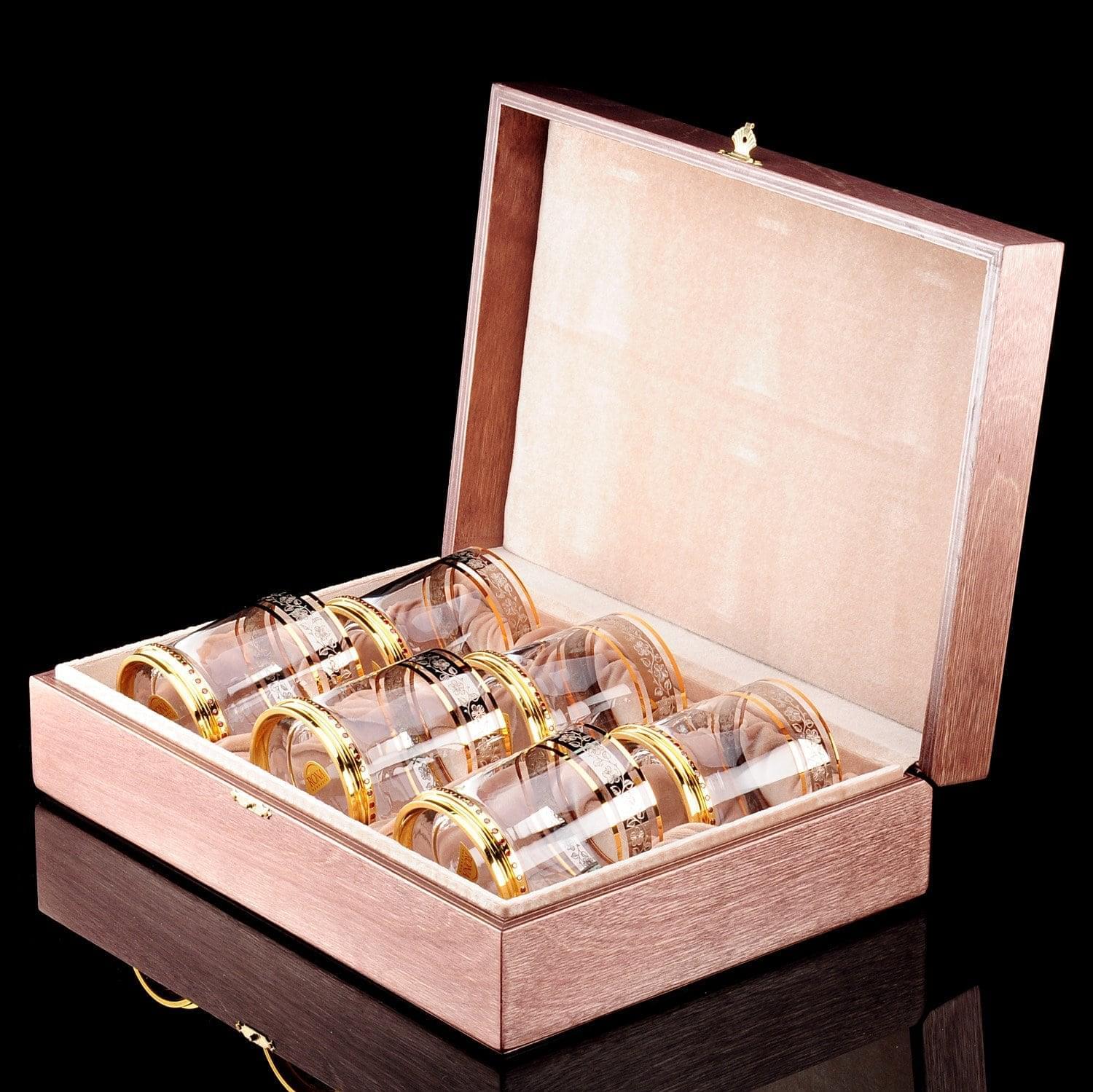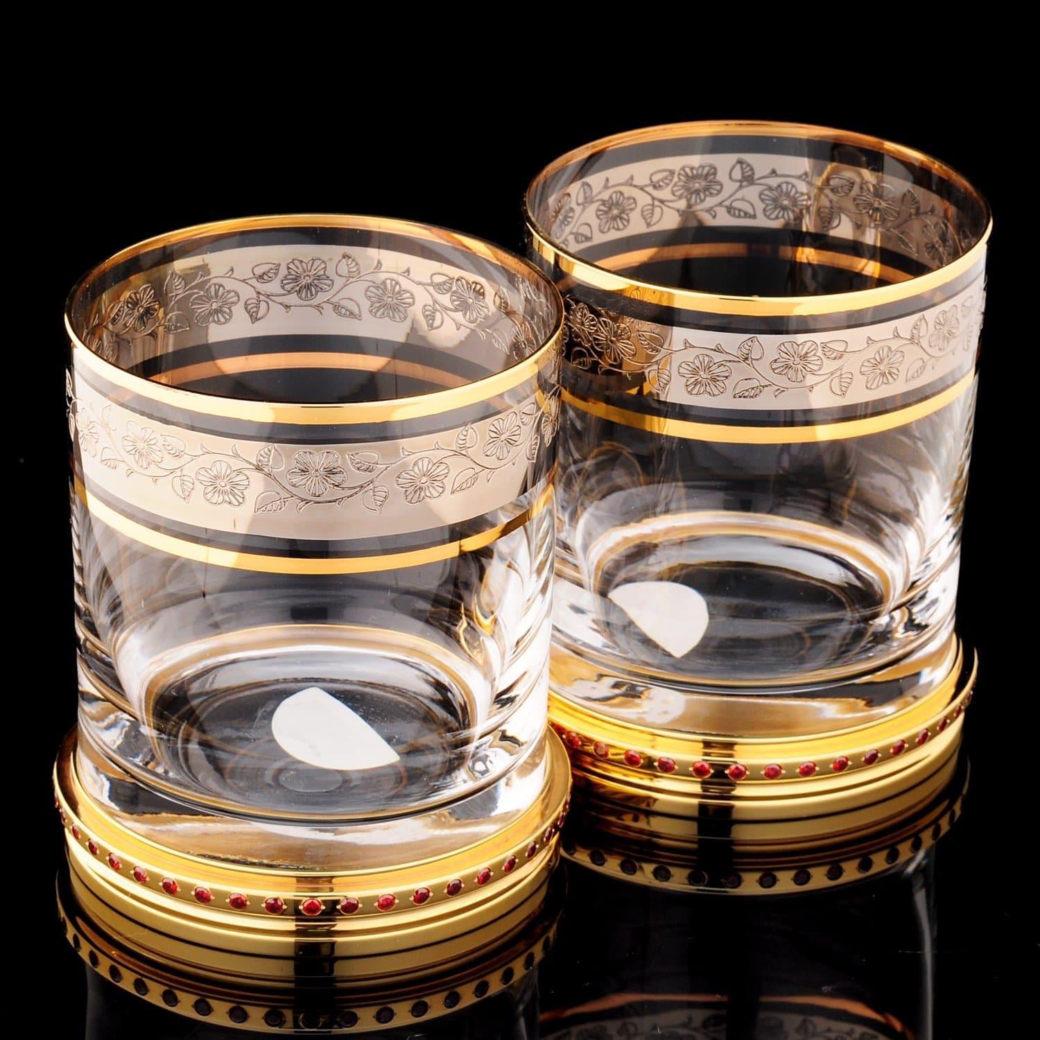Набор для виски из позолоченной латуни, инкрустированной фианитами. Златоуст