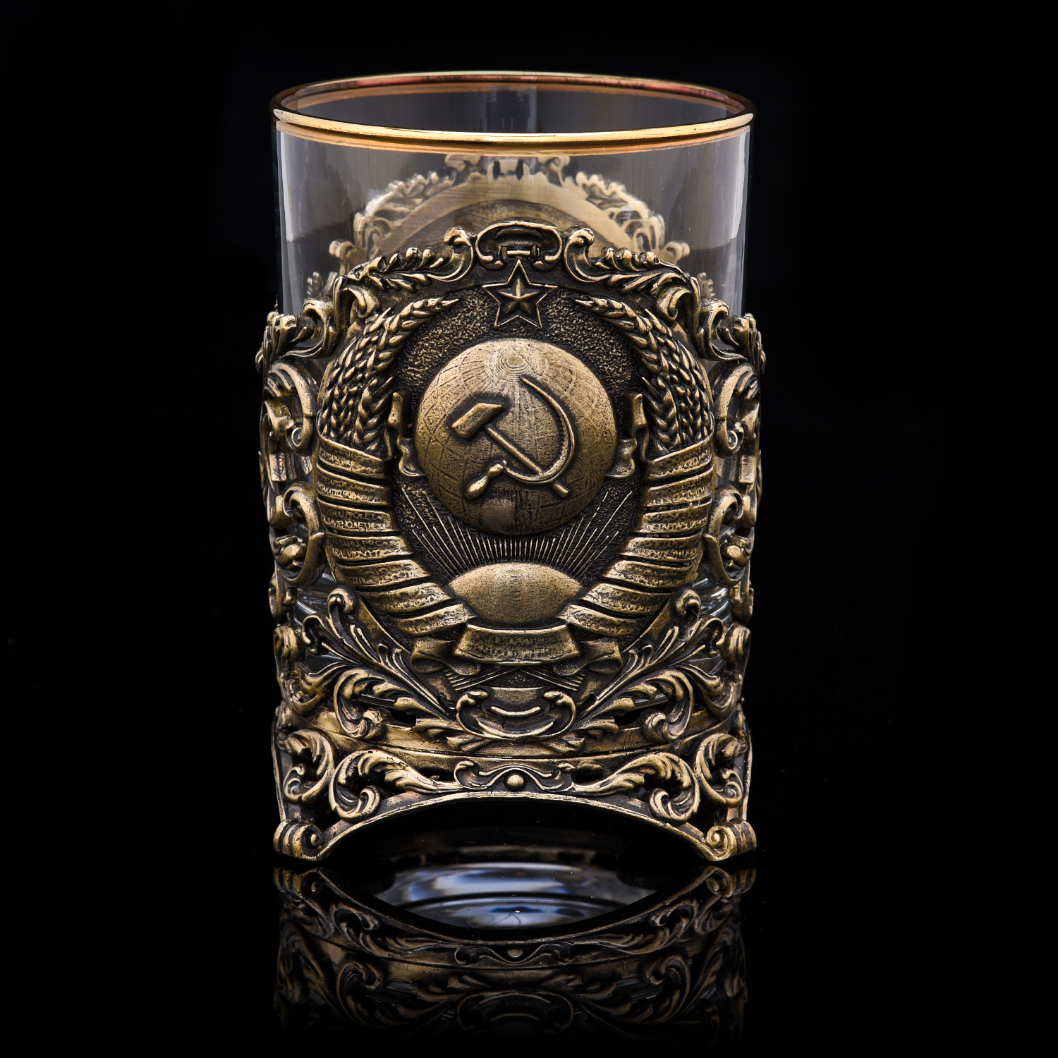 Стакан для виски "Герб СССР".Материалы: бронза, стекло.