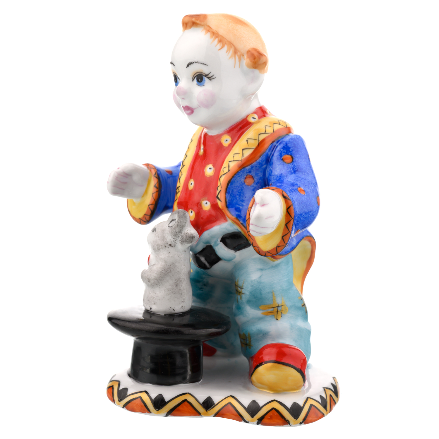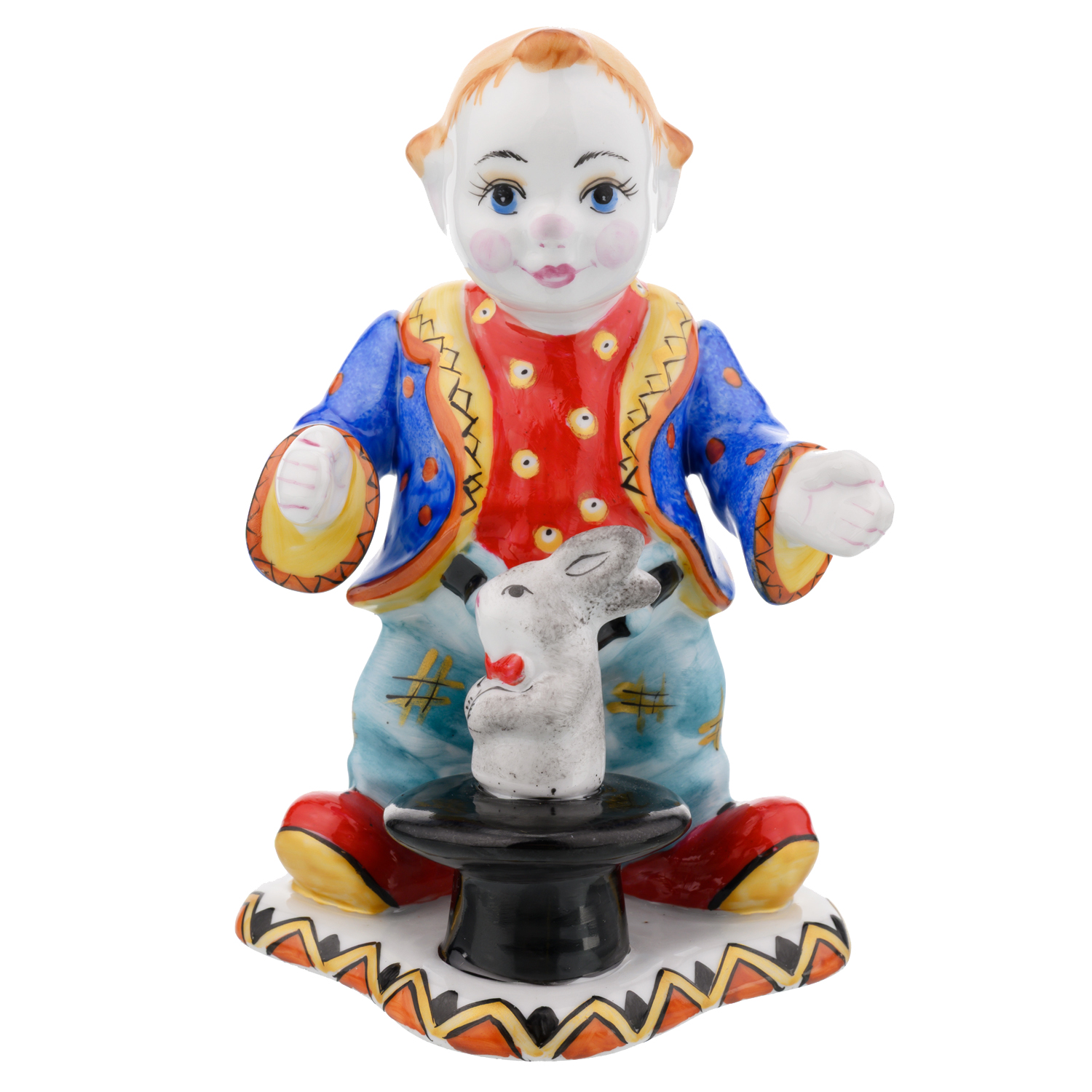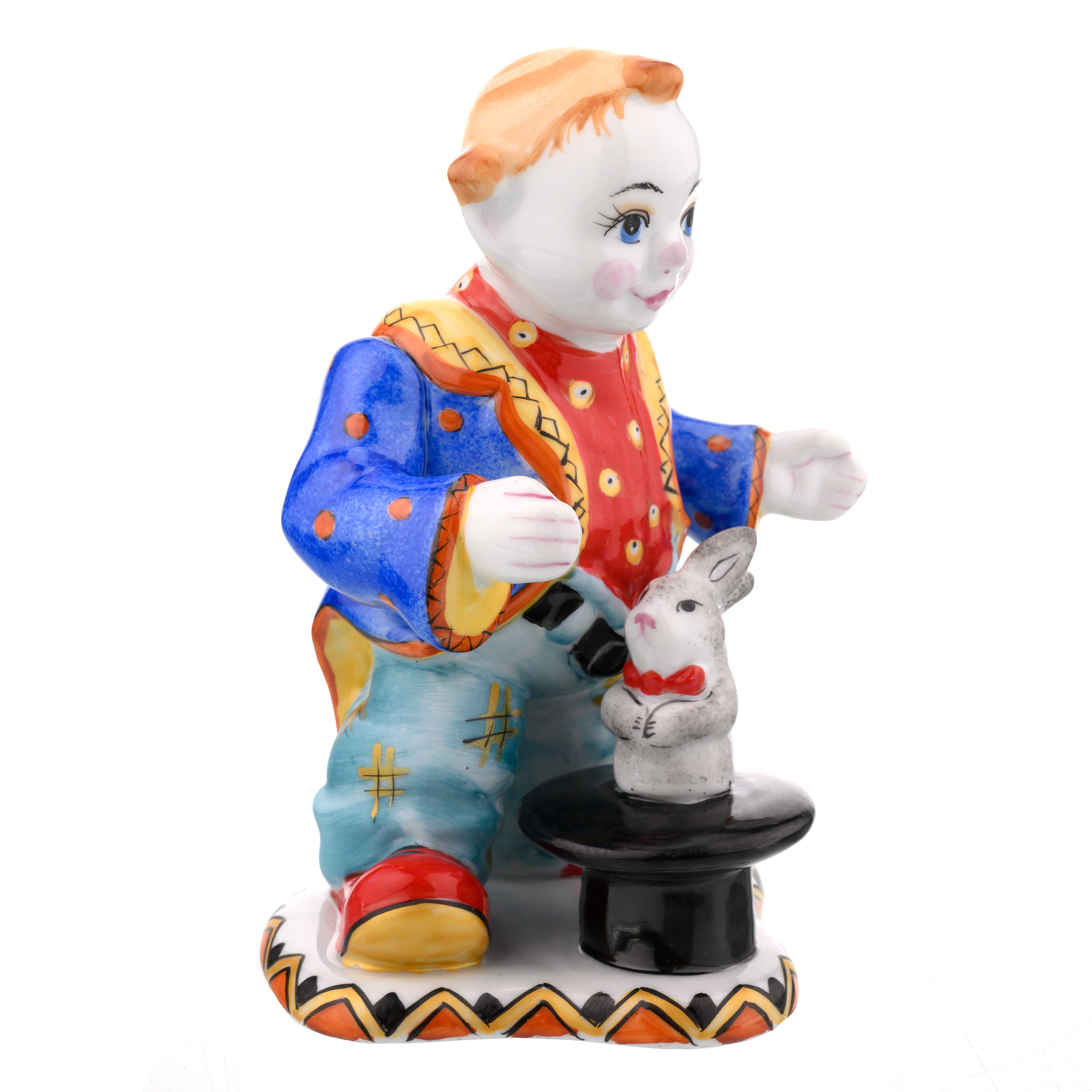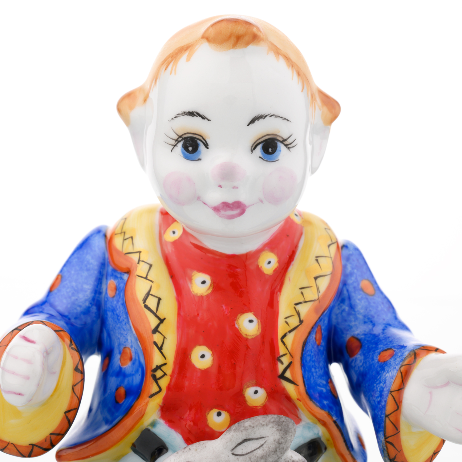 Статуэтка фарфоровая "Клоун с кроликом". Гжель в цвете