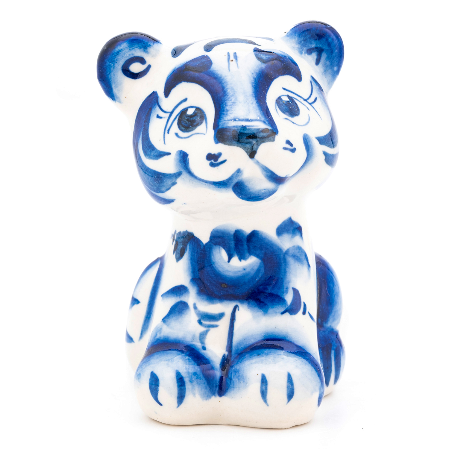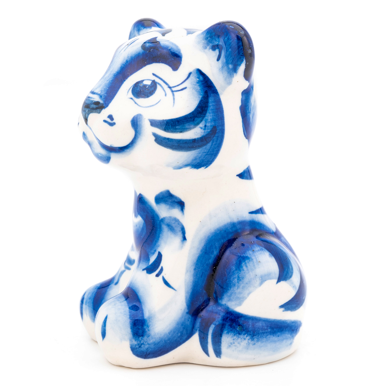 Русские подарки и сувениры → Интерьерные изделия → Статуэтки → Скульптура "Тигренок Тишка" в кобальте. Гжель