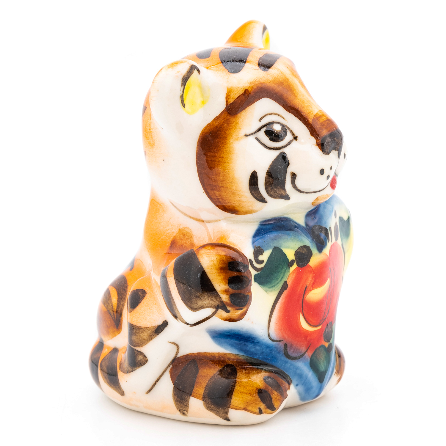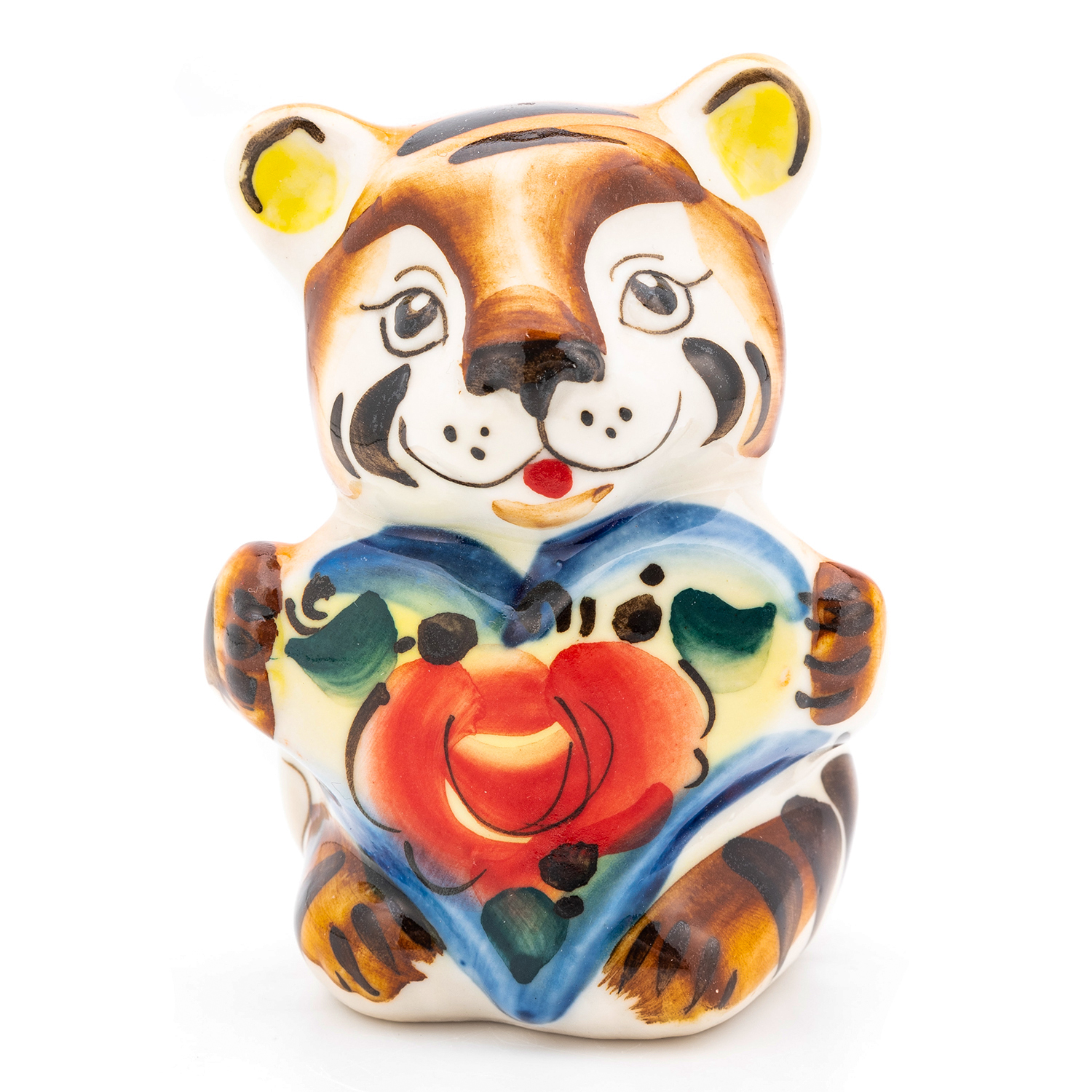 Скульптура "Тигренок с сердечком" в цвете. Гжель