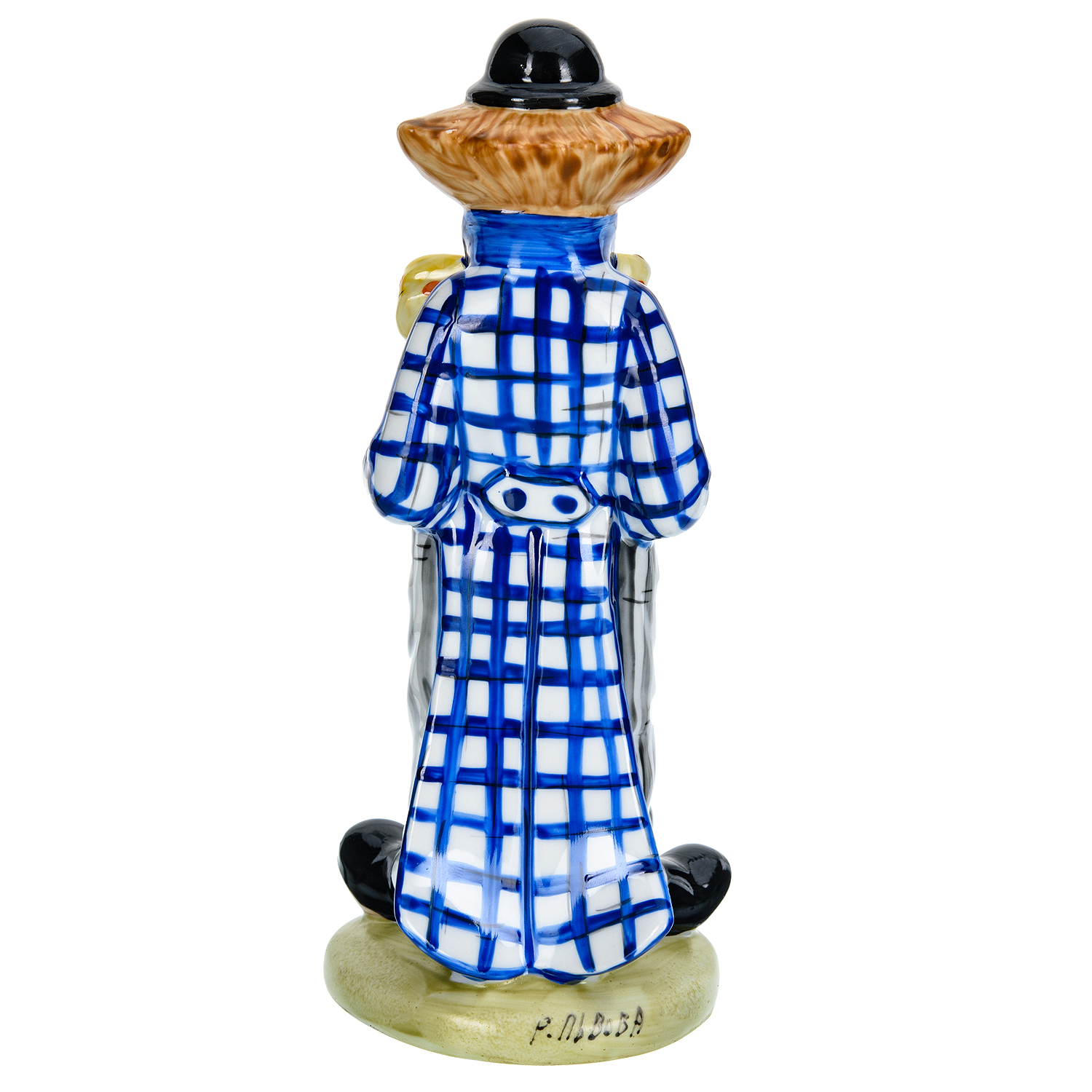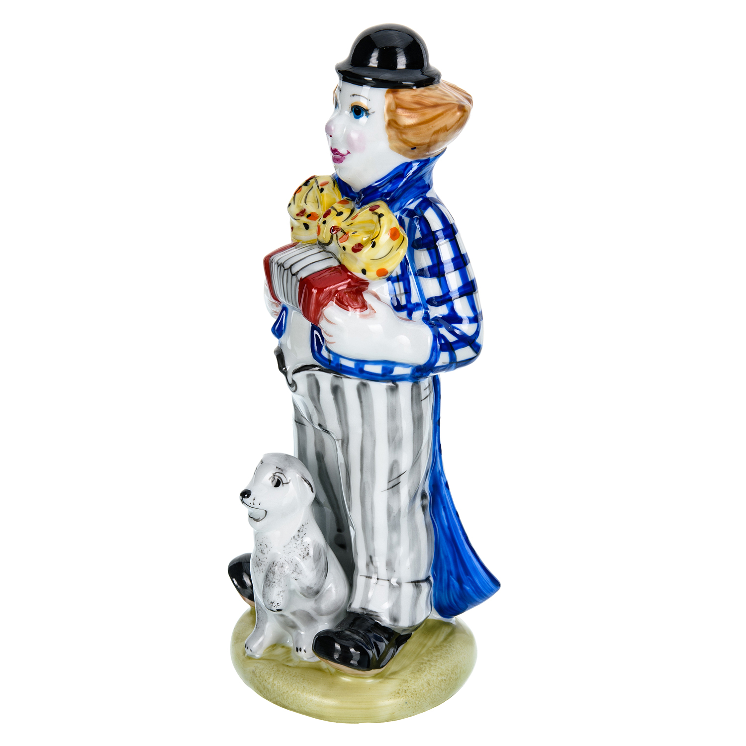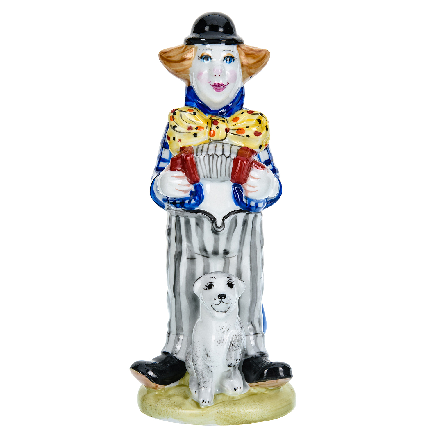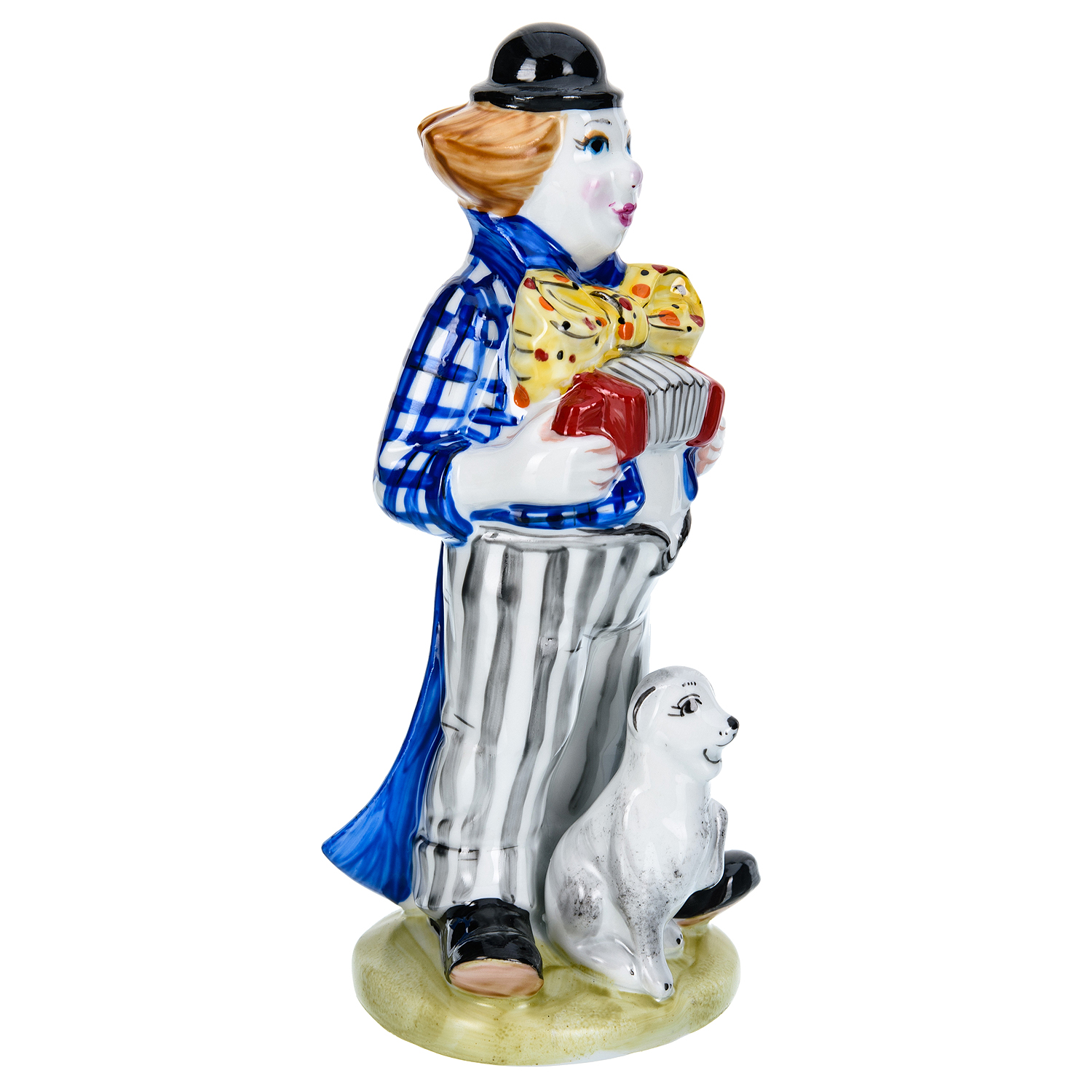 Статуэтка "Клоун с гармошкой и собачкой". Гжель в цвете