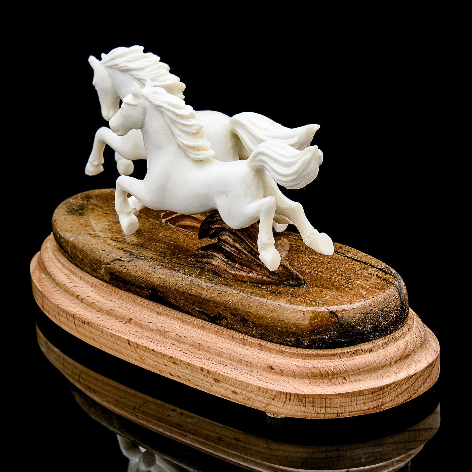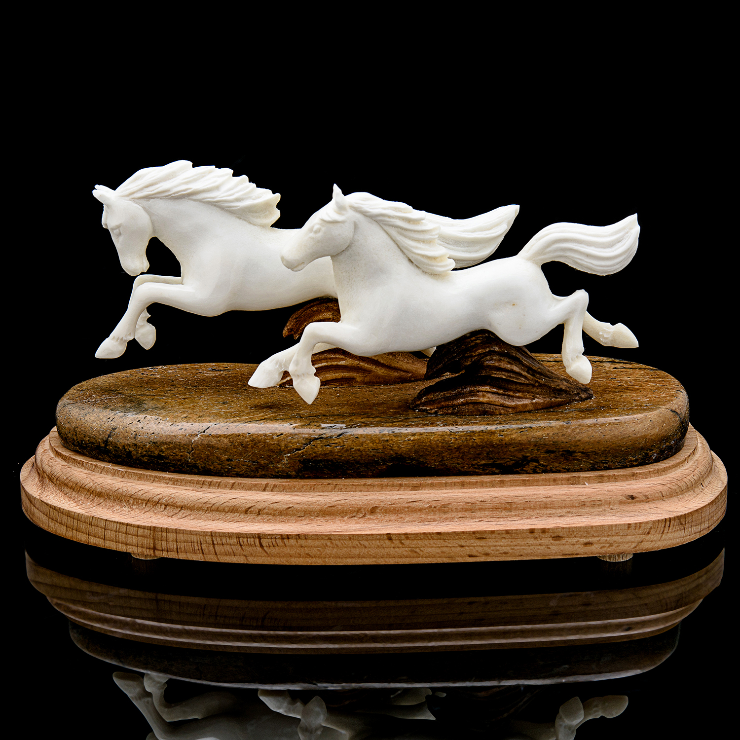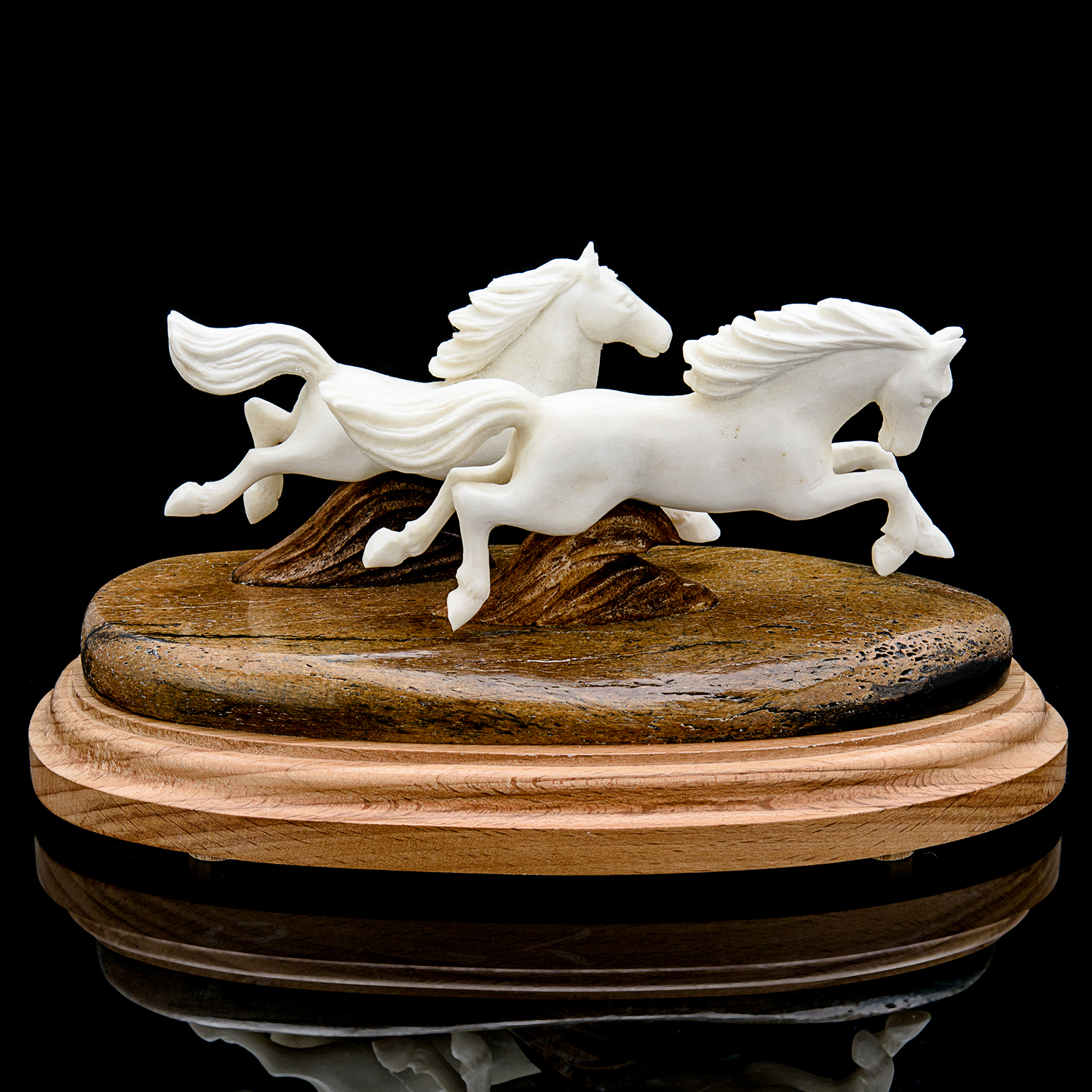 Скульптура из рога лося "Лошади. Навстречу ветру"