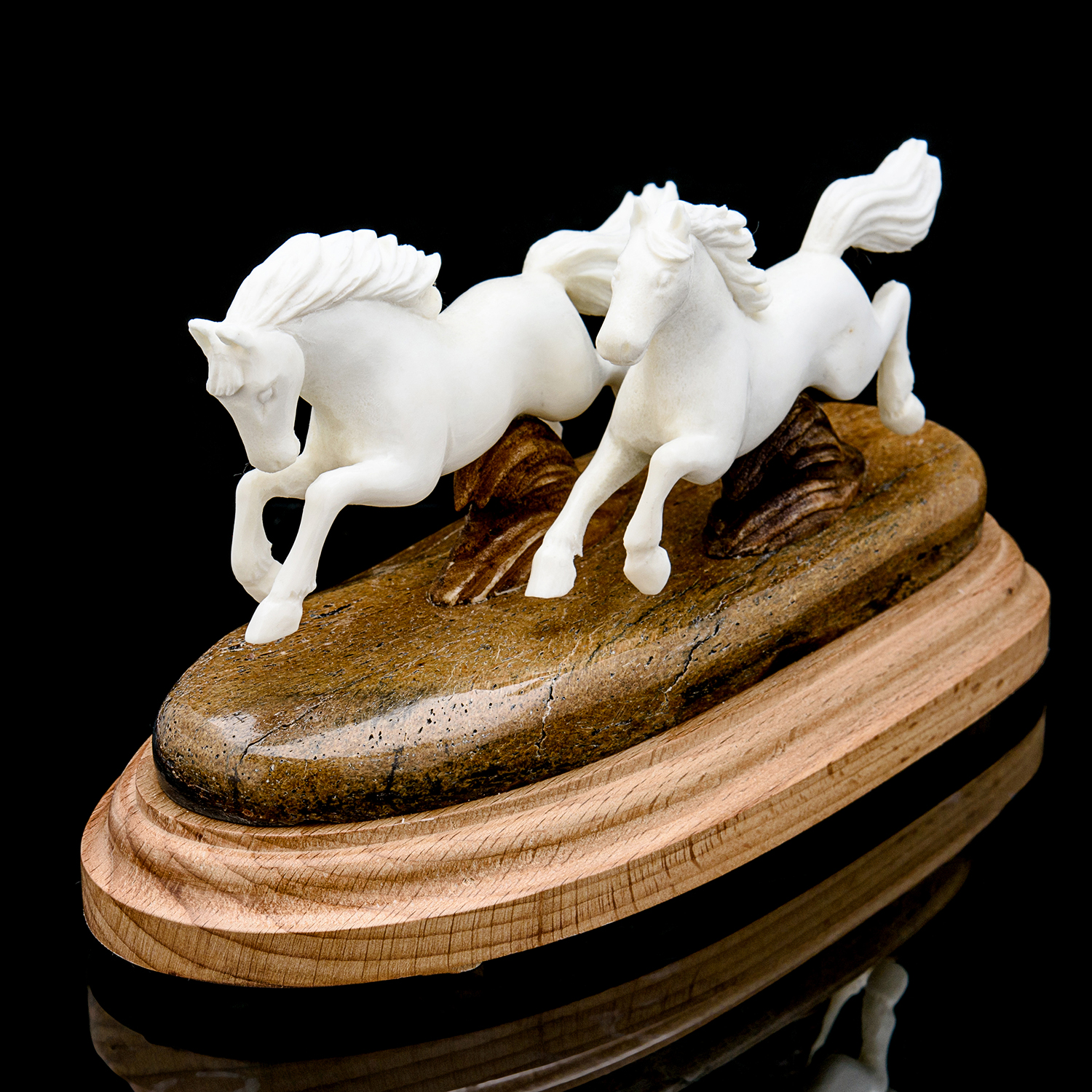 Русские подарки и сувениры → Интерьерные изделия → Статуэтки → Скульптура из рога лося "Лошади. Навстречу ветру"