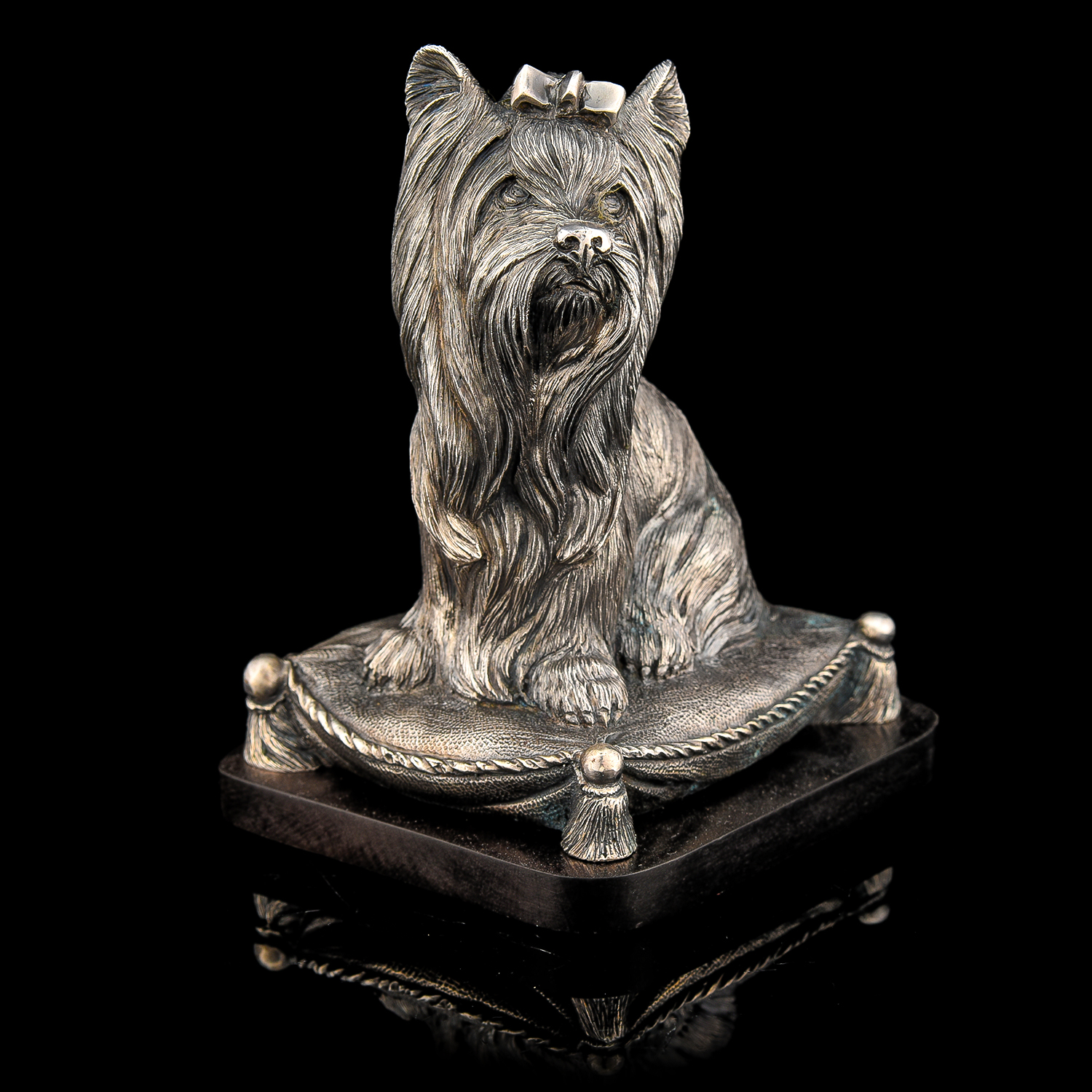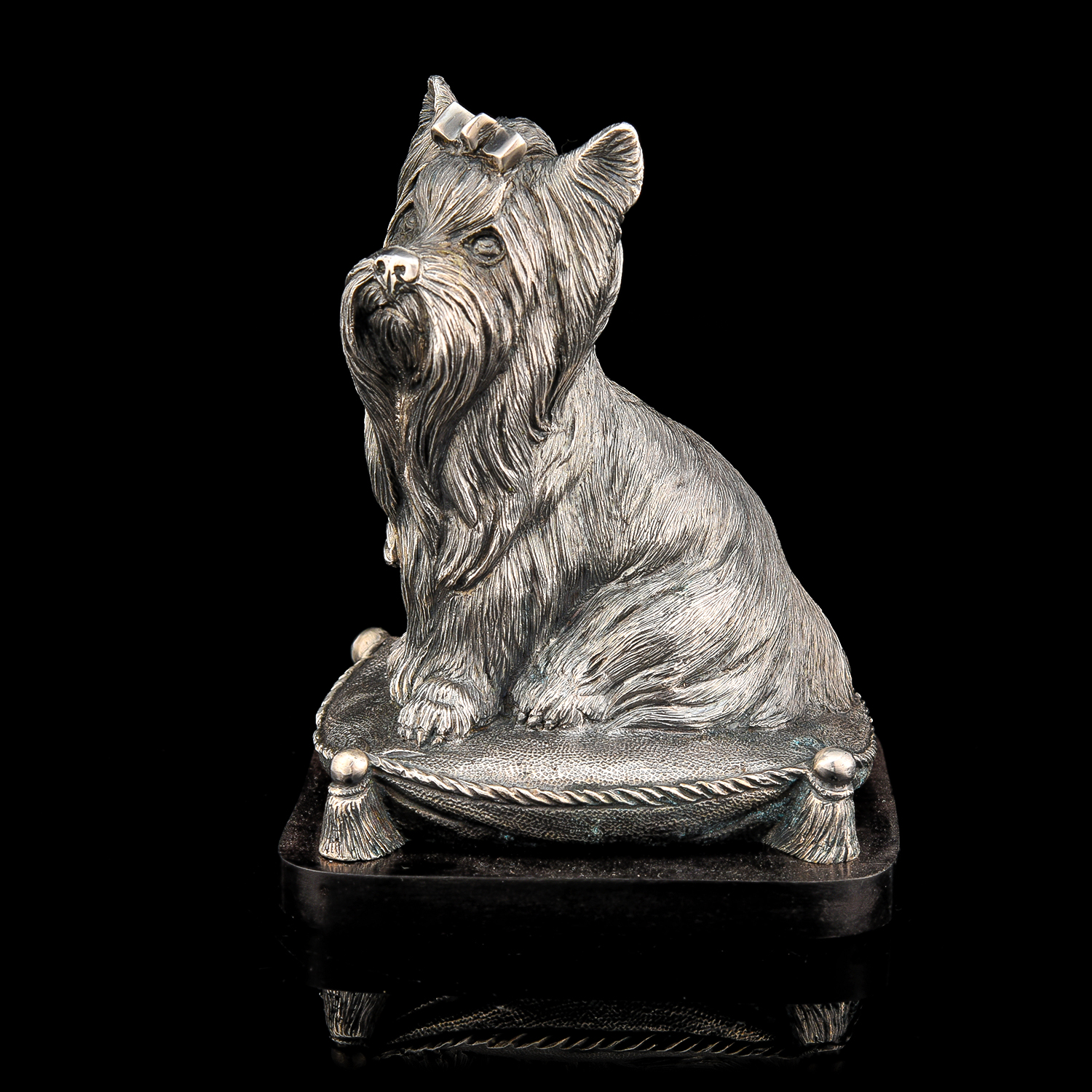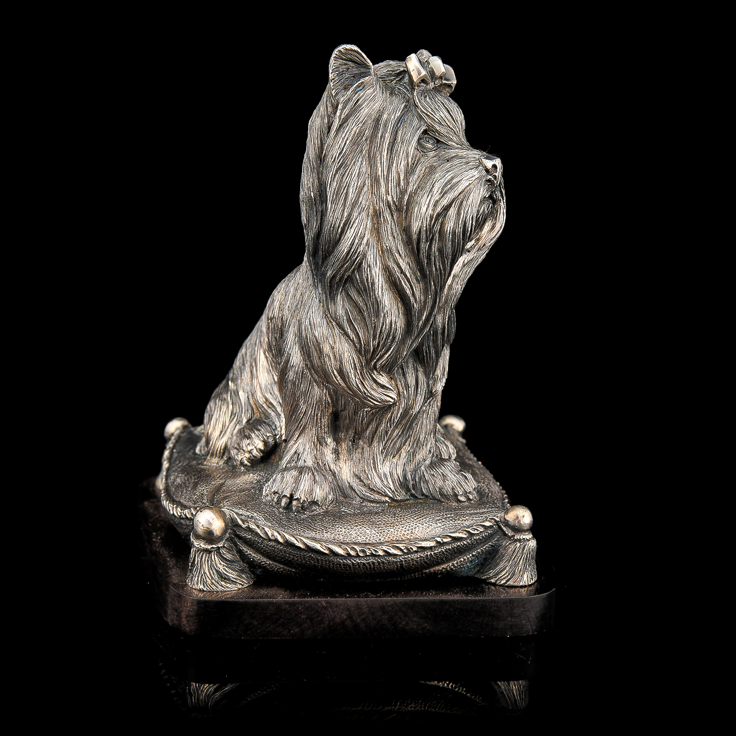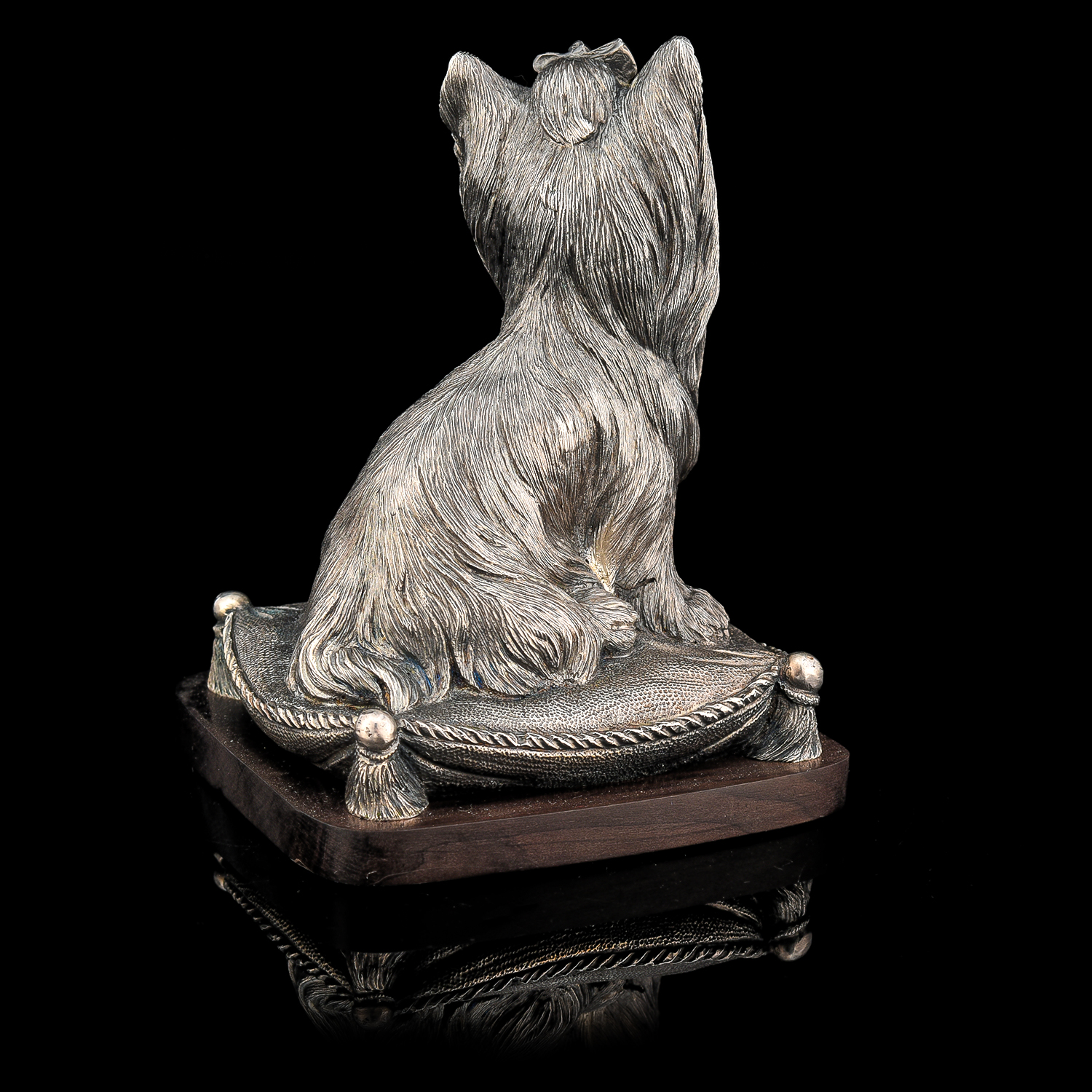 Бронзовая статуэтка "Собака Терьер".Материалы: бронза, серебрение, дерево.