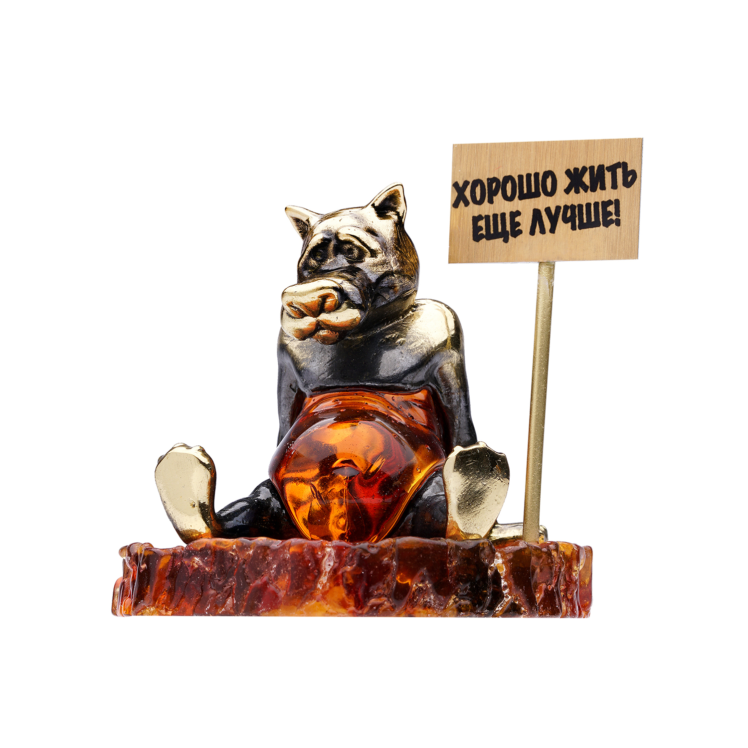 Бронзовая статуэтка на янтарной подставке "Волк. Хорошо жить - еще лучше!".Материалы: бронза, янтарь. .